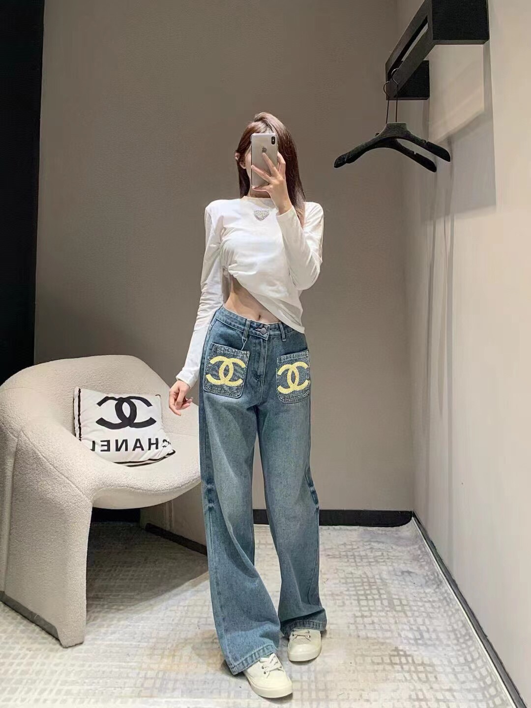 这款衣服是AAAAA 1:1 质量 (非常棒). 使用了和原版一模一样的材料. 商标部分也保持了和香奈儿/Chanel一样. 图片拍摄是实物衣服拍摄, 您所收到的实物保证和我们图片一模一样.
