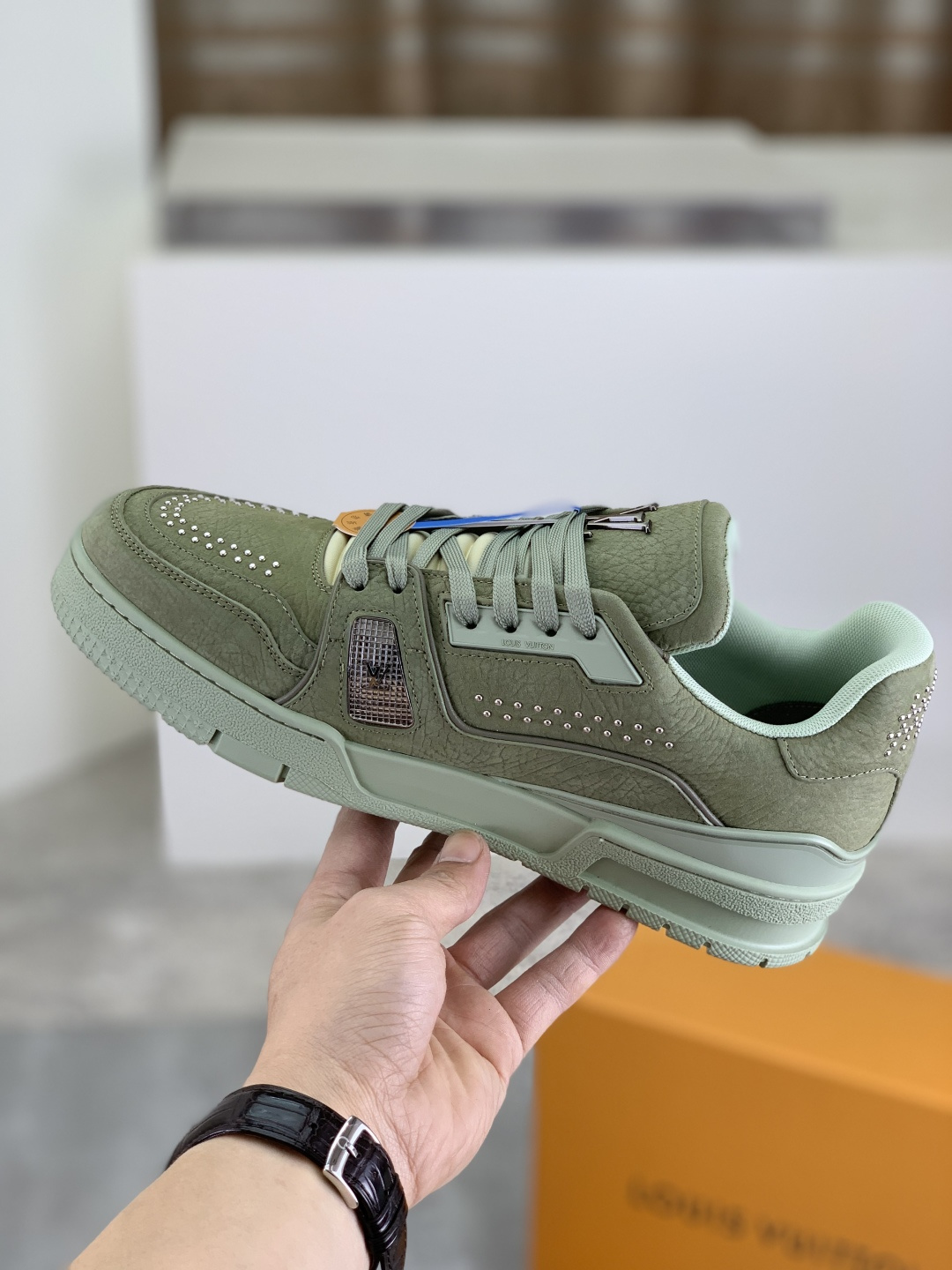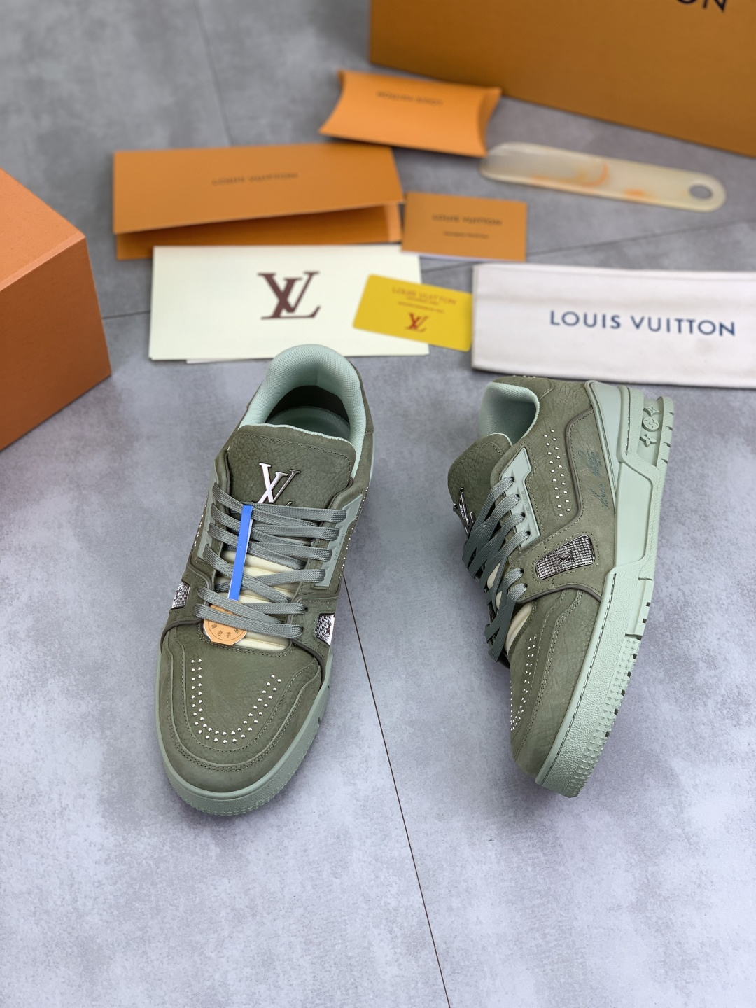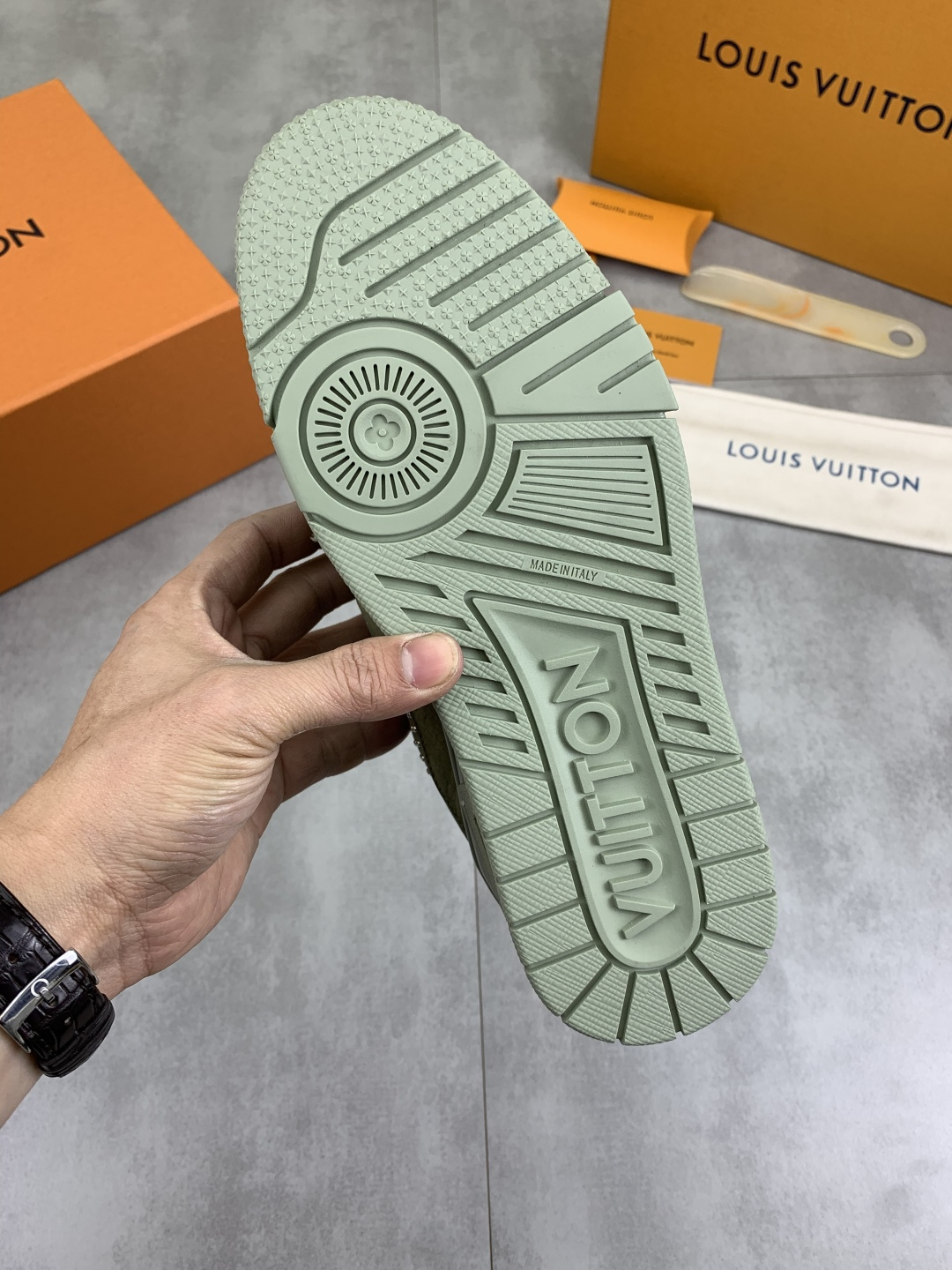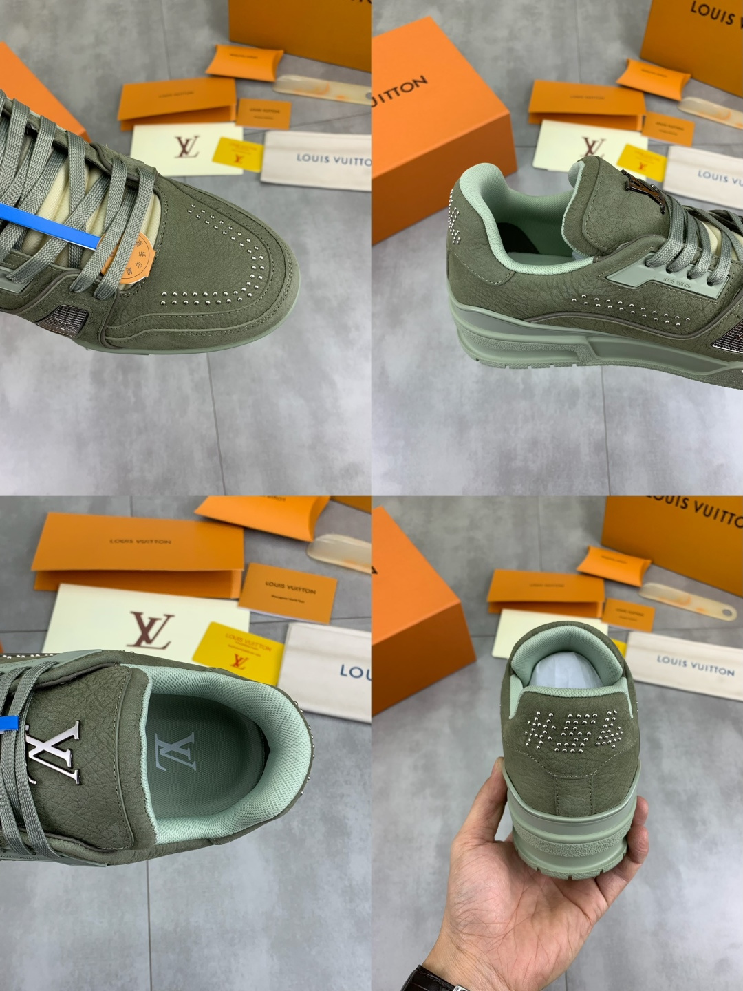 这款鞋子是AAAAA 1:1 质量 (非常棒). 使用了和原版一模一样的材料. 商标部分也保持了和路易威登/Louis Vuitton一样. 图片拍摄是实物鞋子拍摄, 您所收到的实物保证和我们图片一模一样.