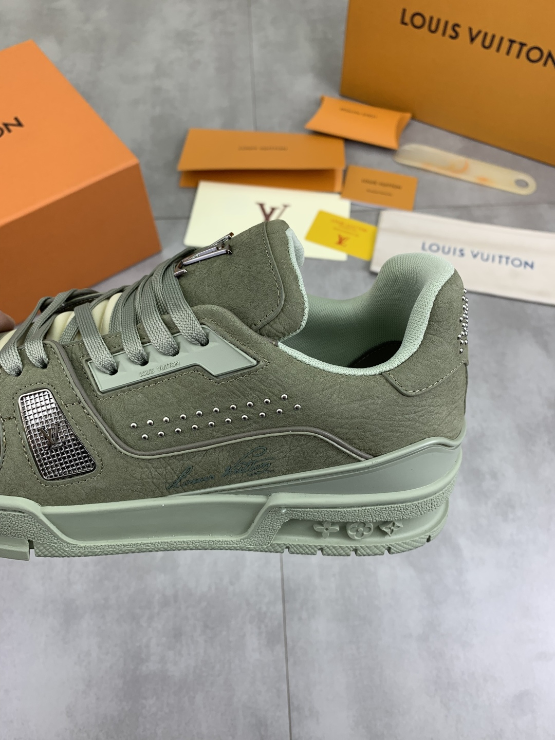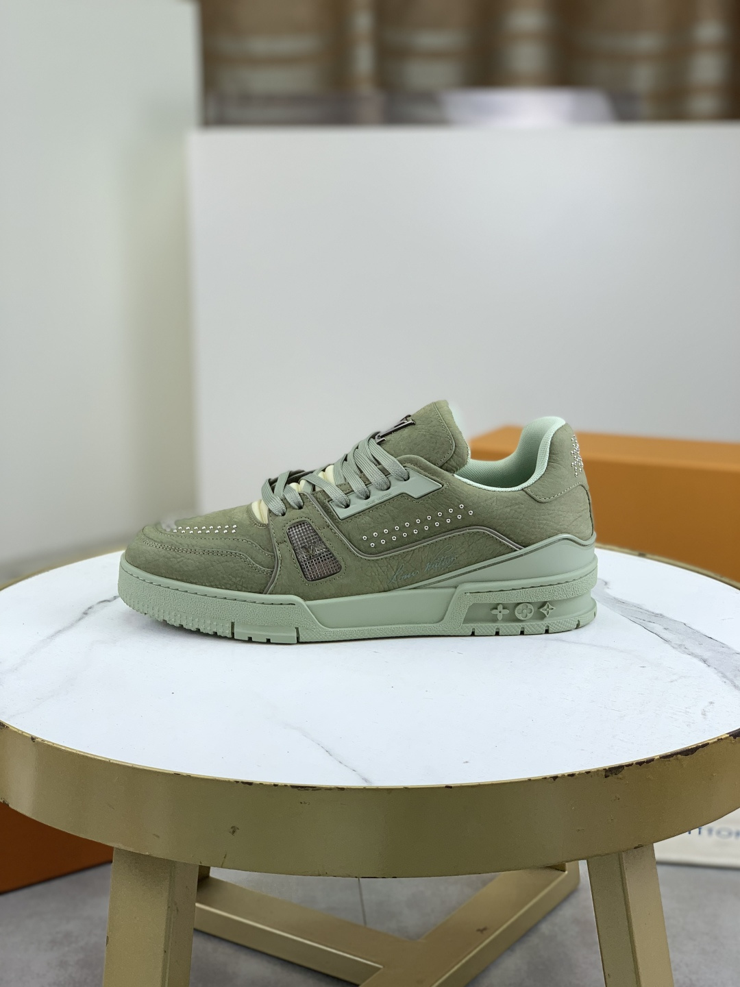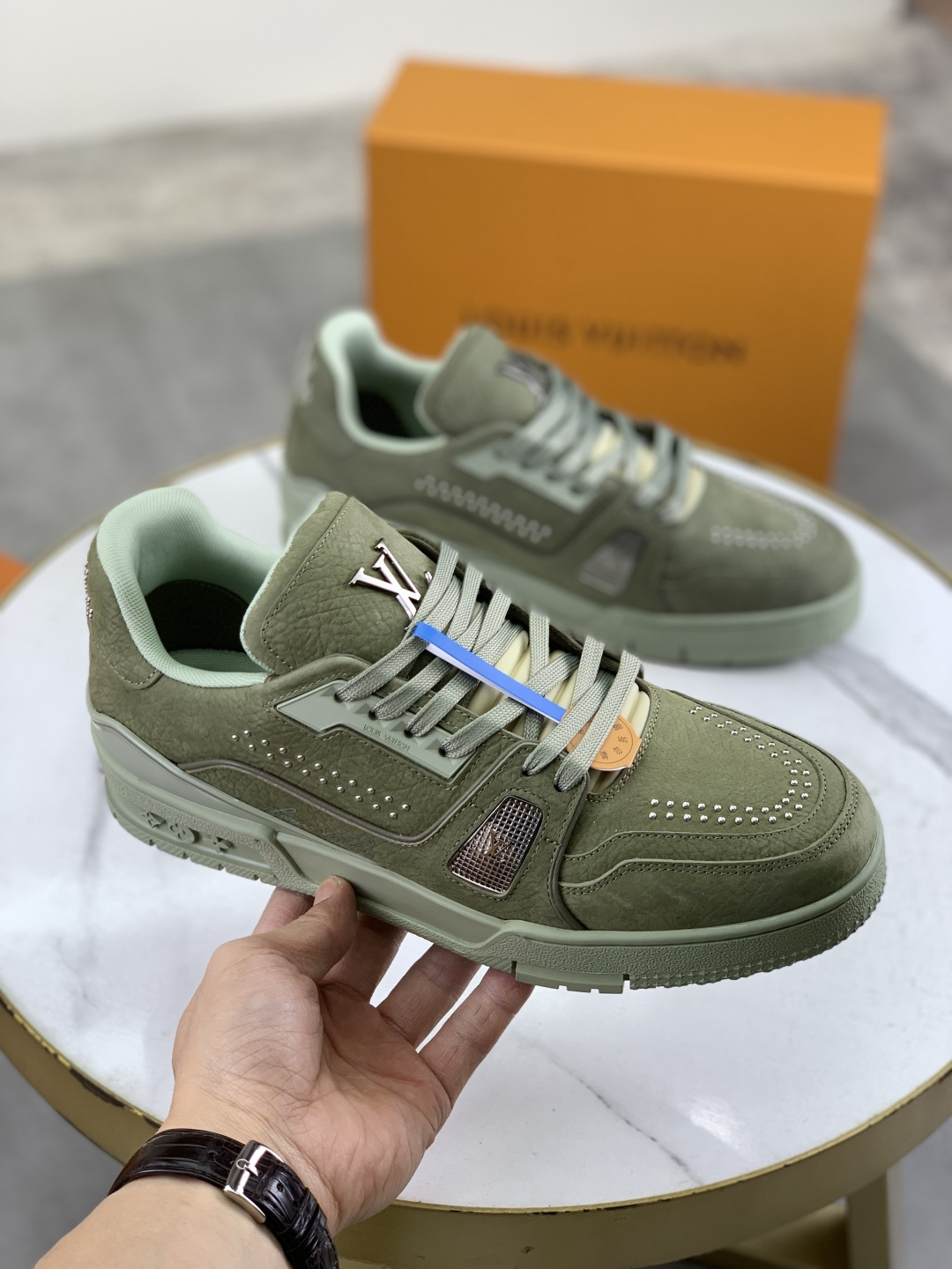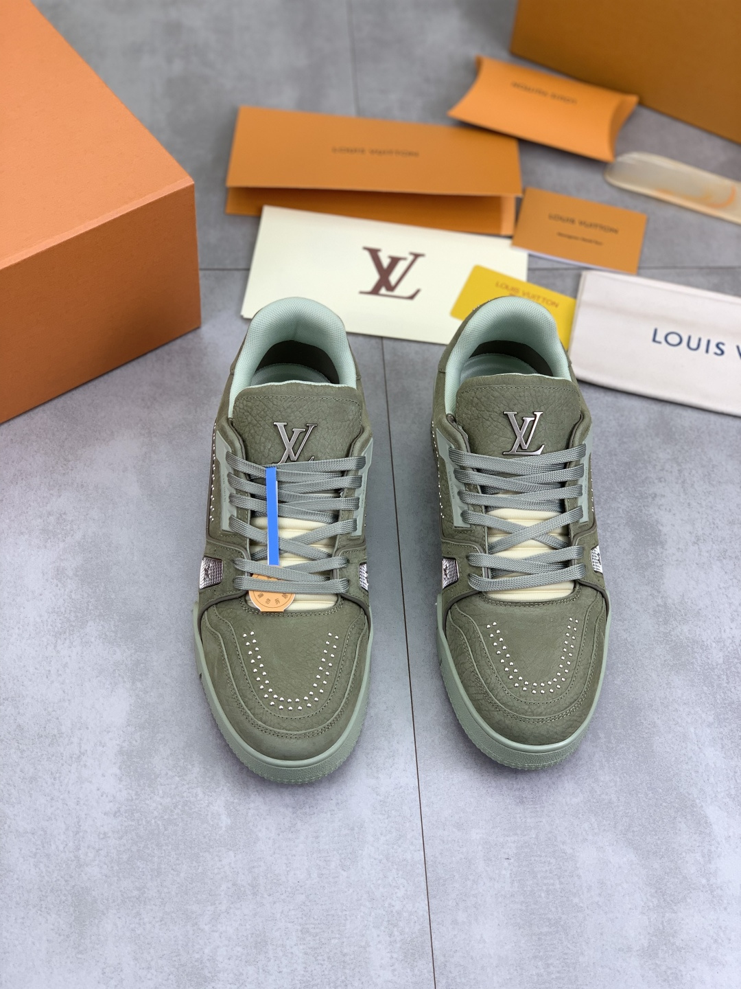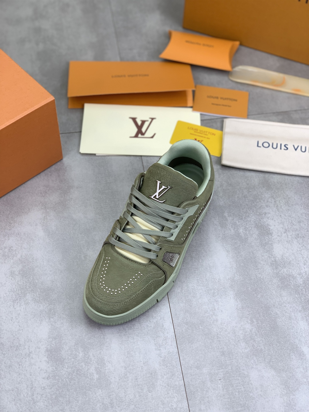 这款鞋子是AAAAA 1:1 质量 (非常棒). 使用了和原版一模一样的材料. 商标部分也保持了和路易威登/Louis Vuitton一样. 图片拍摄是实物鞋子拍摄, 您所收到的实物保证和我们图片一模一样.