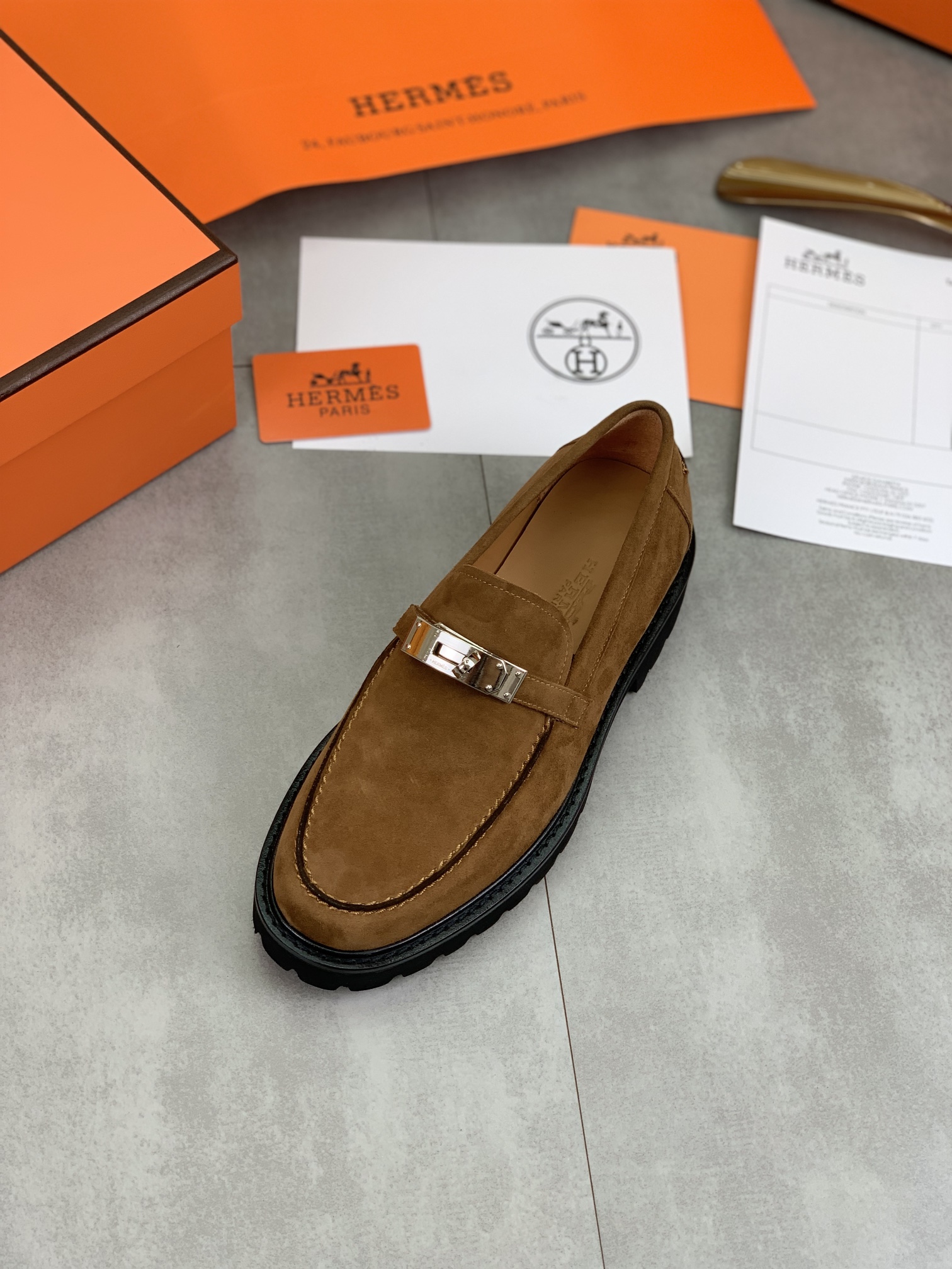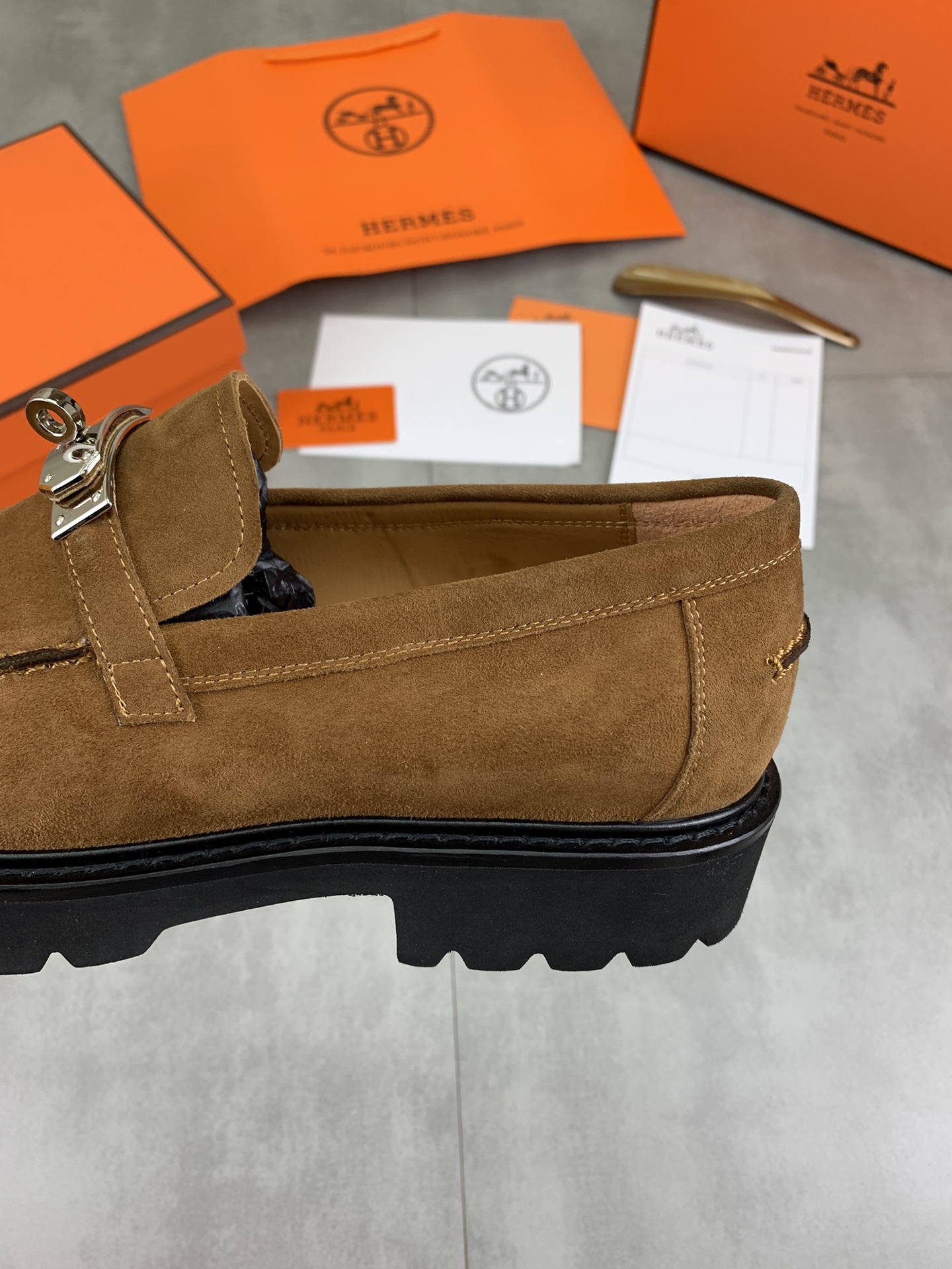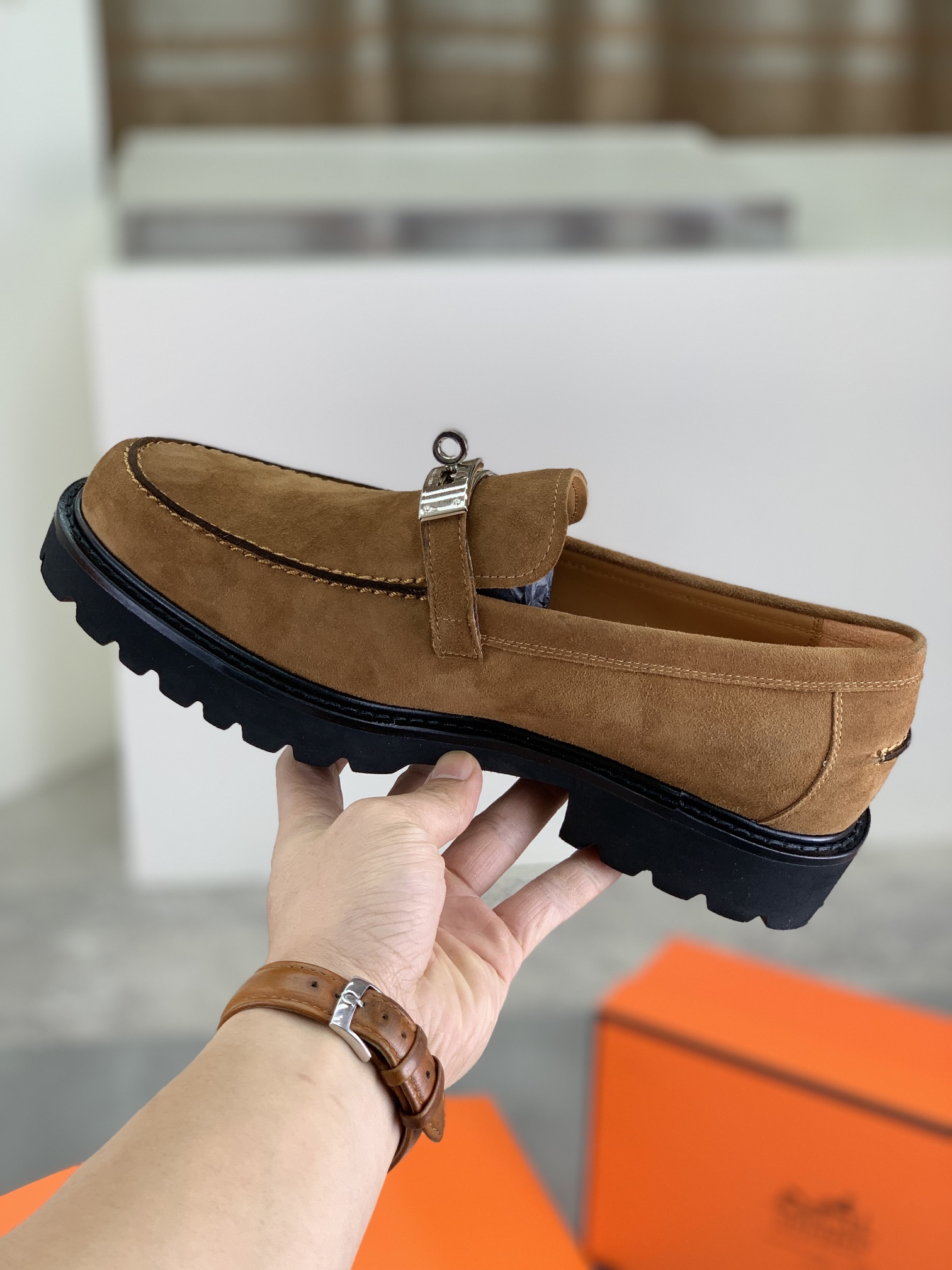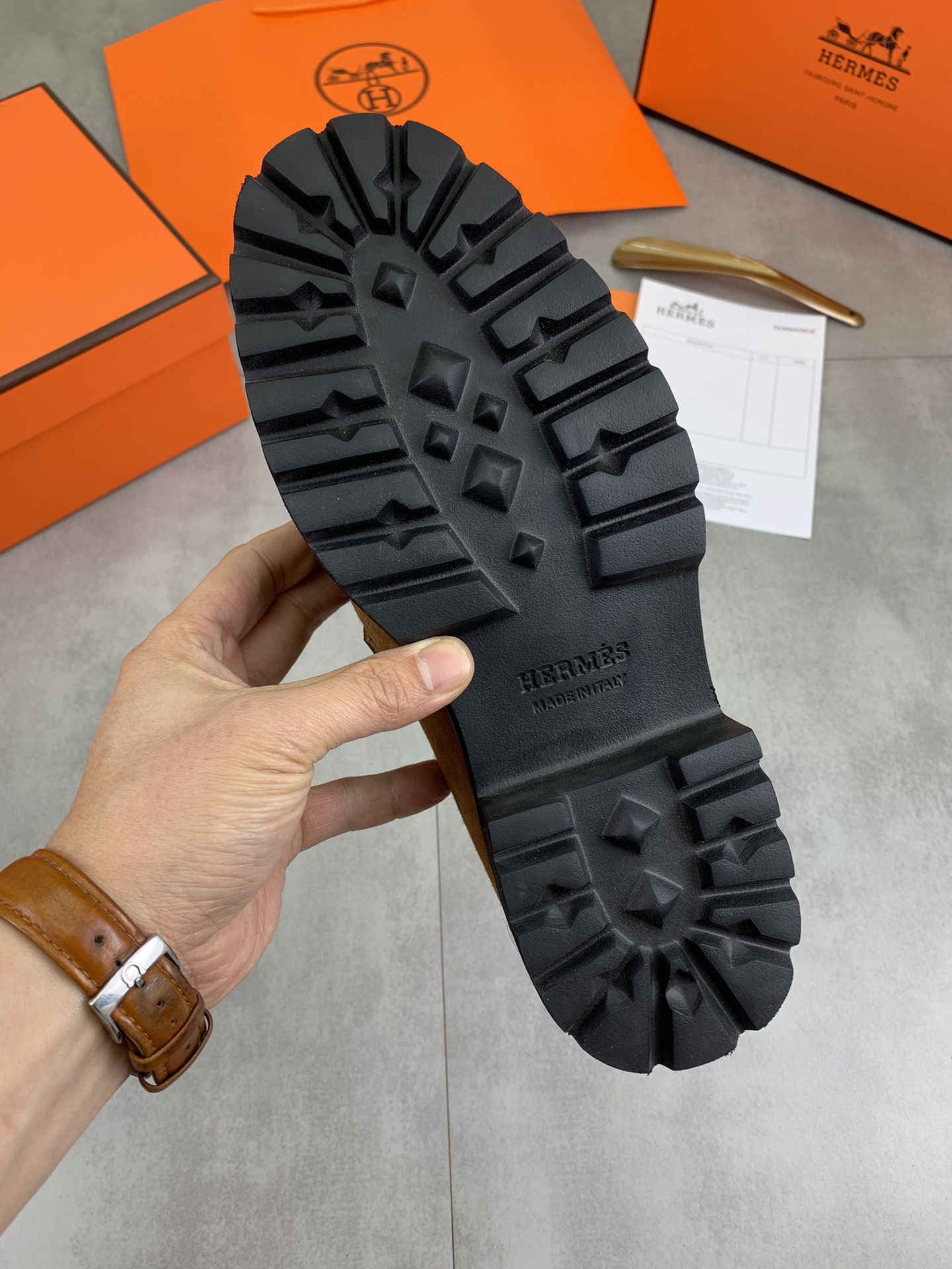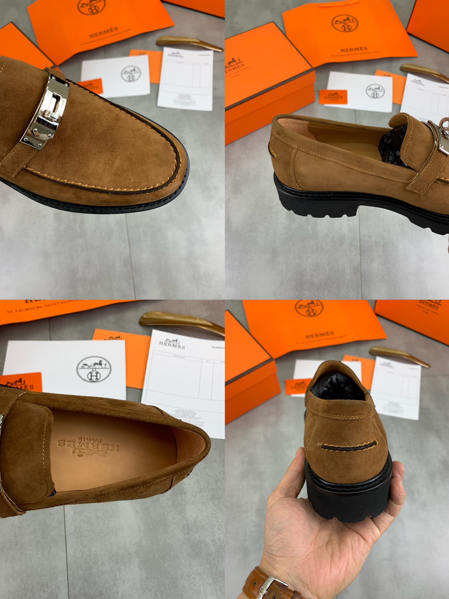 这款鞋子是AAAAA 1:1 质量 (非常棒). 使用了和原版一模一样的材料. 商标部分也保持了和爱马仕/Hermes一样. 图片拍摄是实物鞋子拍摄, 您所收到的实物保证和我们图片一模一样.