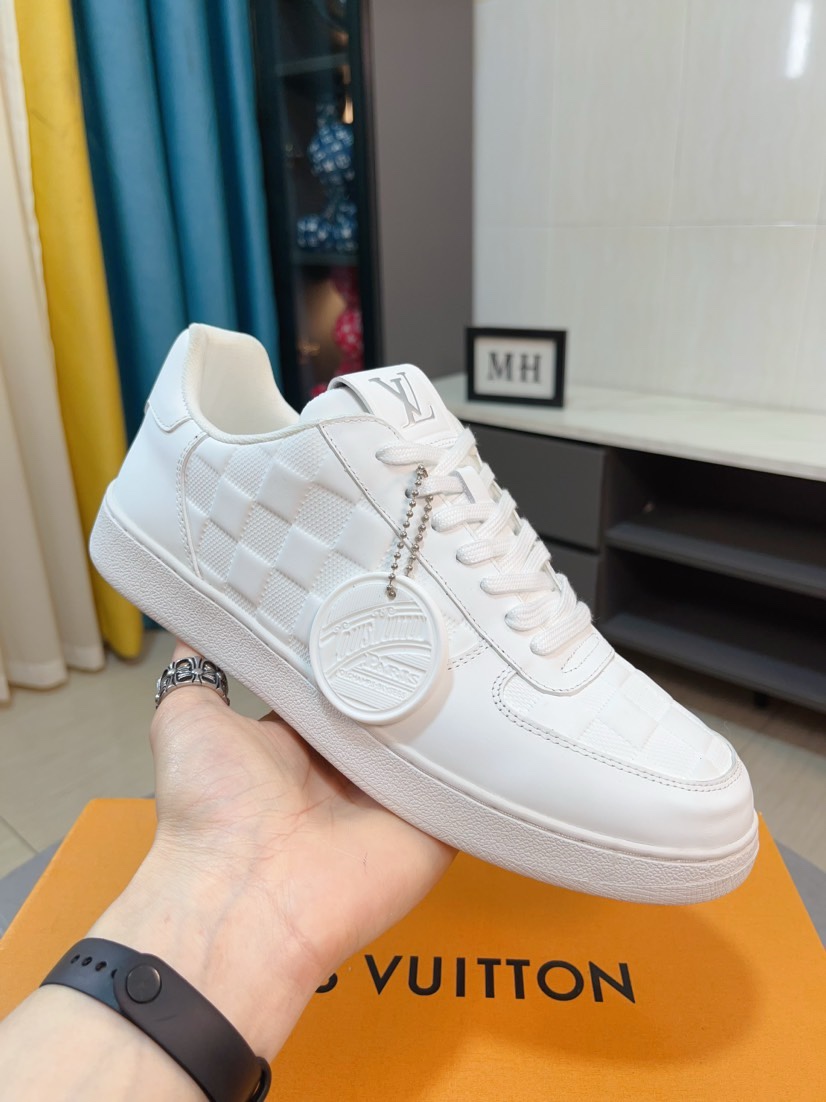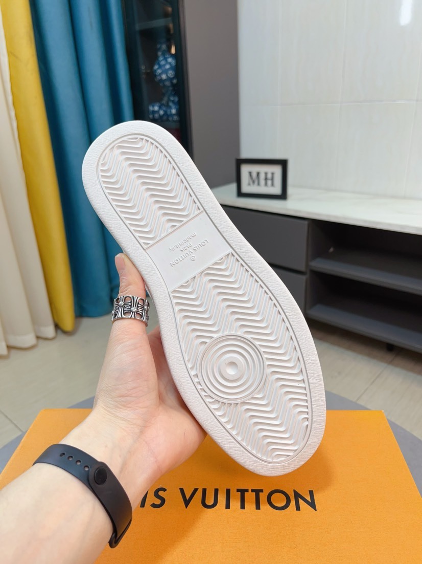 这款鞋子是AAAAA 1:1 质量 (非常棒). 使用了和原版一模一样的材料. 商标部分也保持了和路易威登/Louis Vuitton一样. 图片拍摄是实物鞋子拍摄, 您所收到的实物保证和我们图片一模一样.