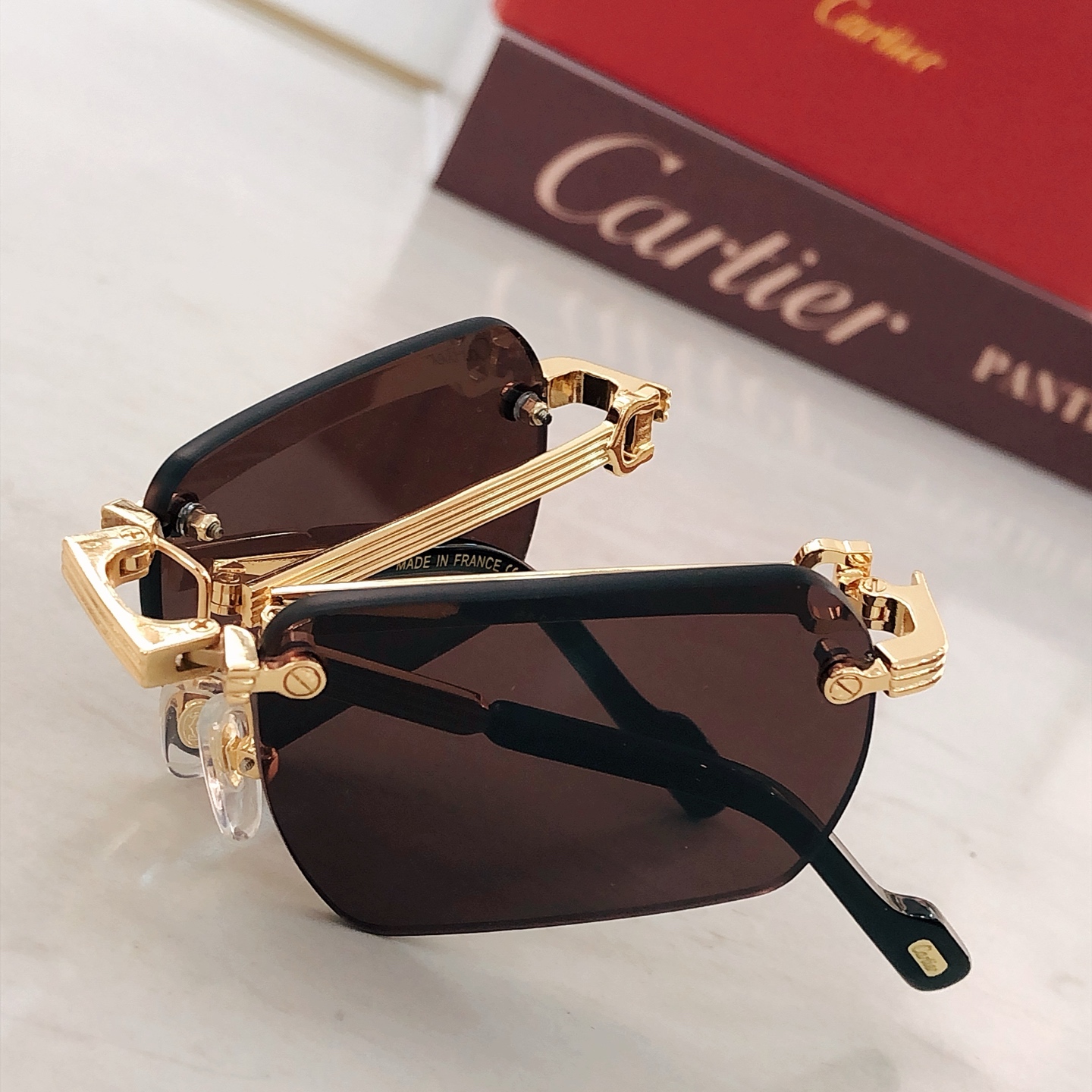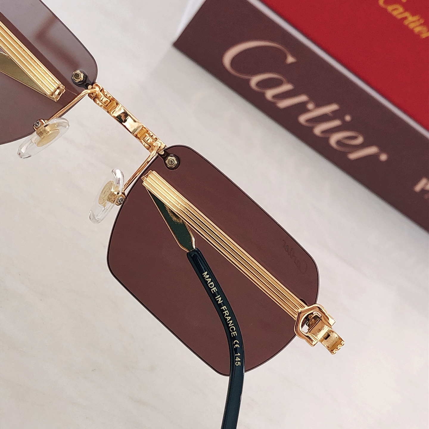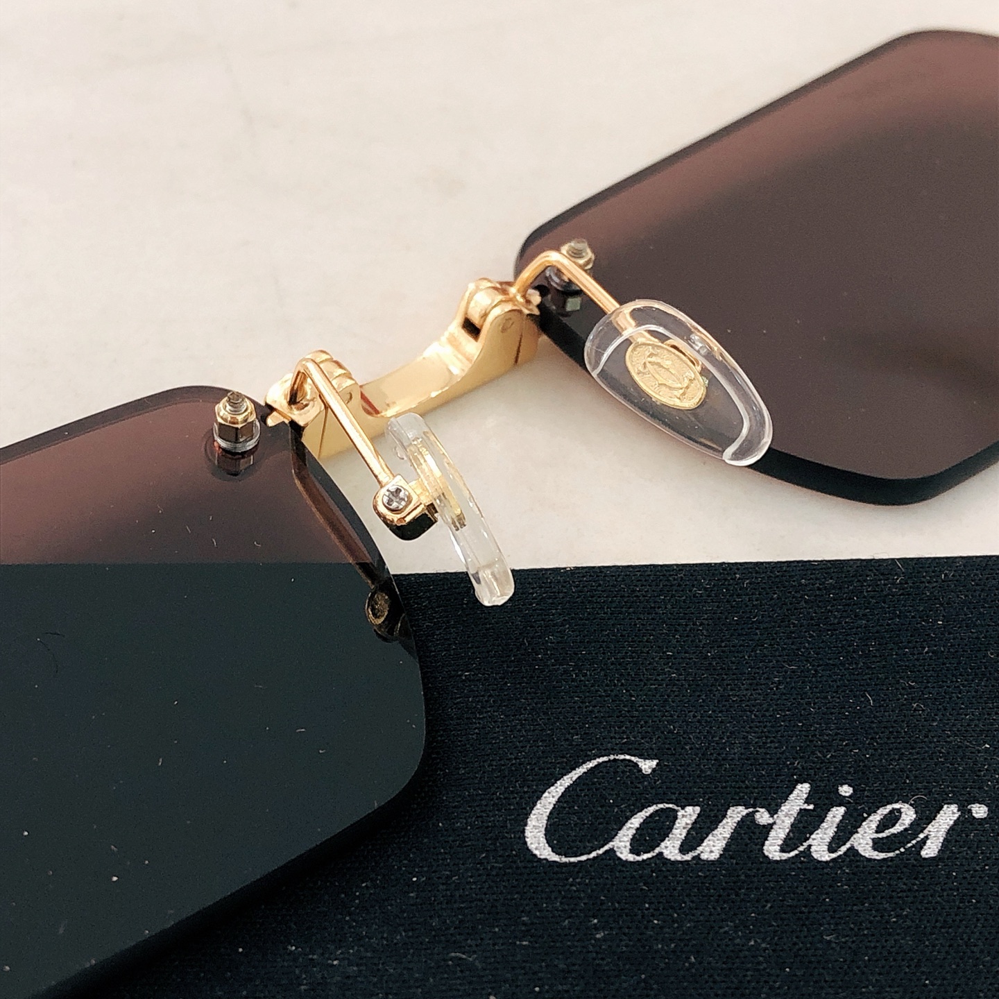 这款太阳眼镜是AAAAA 1:1 质量 (非常棒). 使用了和原版一模一样的材料. 商标部分也保持了和卡地亚/Cartier一样. 图片拍摄是实物太阳眼镜拍摄, 您所收到的实物保证和我们图片一模一样.