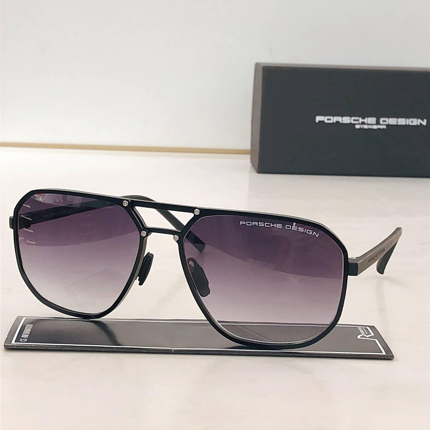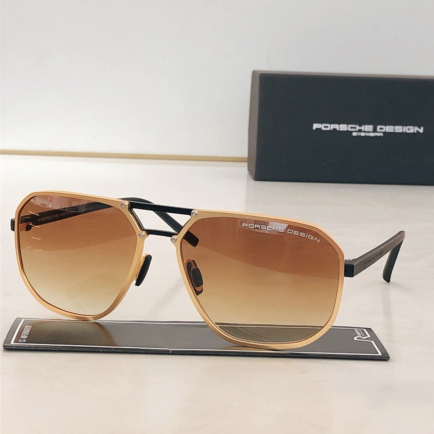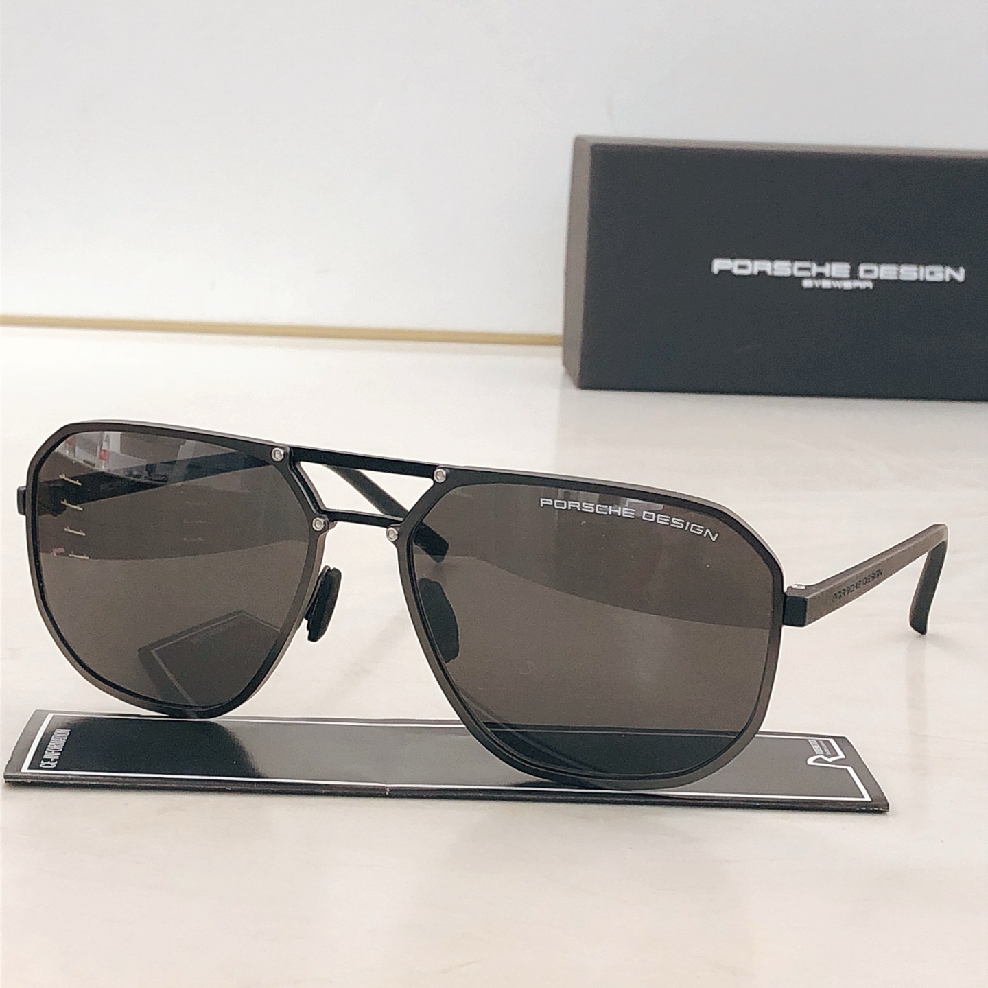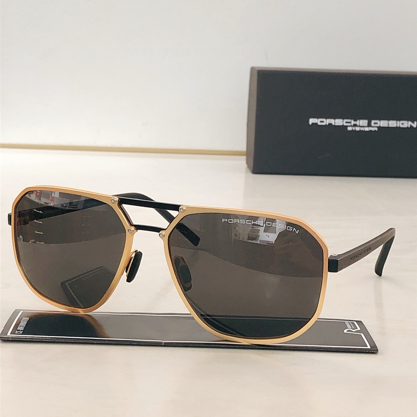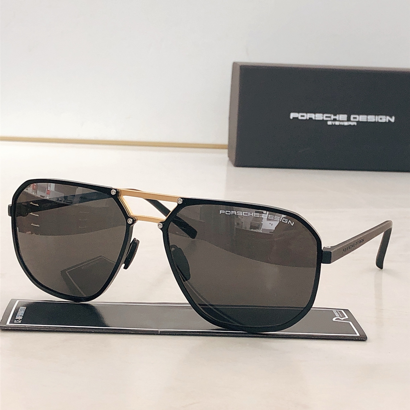 这款太阳眼镜是AAAAA 1:1 质量 (非常棒). 使用了和原版一模一样的材料. 商标部分也保持了和保时捷/Porsche一样. 图片拍摄是实物太阳眼镜拍摄, 您所收到的实物保证和我们图片一模一样.