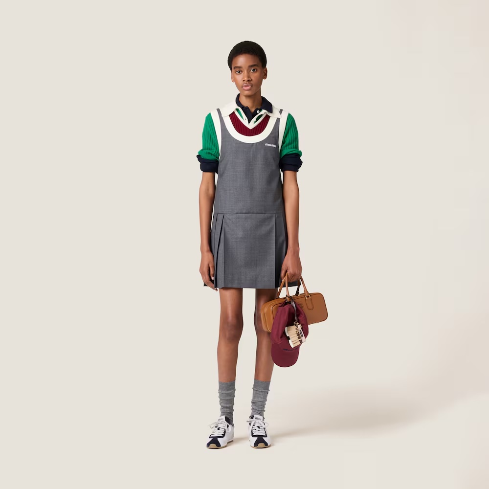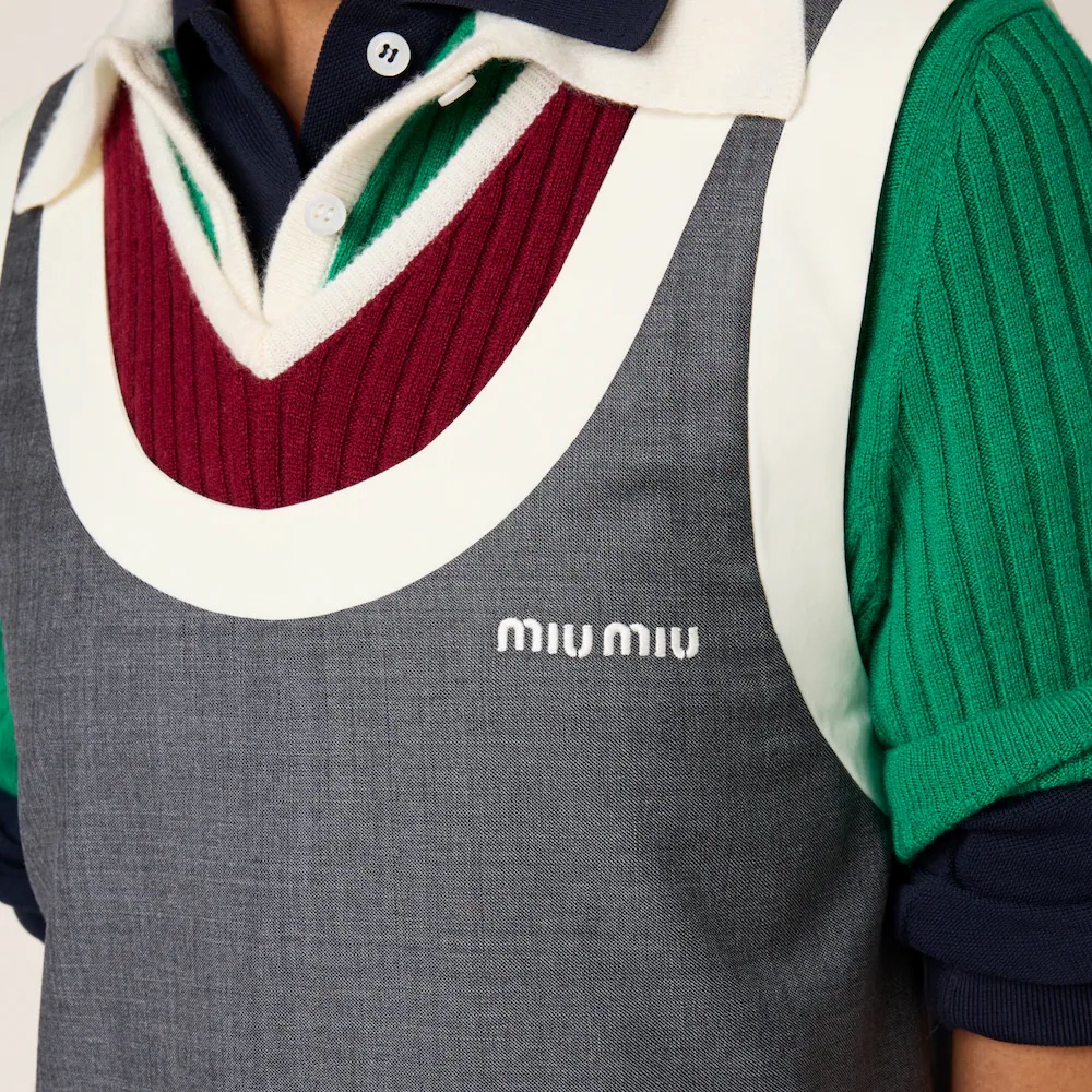 这款衣服是AAAAA 1:1 质量 (非常棒). 使用了和原版一模一样的材料. 商标部分也保持了和缪缪/Miu Miu一样. 图片拍摄是实物衣服拍摄, 您所收到的实物保证和我们图片一模一样.