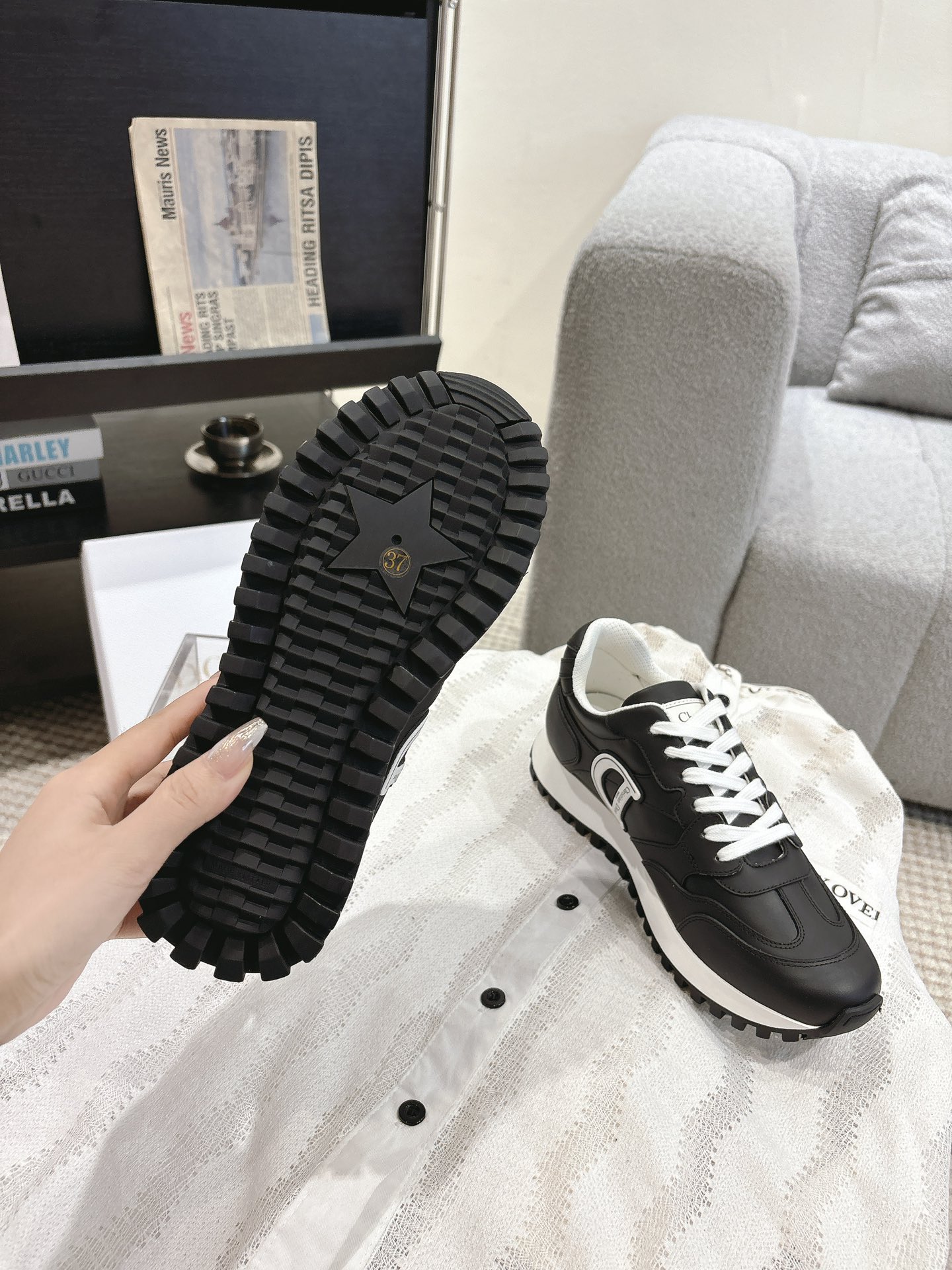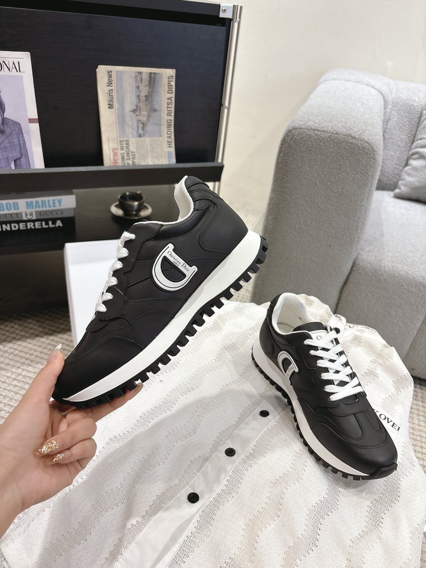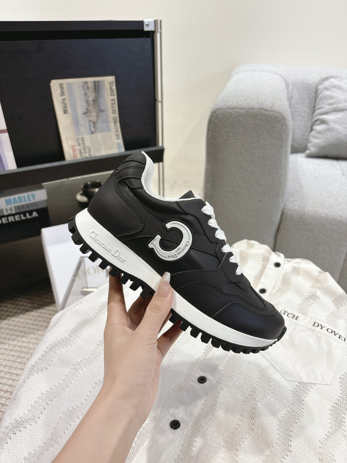 这款鞋子是AAAAA 1:1 质量 (非常棒). 使用了和原版一模一样的材料. 商标部分也保持了和迪奥/Dior一样. 图片拍摄是实物鞋子拍摄, 您所收到的实物保证和我们图片一模一样.