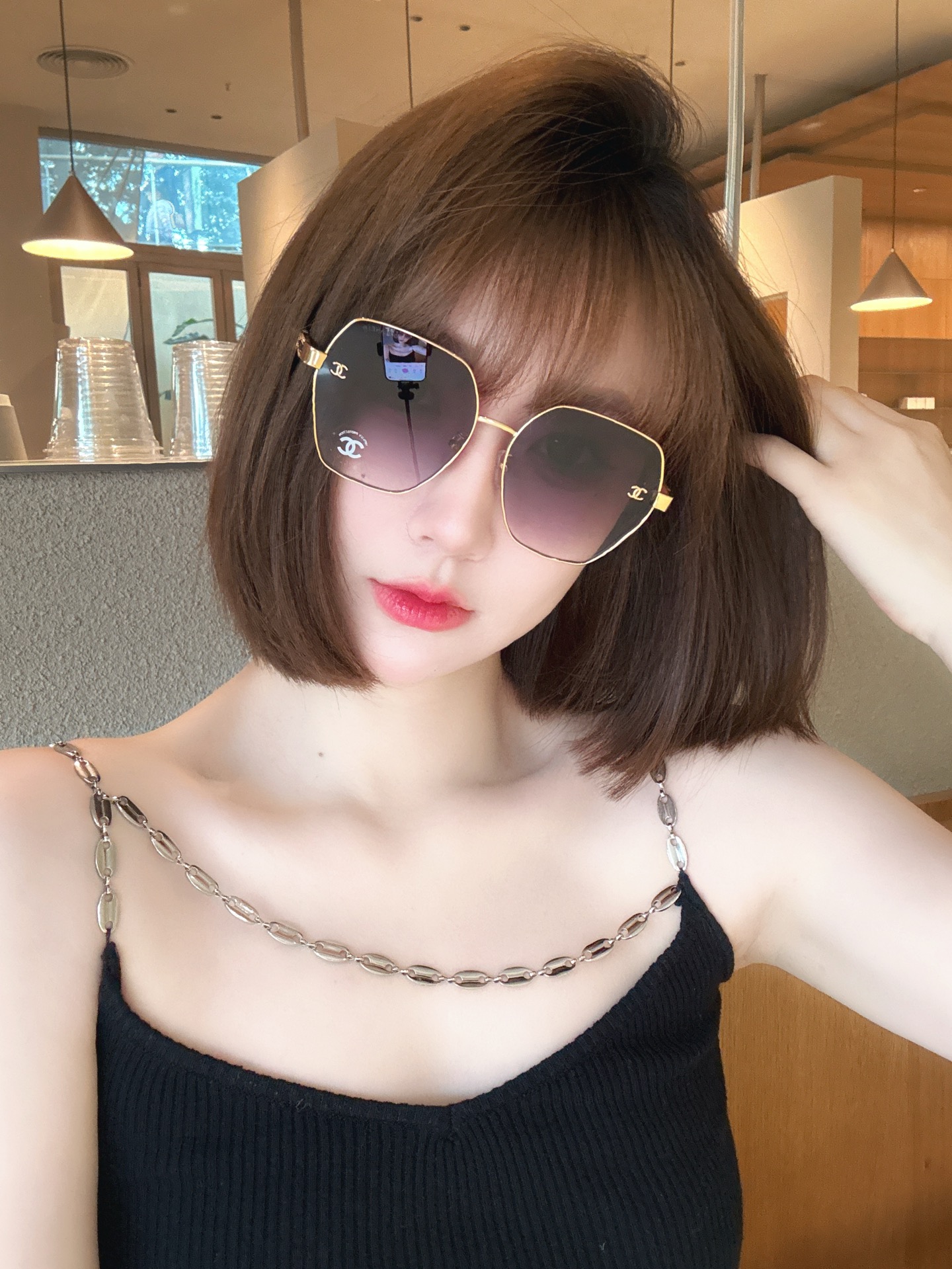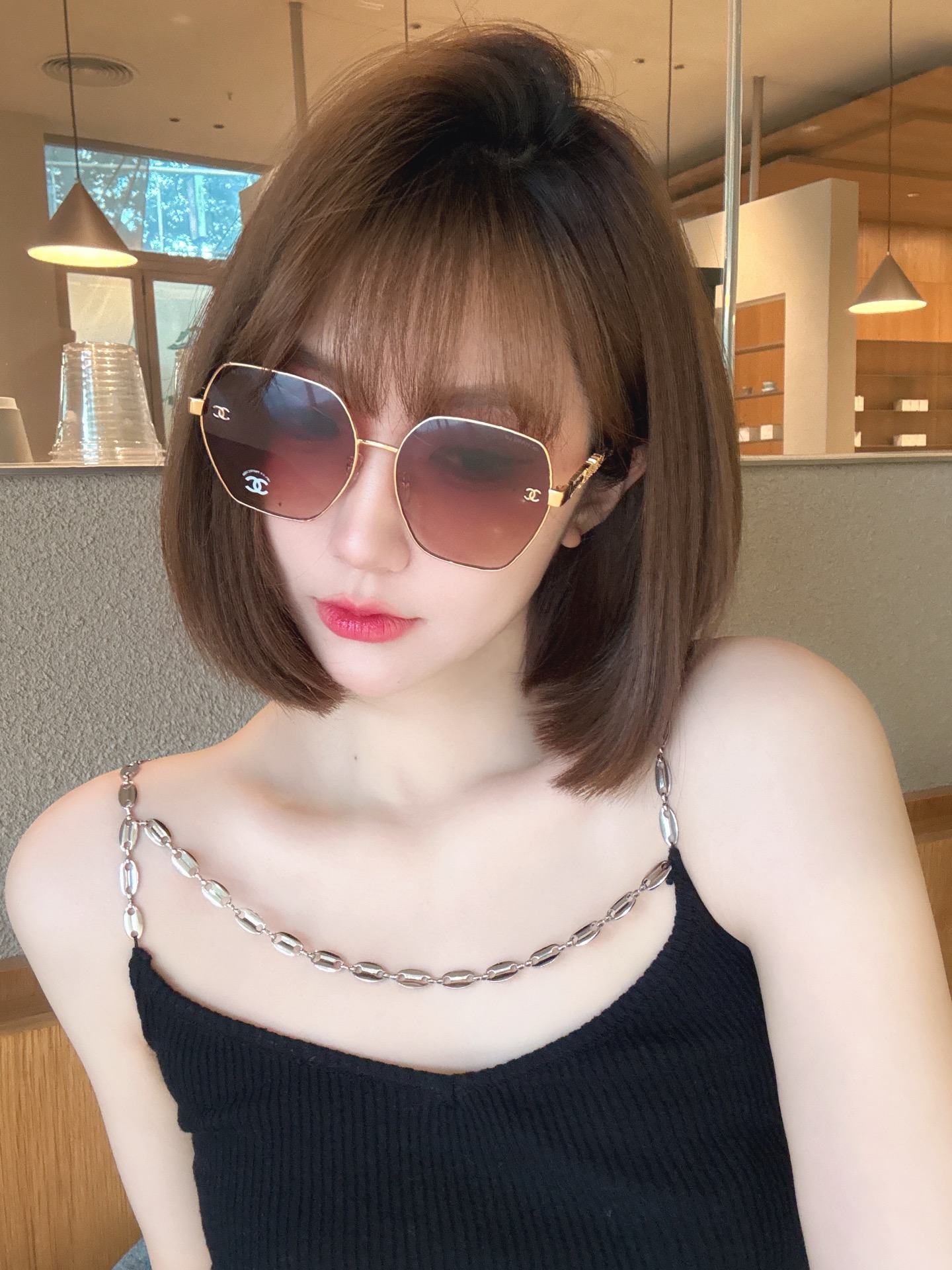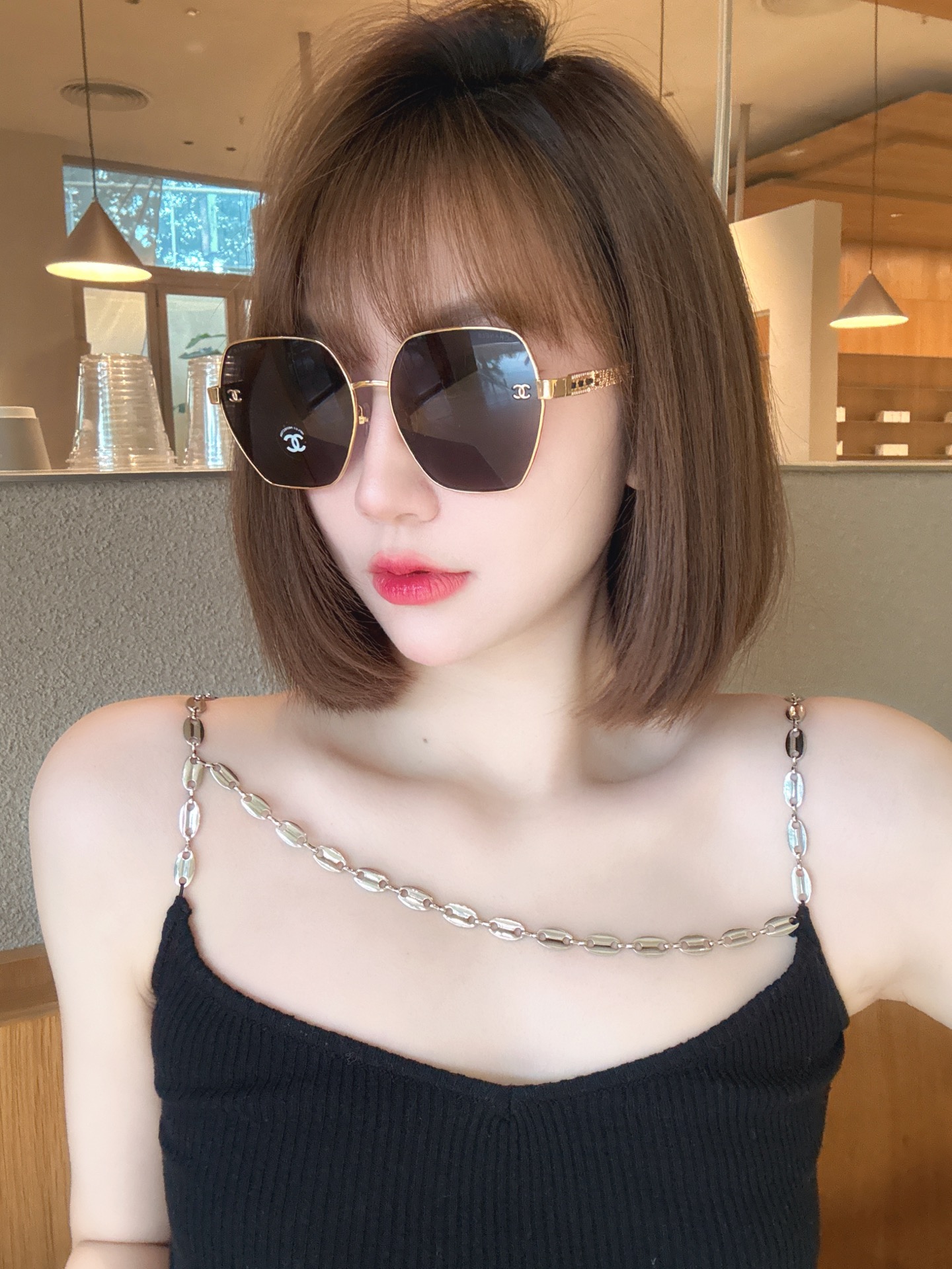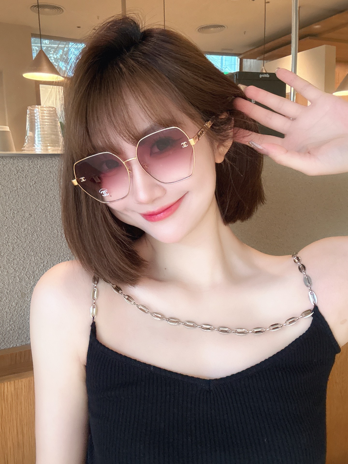 这款太阳眼镜是AAAAA 1:1 质量 (非常棒). 使用了和原版一模一样的材料. 商标部分也保持了和香奈儿/Chanel一样. 图片拍摄是实物太阳眼镜拍摄, 您所收到的实物保证和我们图片一模一样.
