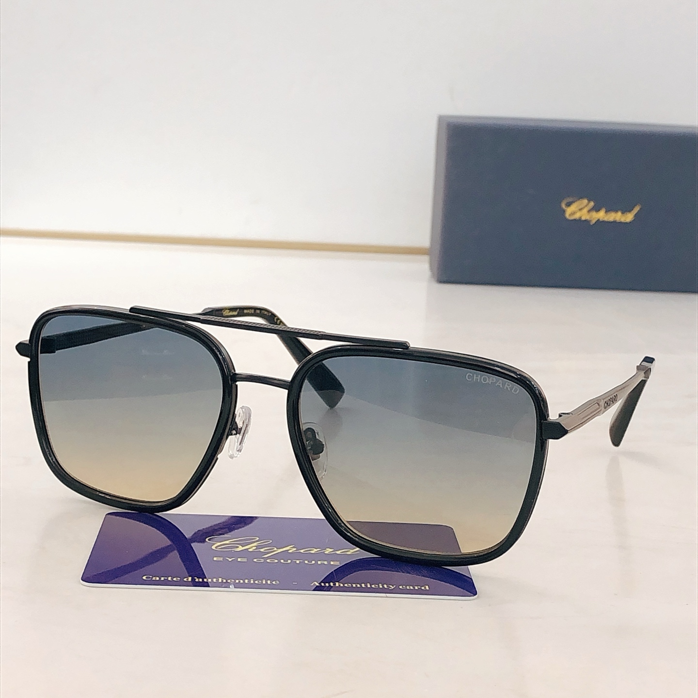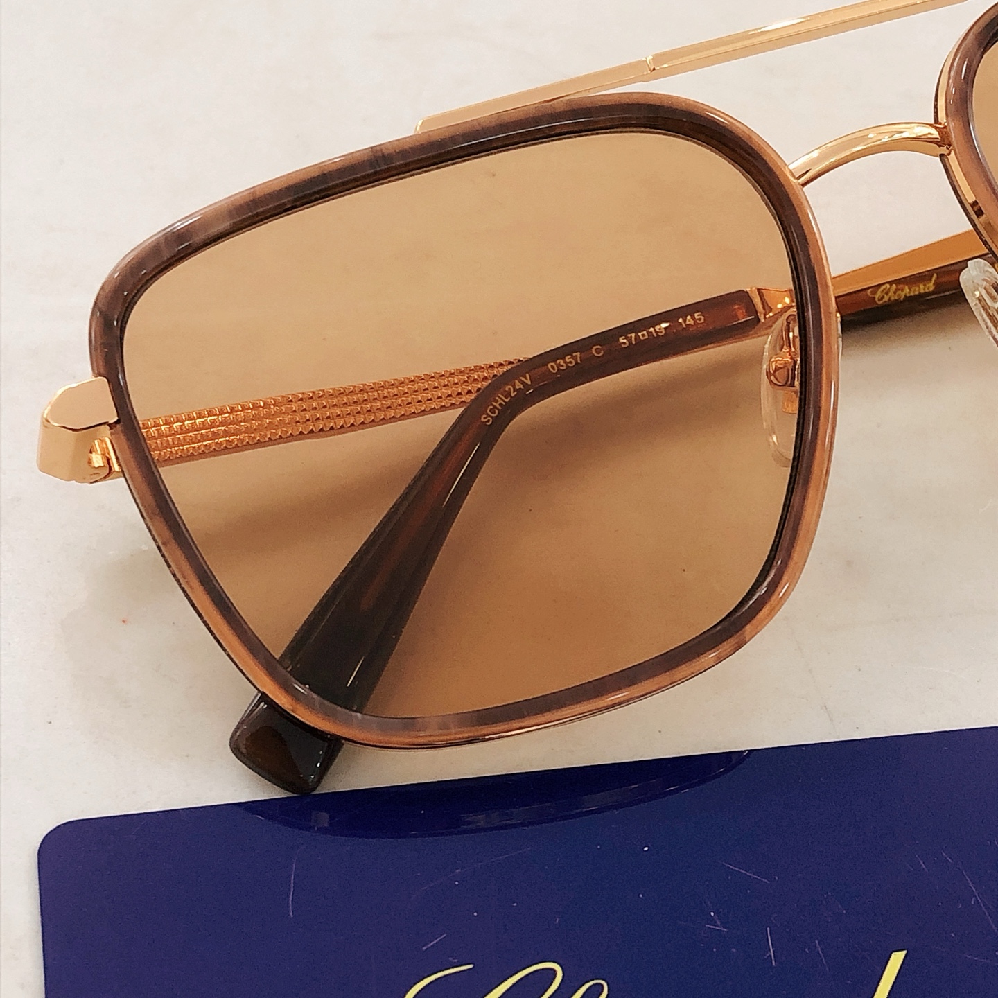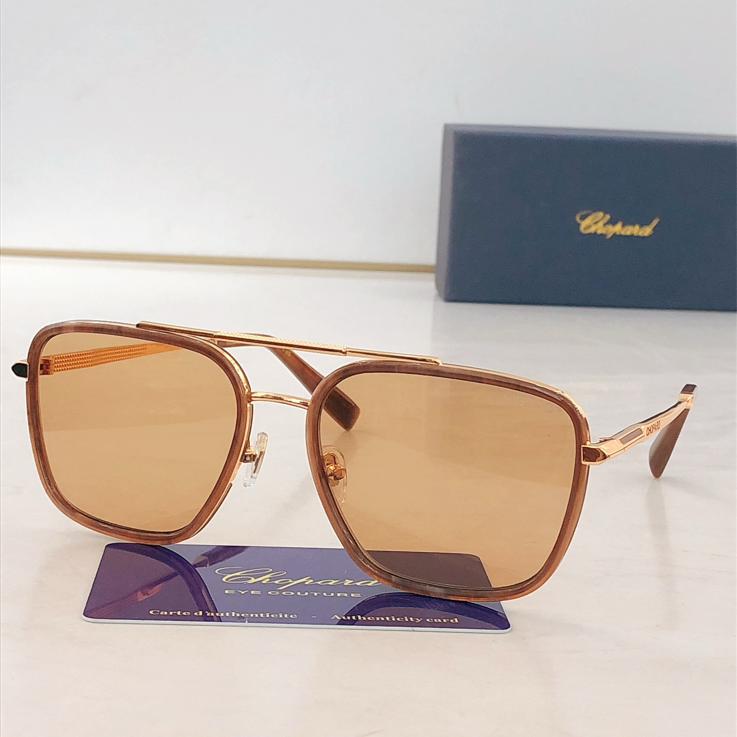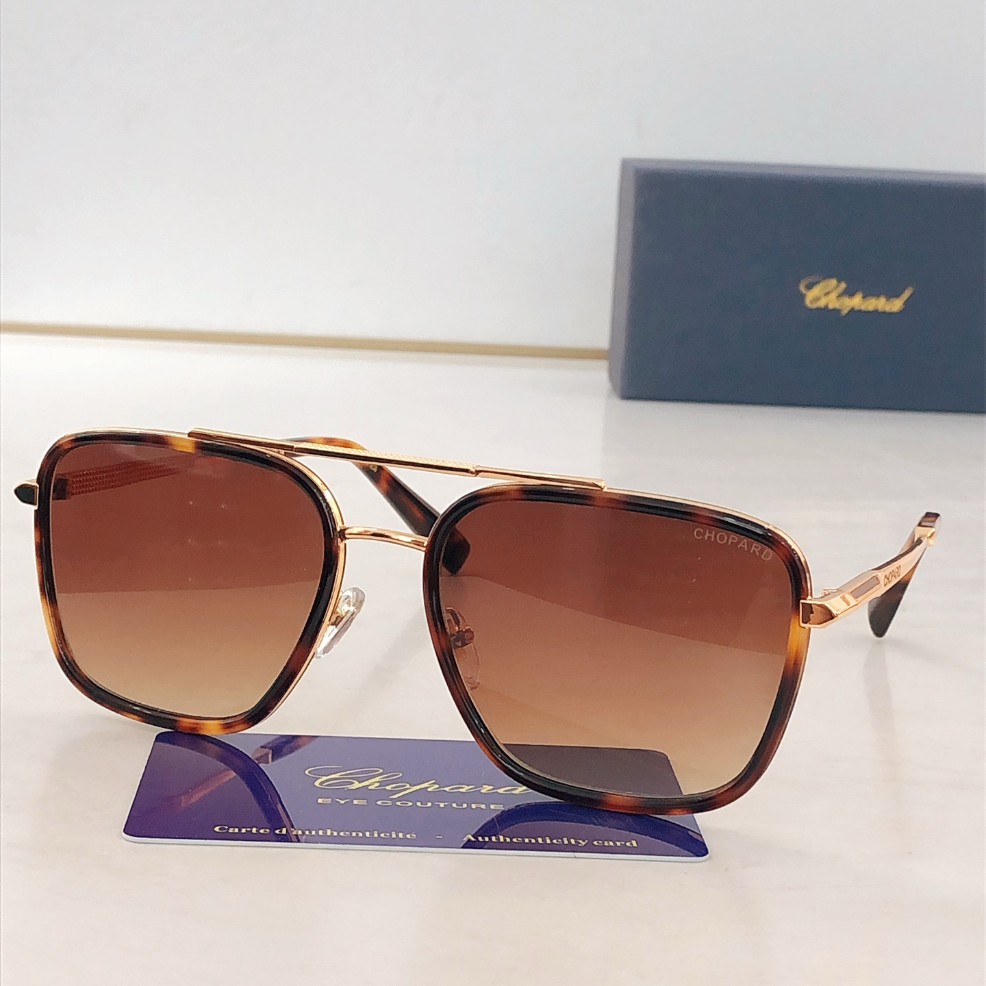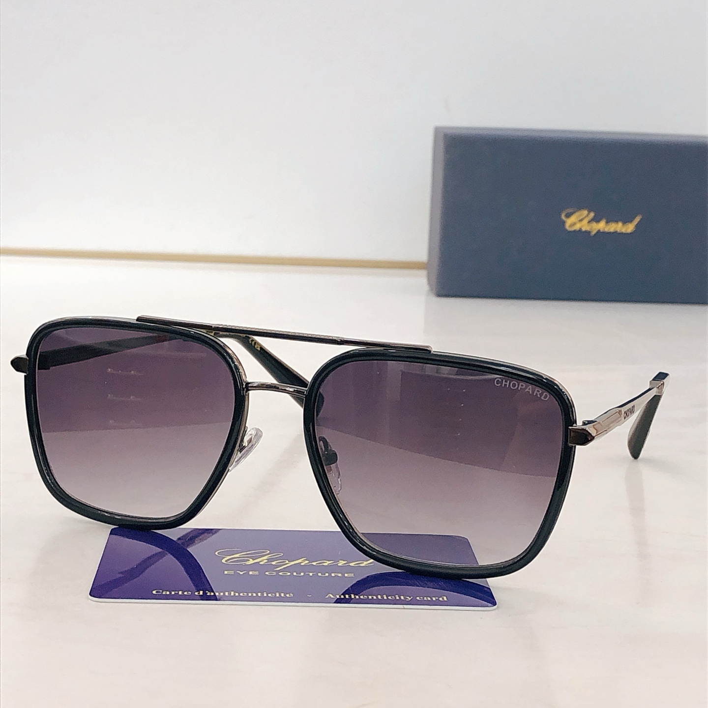 这款太阳眼镜是AAAAA 1:1 质量 (非常棒). 使用了和原版一模一样的材料. 商标部分也保持了和萧邦/Chopard一样. 图片拍摄是实物太阳眼镜拍摄, 您所收到的实物保证和我们图片一模一样.