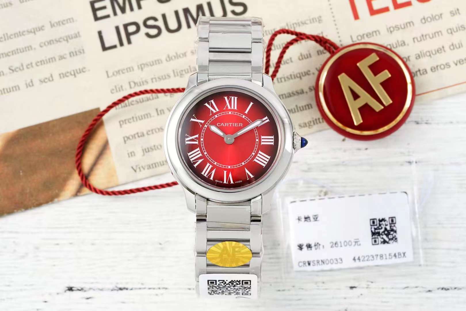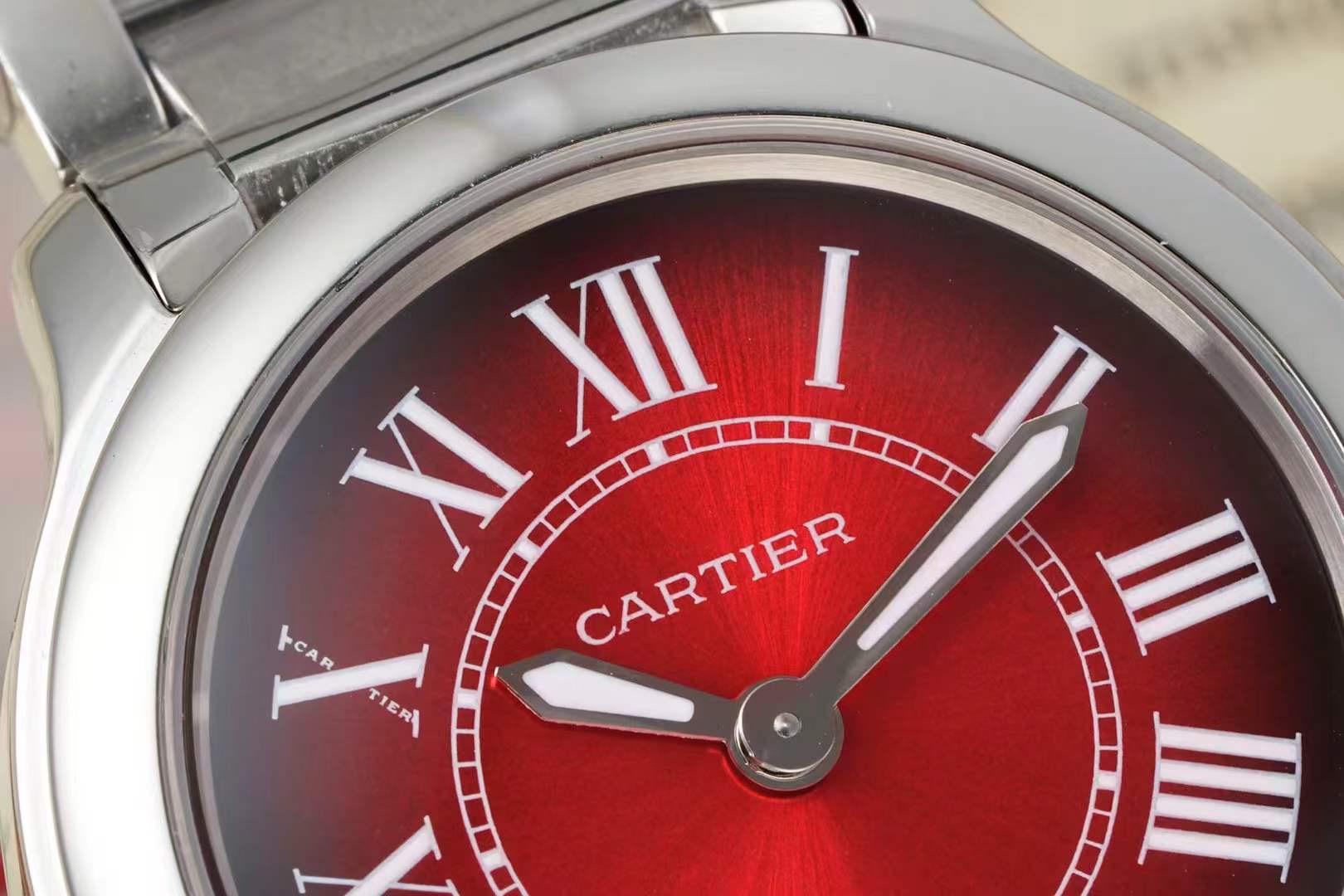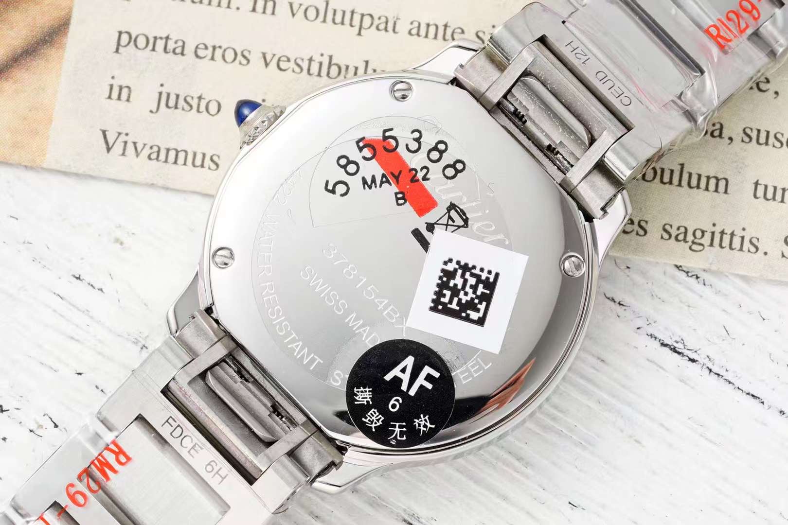 这款手表是AAAAA 1:1 质量 (非常棒). 使用了和原版一模一样的材料. 商标部分也保持了和卡地亚/Cartier一样. 图片拍摄是实物手表拍摄, 您所收到的实物保证和我们图片一模一样.