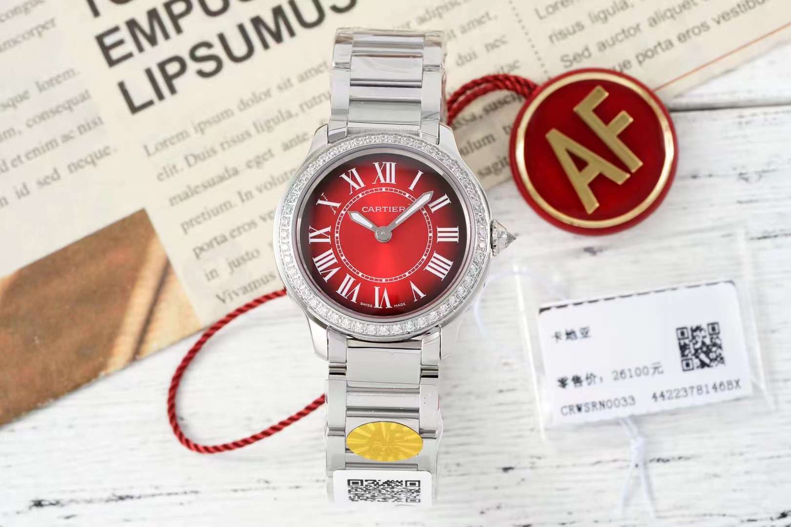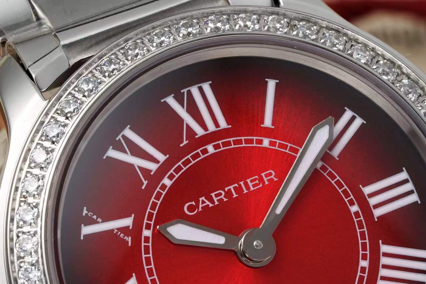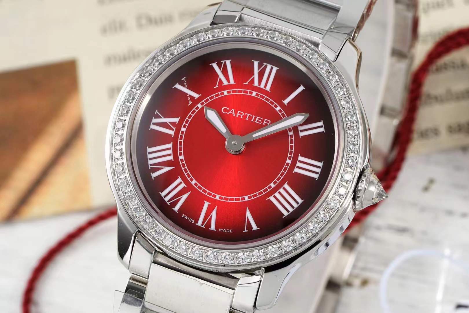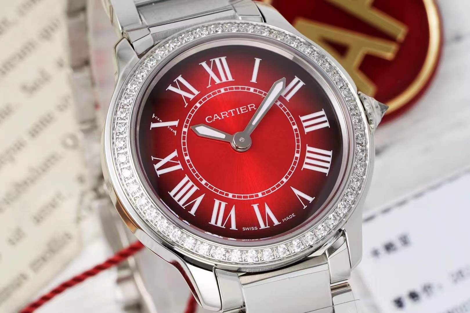 这款手表是AAAAA 1:1 质量 (非常棒). 使用了和原版一模一样的材料. 商标部分也保持了和卡地亚/Cartier一样. 图片拍摄是实物手表拍摄, 您所收到的实物保证和我们图片一模一样.