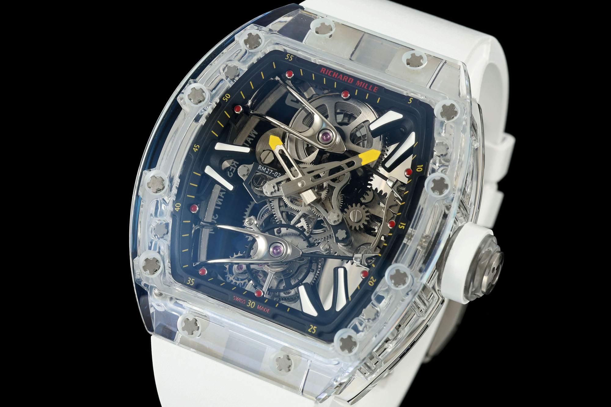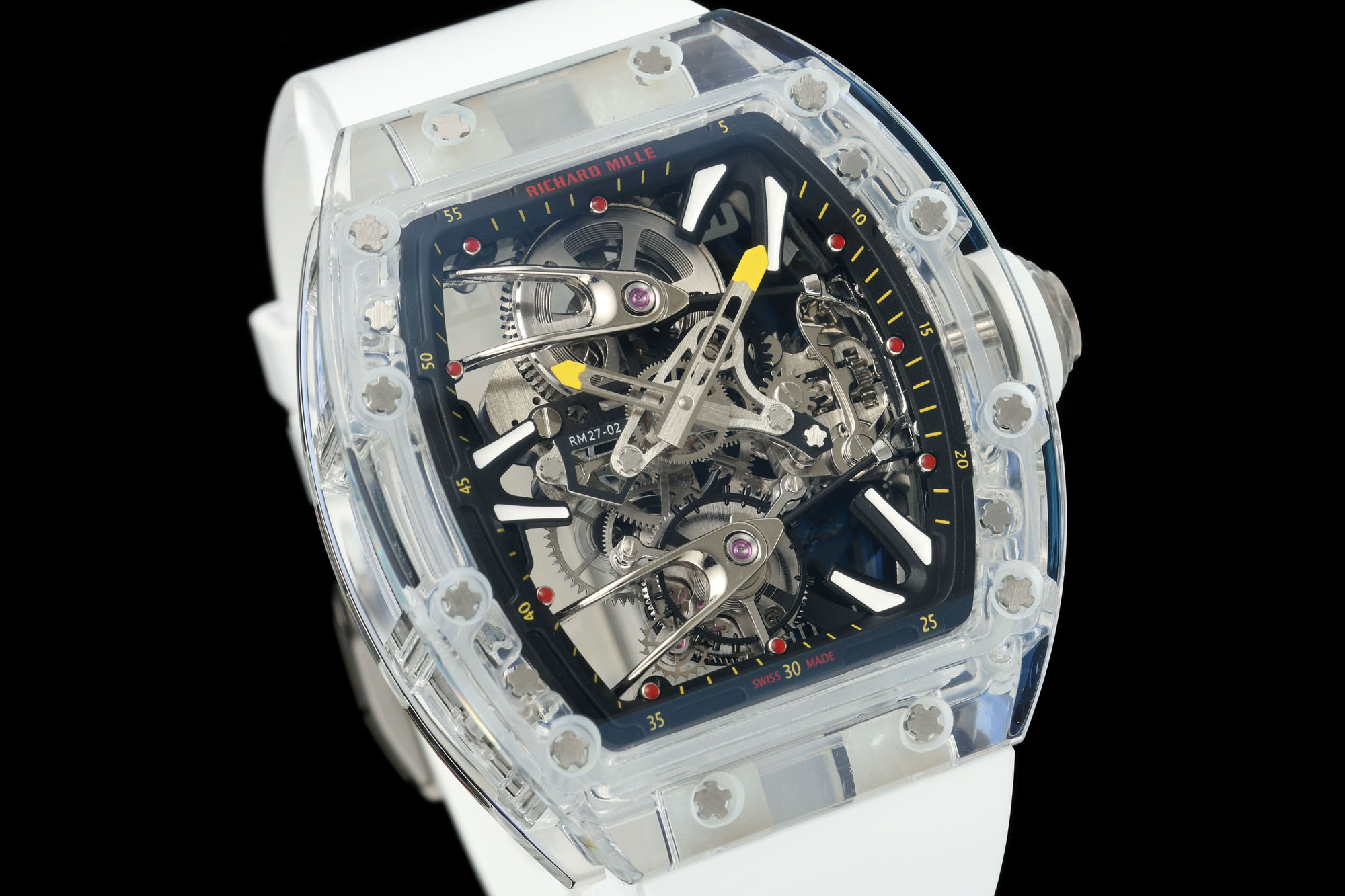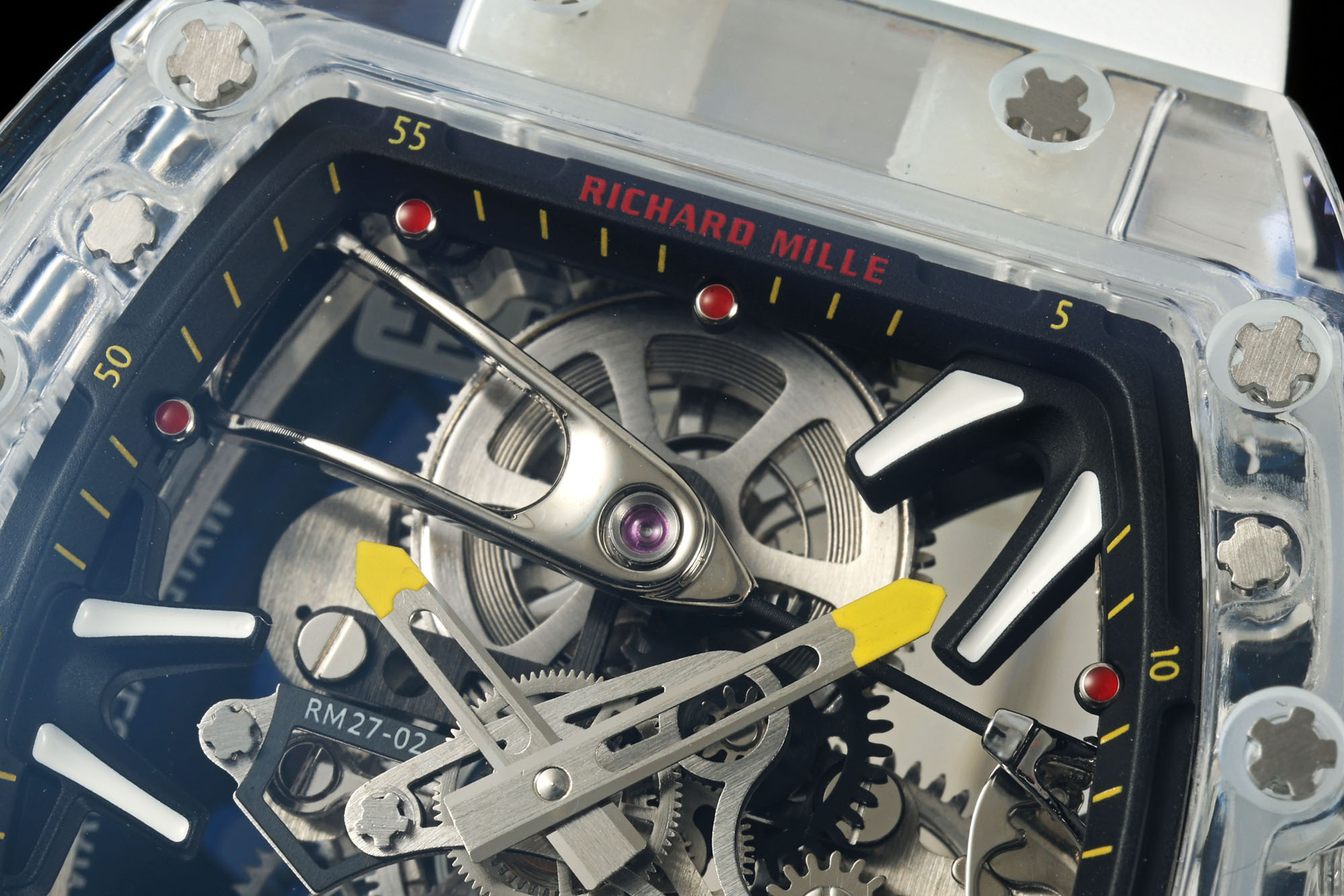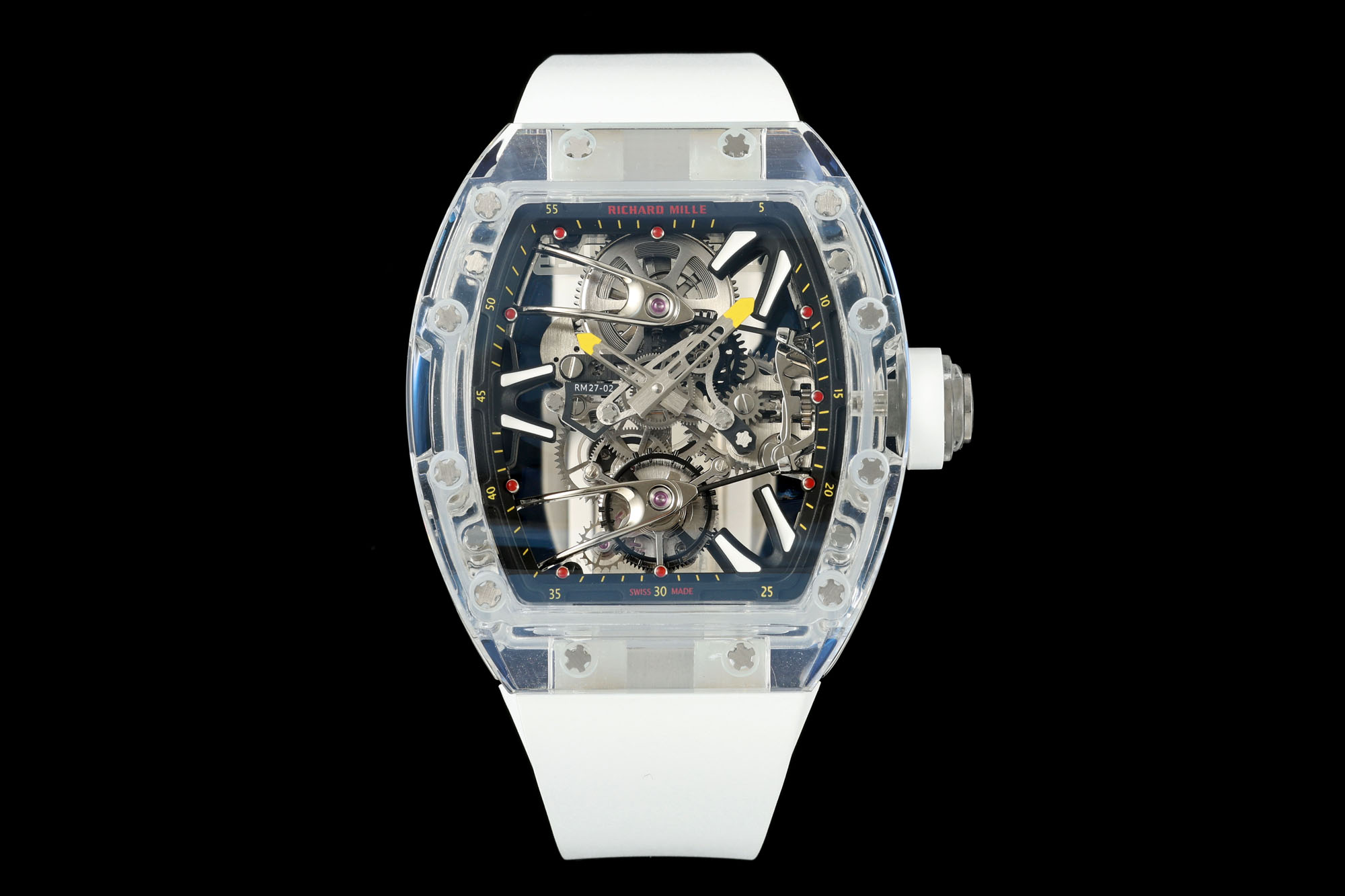 这款手表是AAAAA 1:1 质量 (非常棒). 使用了和原版一模一样的材料. 商标部分也保持了和理查德·米尔/Richard Mille一样. 图片拍摄是实物手表拍摄, 您所收到的实物保证和我们图片一模一样.