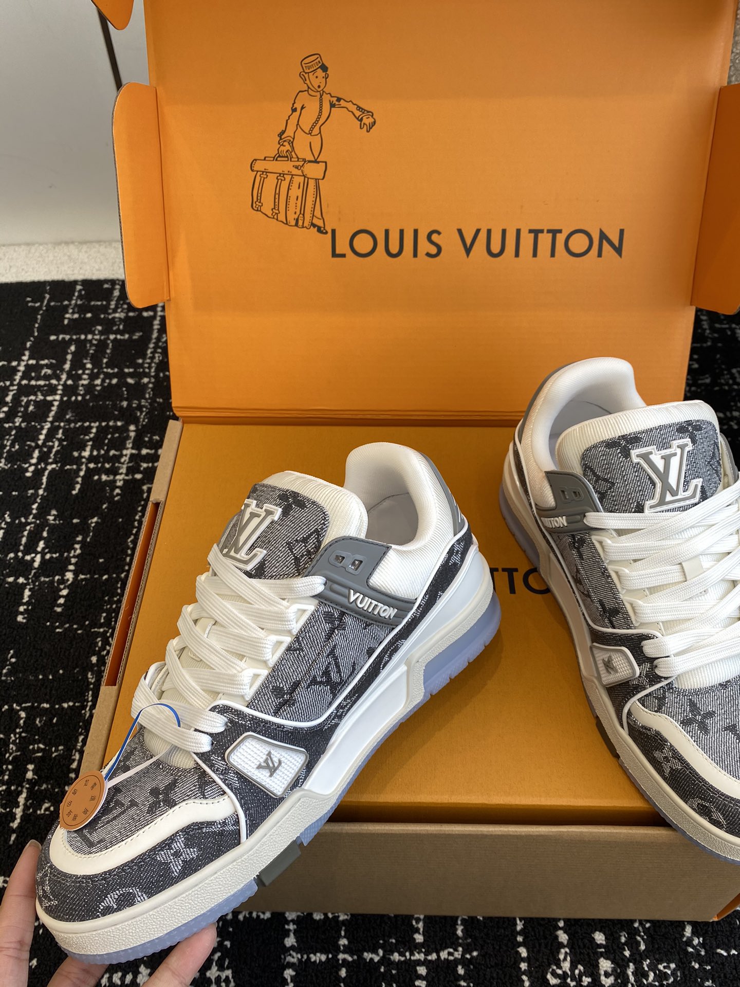 这款鞋子是AAAAA 1:1 质量 (非常棒). 使用了和原版一模一样的材料. 商标部分也保持了和路易威登/Louis Vuitton一样. 图片拍摄是实物鞋子拍摄, 您所收到的实物保证和我们图片一模一样.