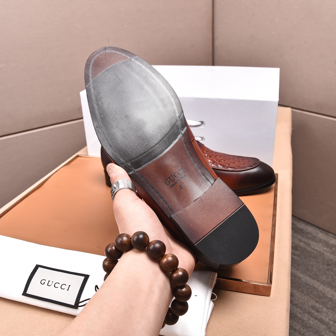 这款鞋子是AAAAA 1:1 质量 (非常棒). 使用了和原版一模一样的材料. 商标部分也保持了和古奇/Gucci一样. 图片拍摄是实物鞋子拍摄, 您所收到的实物保证和我们图片一模一样.