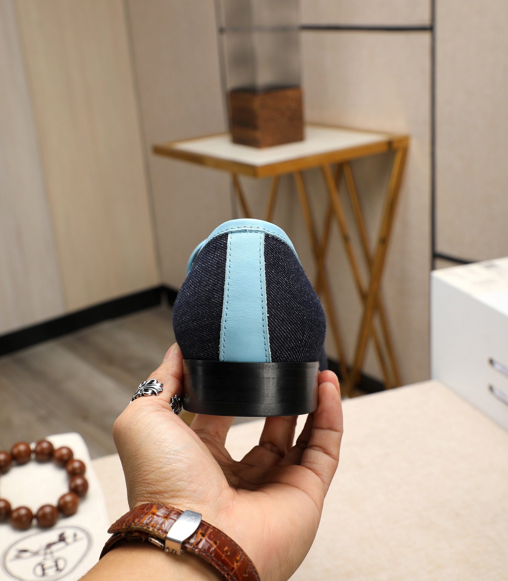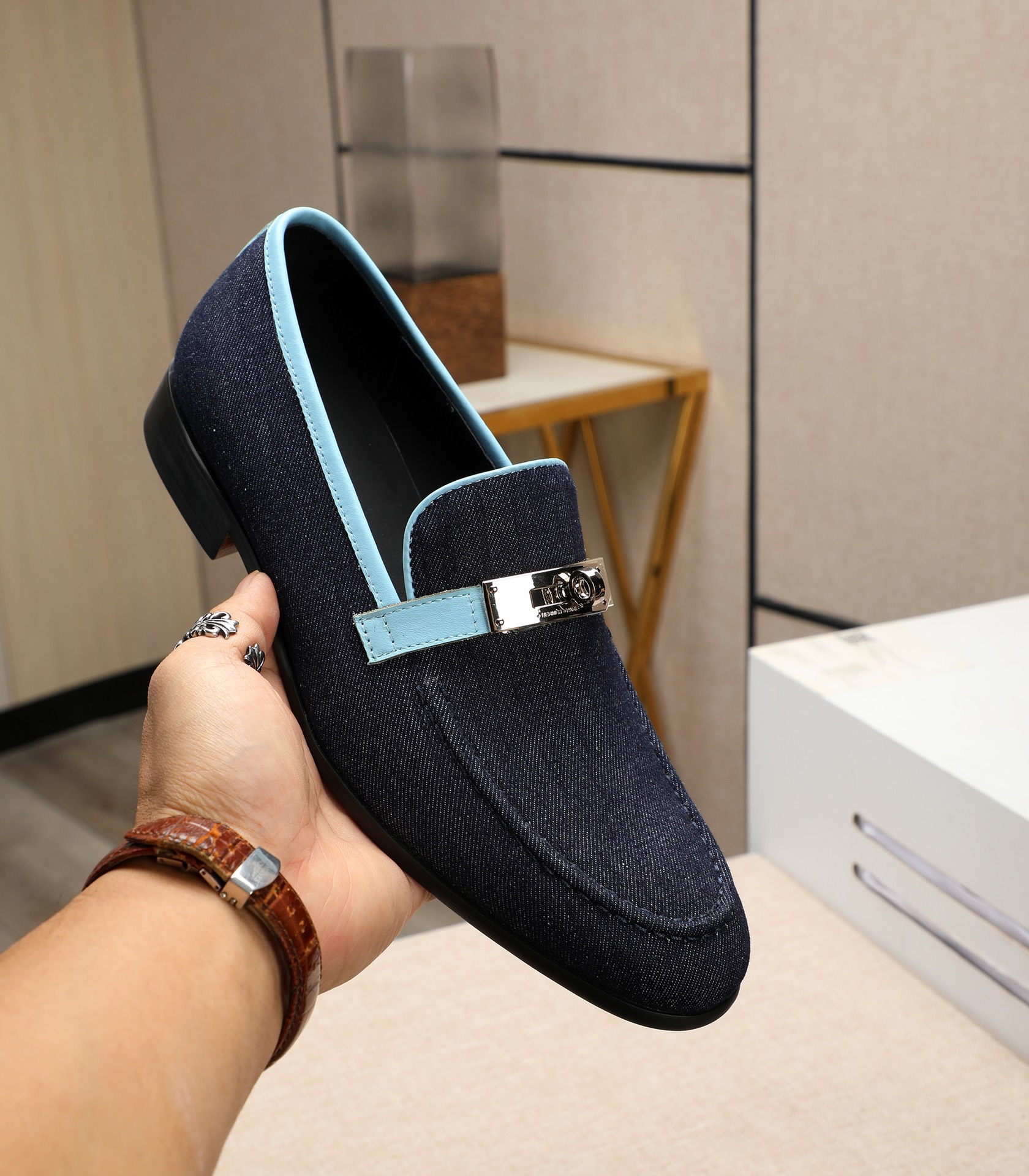 这款鞋子是AAAAA 1:1 质量 (非常棒). 使用了和原版一模一样的材料. 商标部分也保持了和爱马仕/Hermes一样. 图片拍摄是实物鞋子拍摄, 您所收到的实物保证和我们图片一模一样.