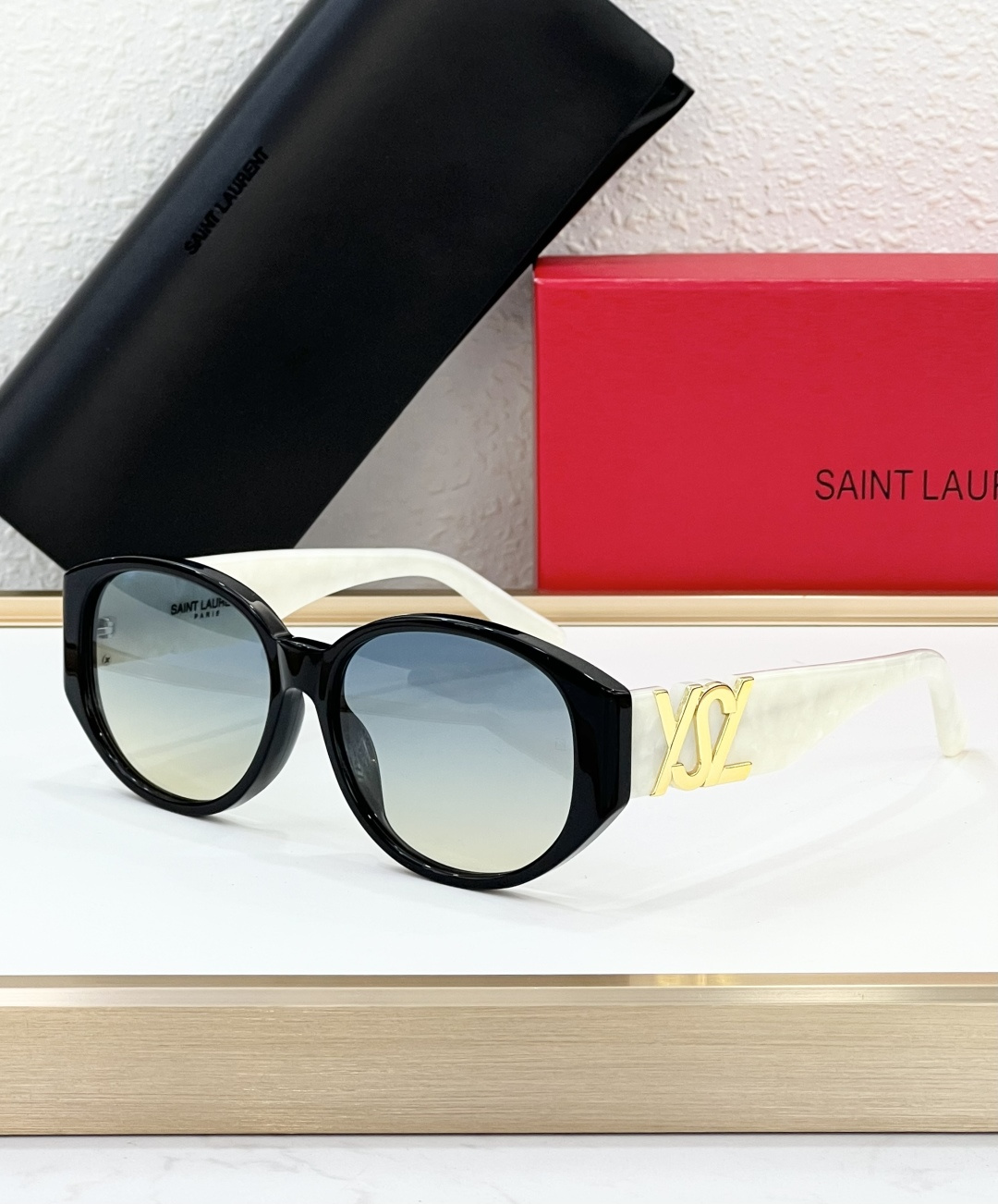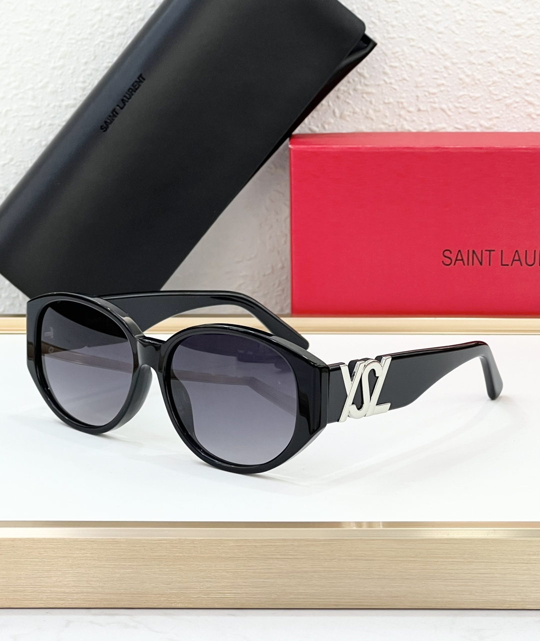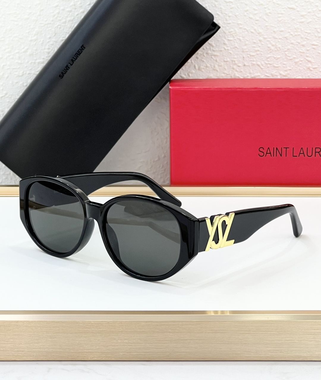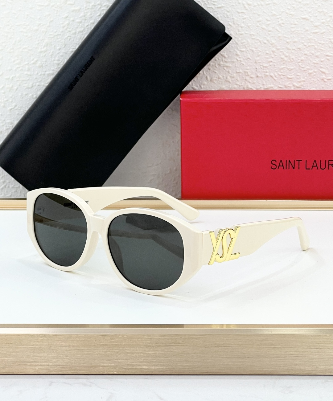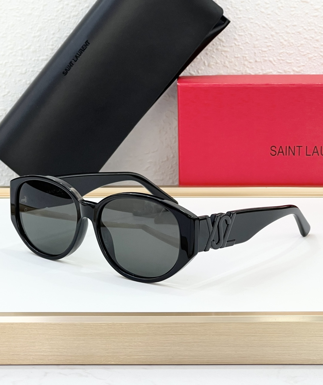 这款太阳眼镜是AAAAA 1:1 质量 (非常棒). 使用了和原版一模一样的材料. 商标部分也保持了和圣罗兰/Saint Laurent一样. 图片拍摄是实物太阳眼镜拍摄, 您所收到的实物保证和我们图片一模一样.