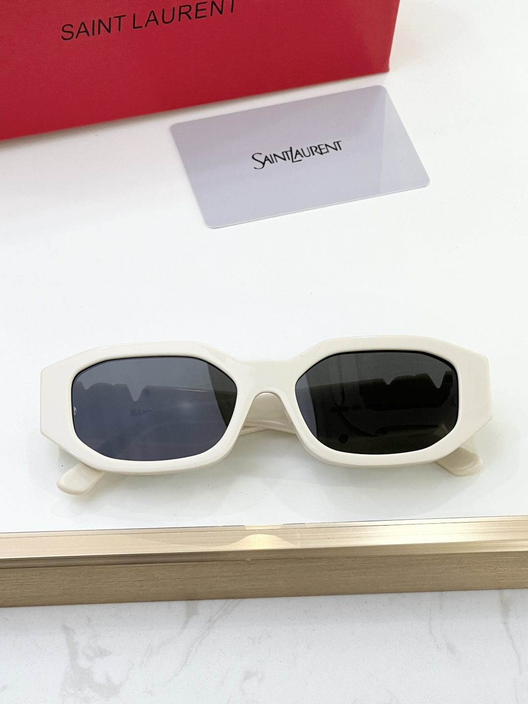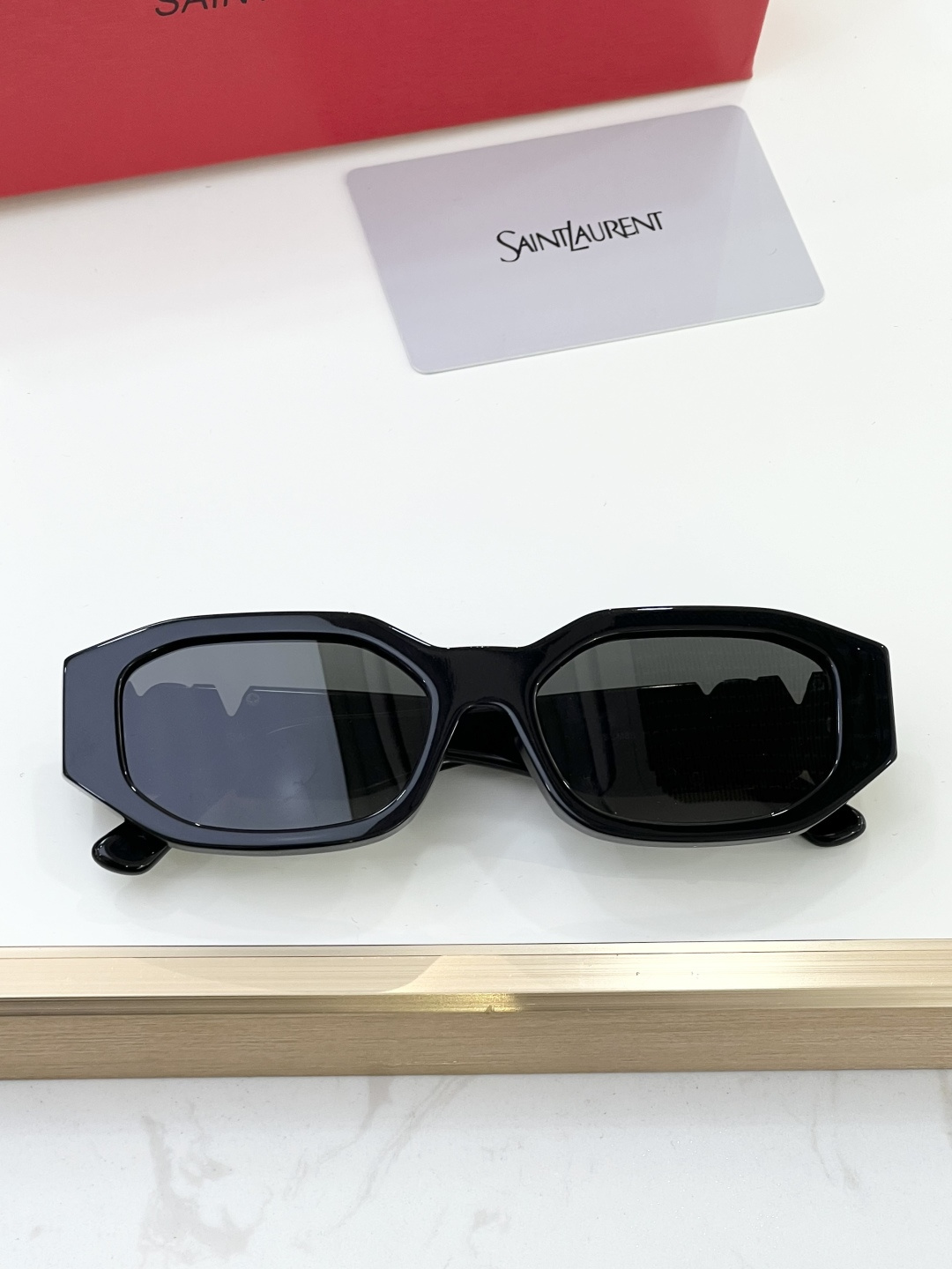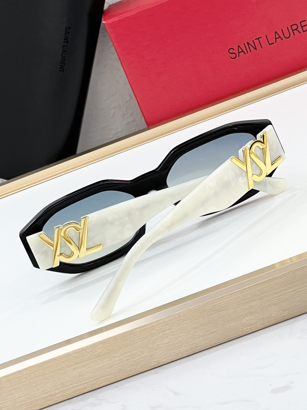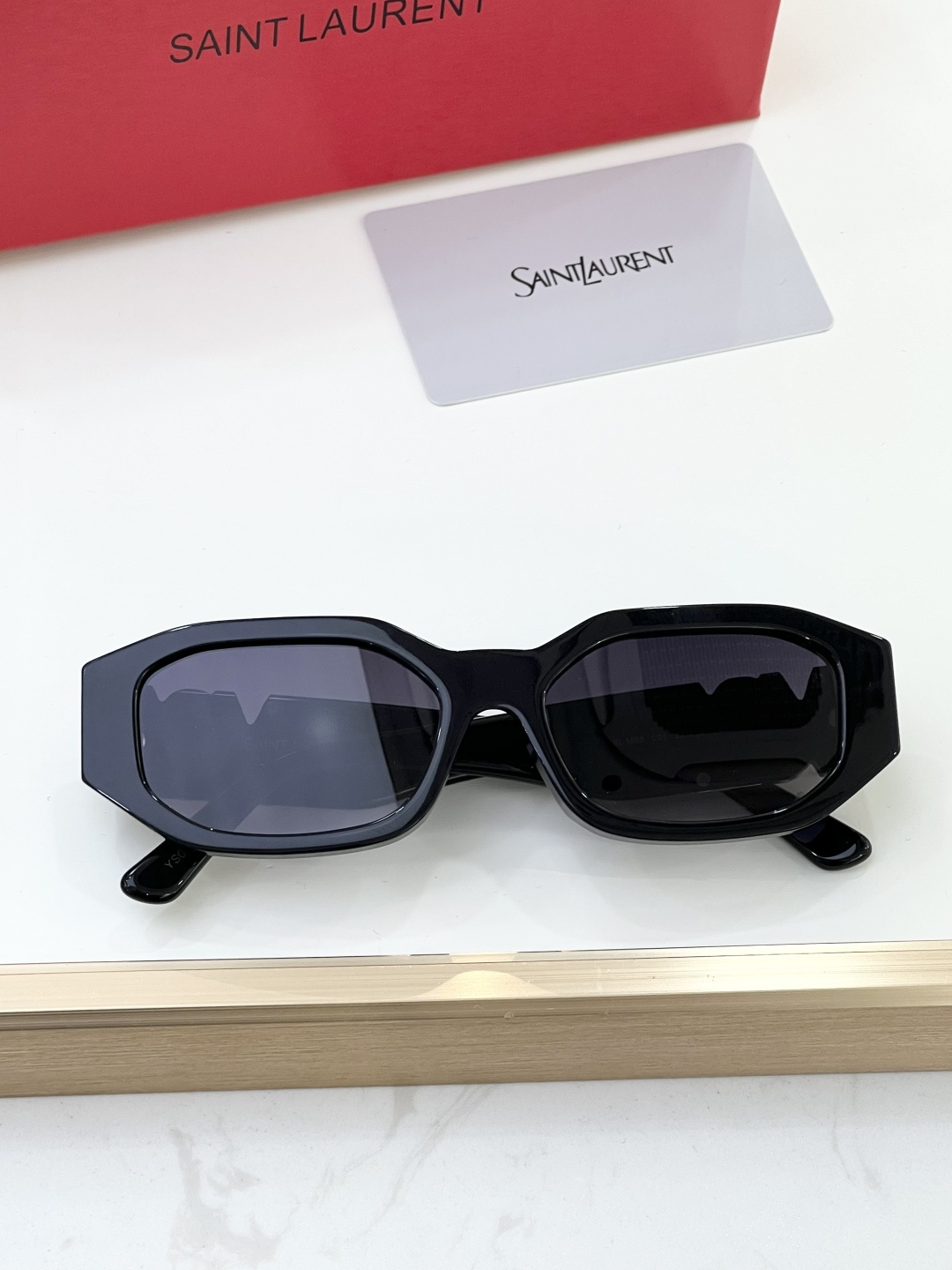 这款太阳眼镜是AAAAA 1:1 质量 (非常棒). 使用了和原版一模一样的材料. 商标部分也保持了和圣罗兰/Saint Laurent一样. 图片拍摄是实物太阳眼镜拍摄, 您所收到的实物保证和我们图片一模一样.