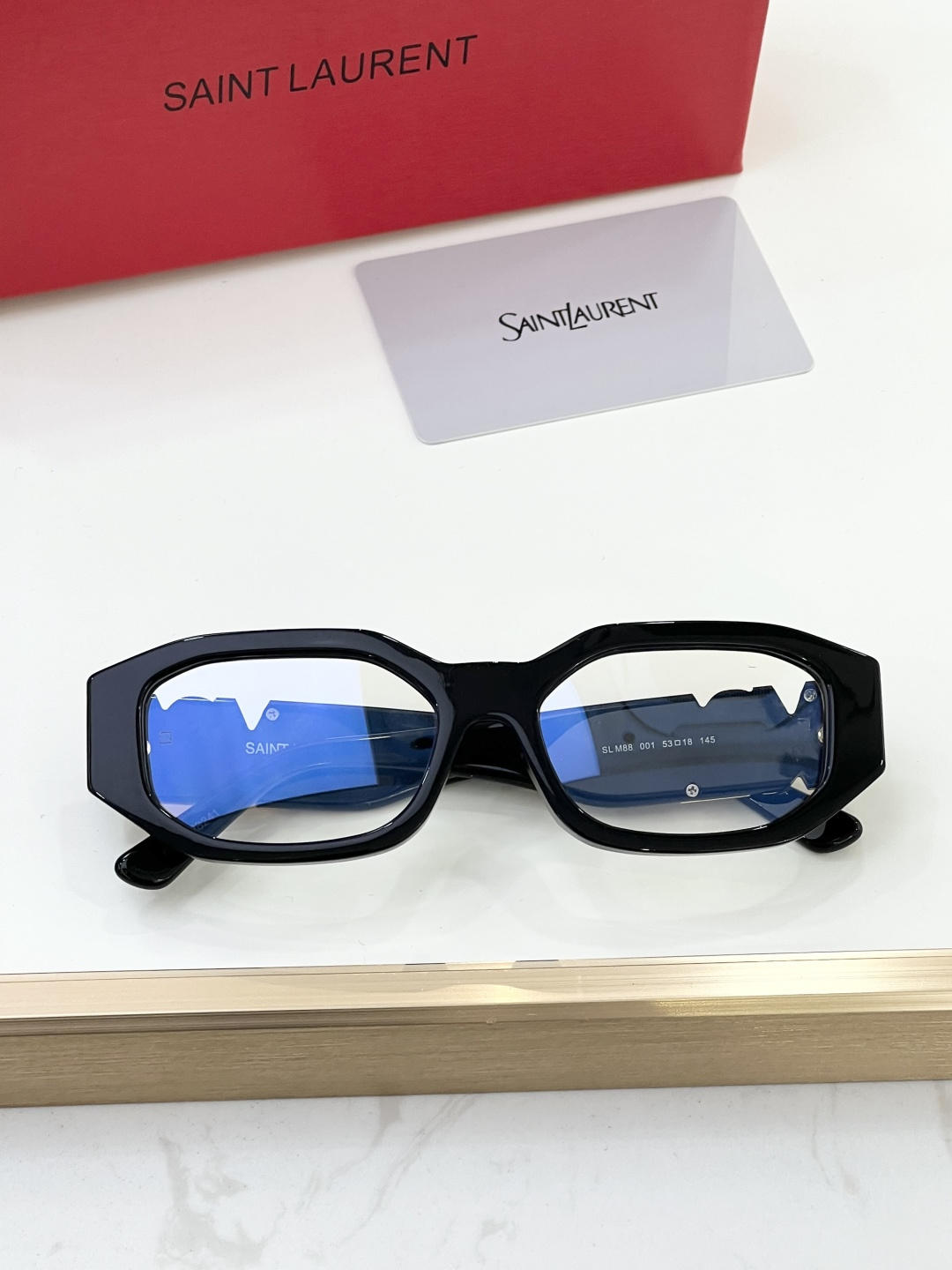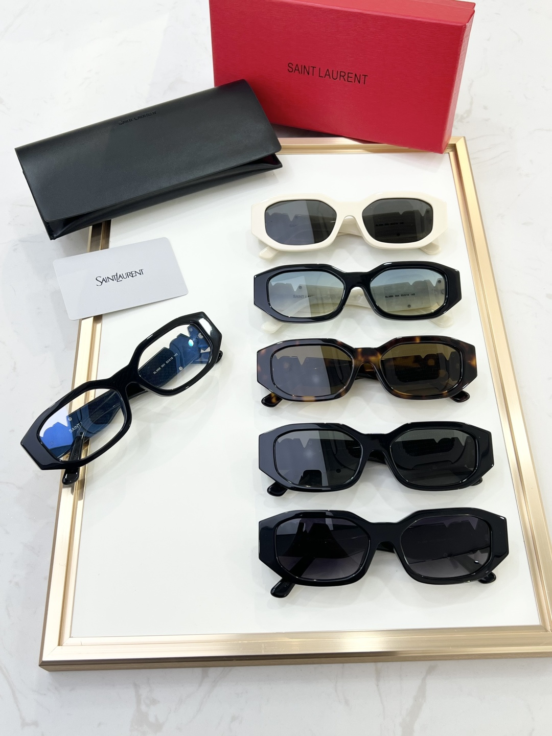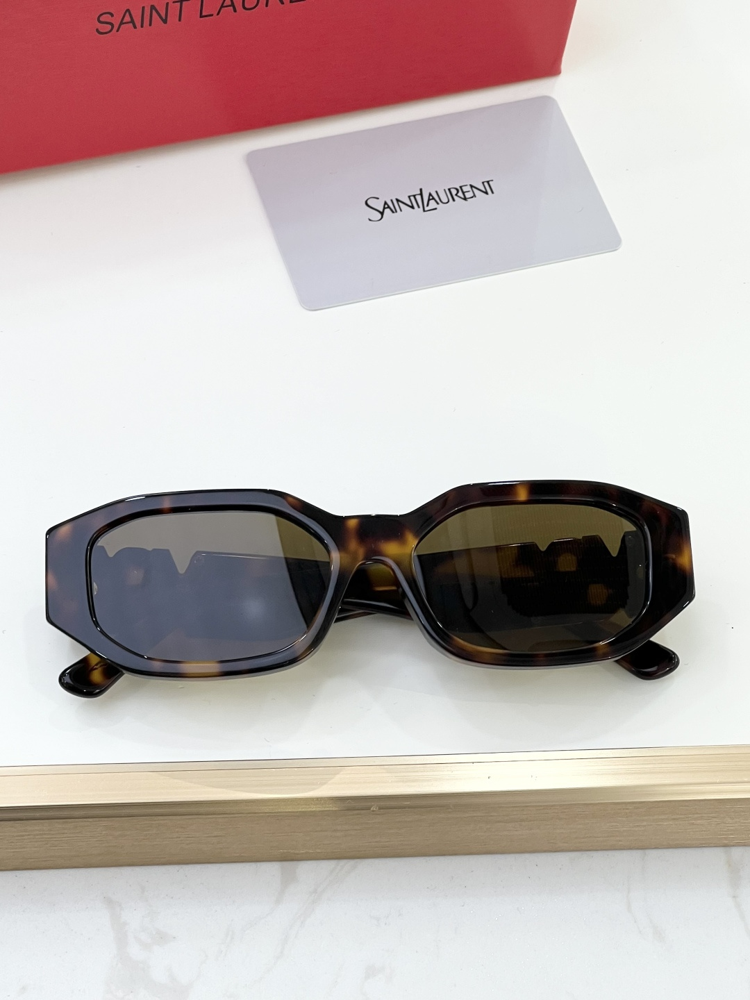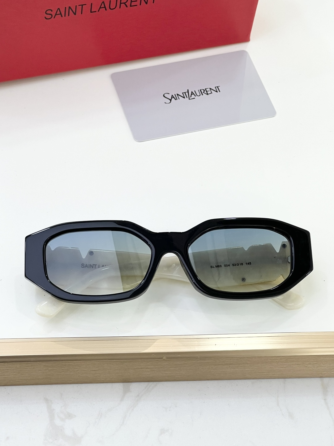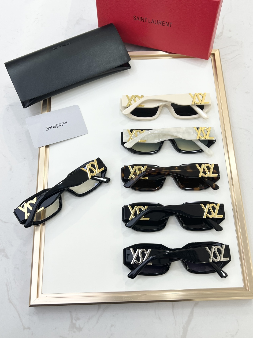 这款太阳眼镜是AAAAA 1:1 质量 (非常棒). 使用了和原版一模一样的材料. 商标部分也保持了和圣罗兰/Saint Laurent一样. 图片拍摄是实物太阳眼镜拍摄, 您所收到的实物保证和我们图片一模一样.