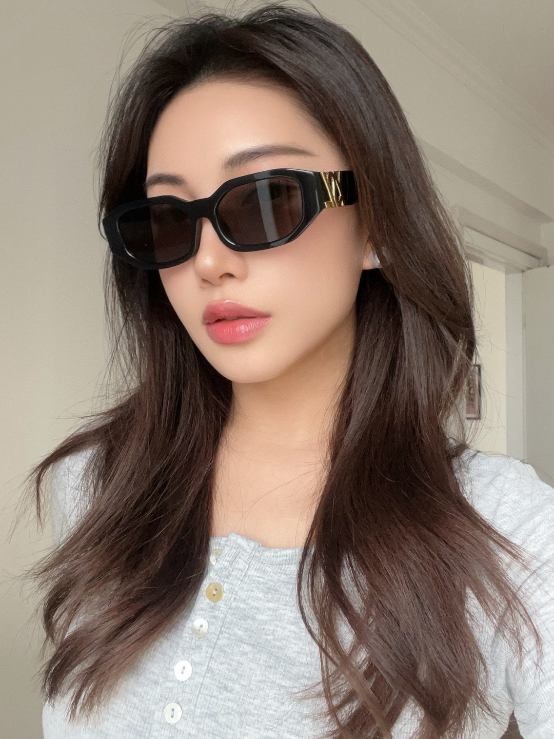这款太阳眼镜是AAAAA 1:1 质量 (非常棒). 使用了和原版一模一样的材料. 商标部分也保持了和圣罗兰/Saint Laurent一样. 图片拍摄是实物太阳眼镜拍摄, 您所收到的实物保证和我们图片一模一样.