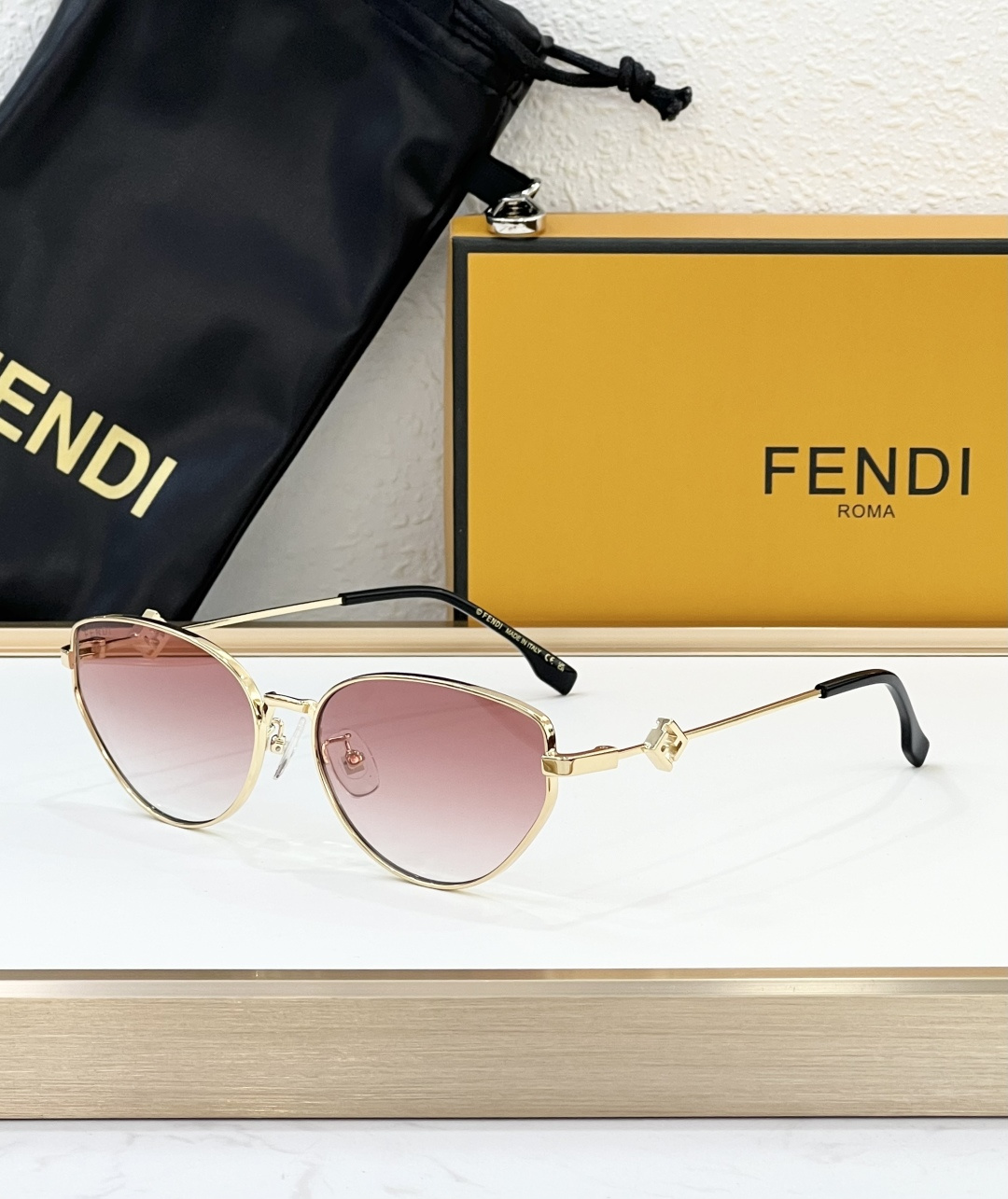 这款太阳眼镜是AAAAA 1:1 质量 (非常棒). 使用了和原版一模一样的材料. 商标部分也保持了和芬迪/Fendi一样. 图片拍摄是实物太阳眼镜拍摄, 您所收到的实物保证和我们图片一模一样.