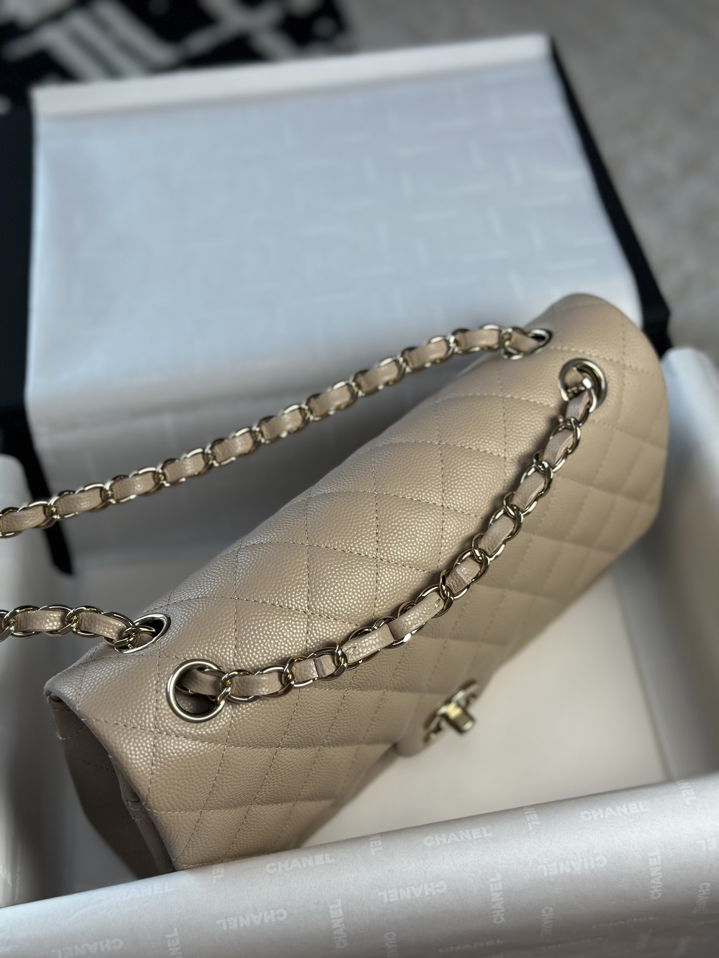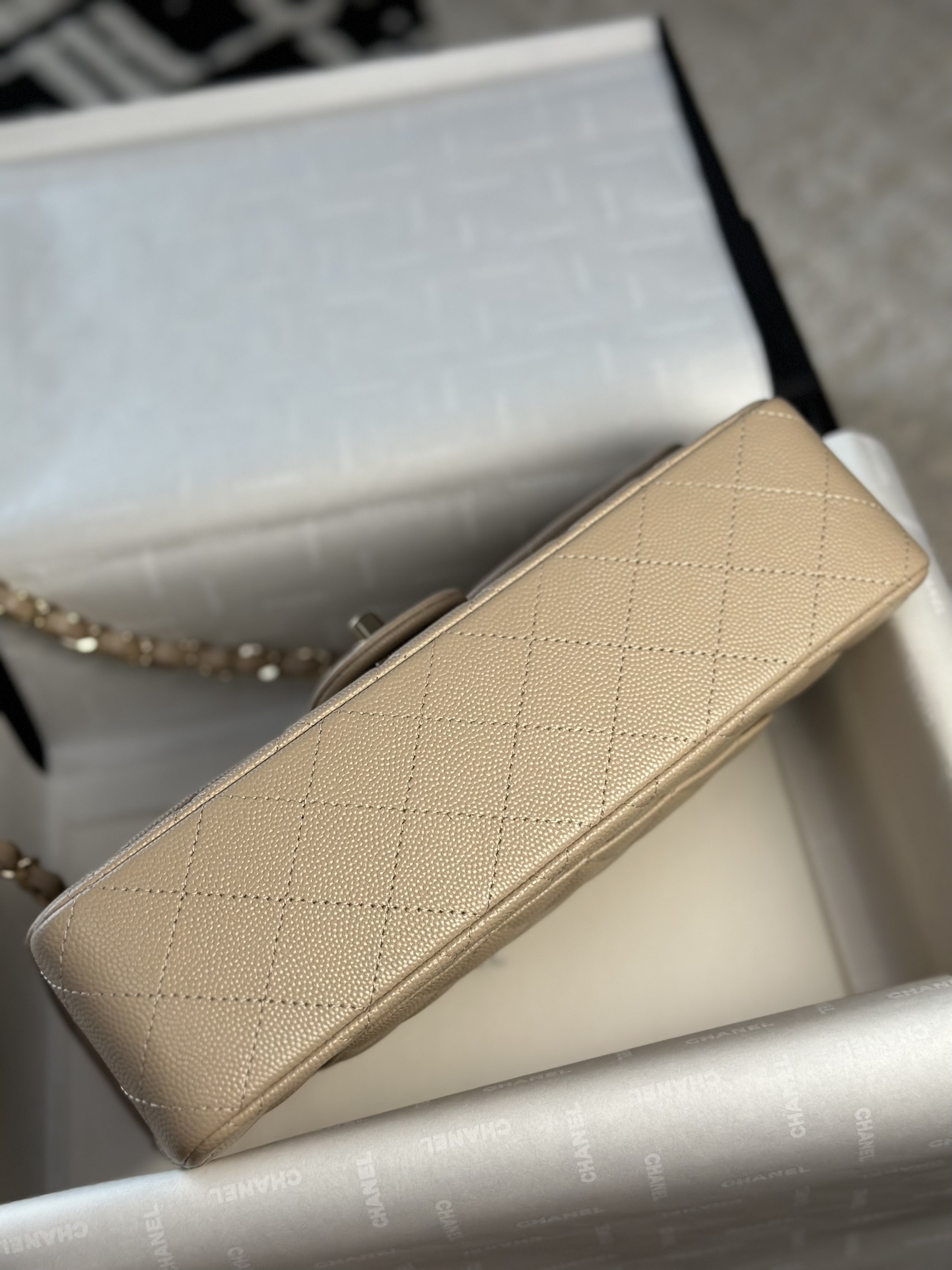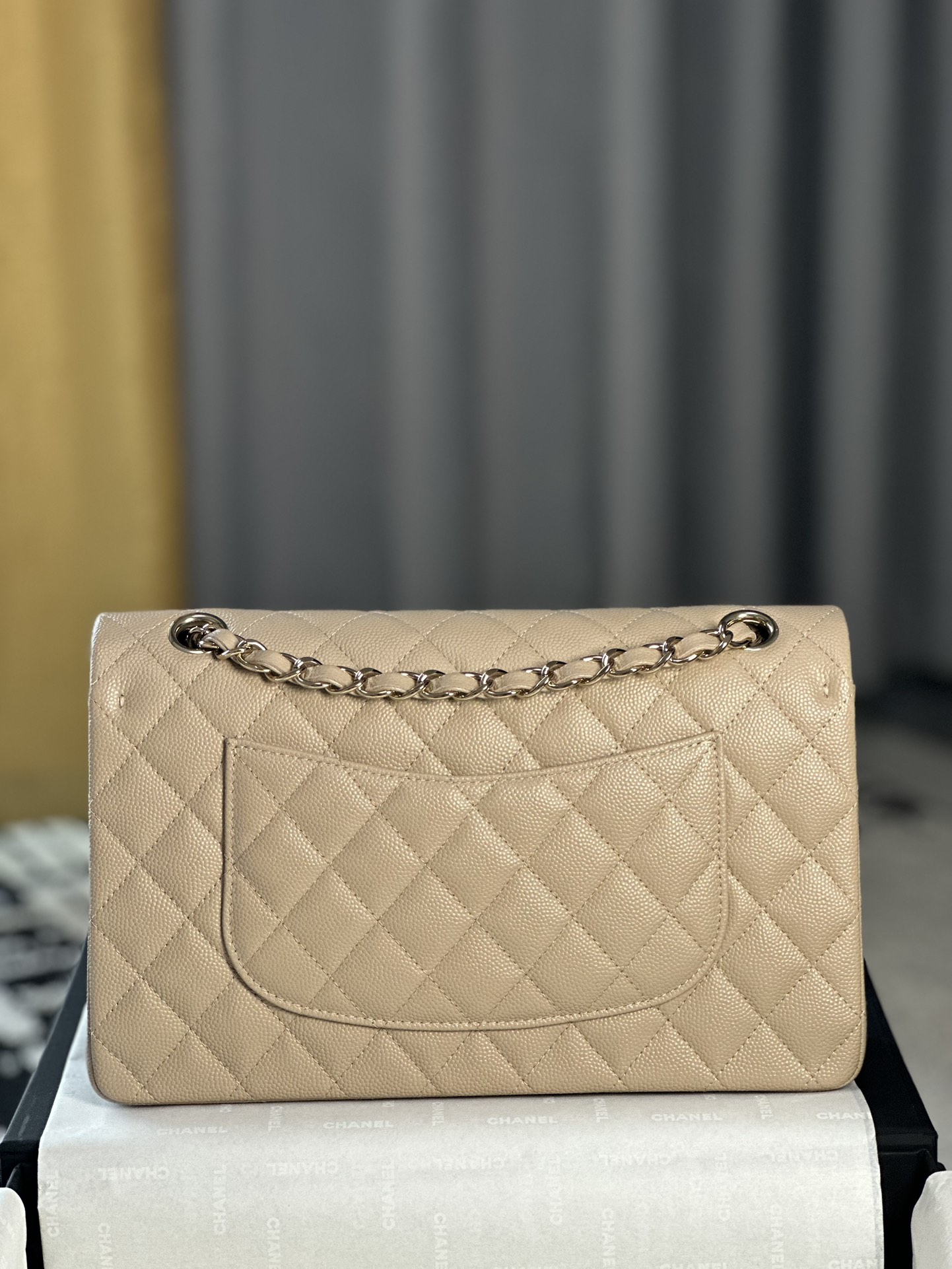 这款包包是AAAAA 1:1 质量 (非常棒). 使用了和原版一模一样的材料. 商标部分也保持了和香奈儿/Chanel一样. 图片拍摄是实物包包拍摄, 您所收到的实物保证和我们图片一模一样.