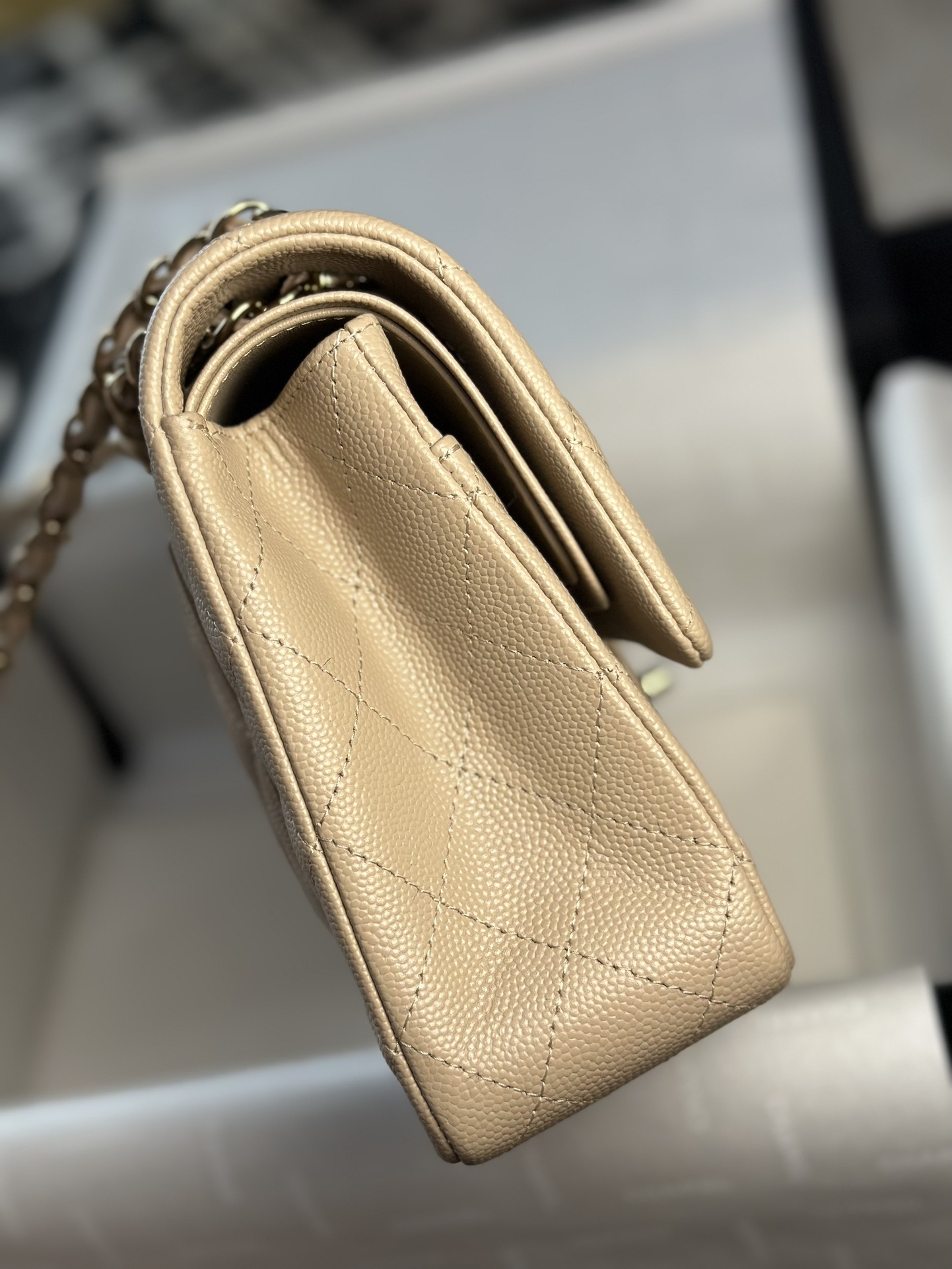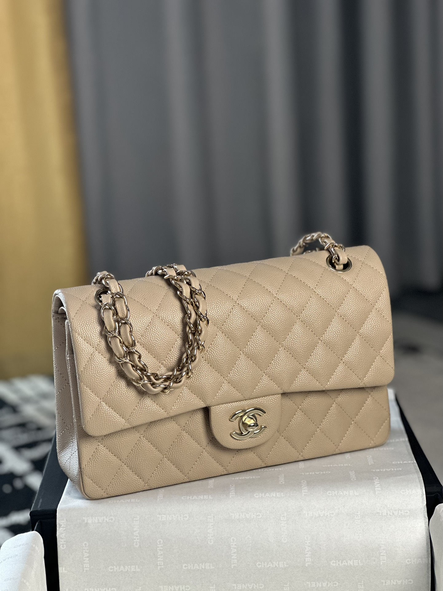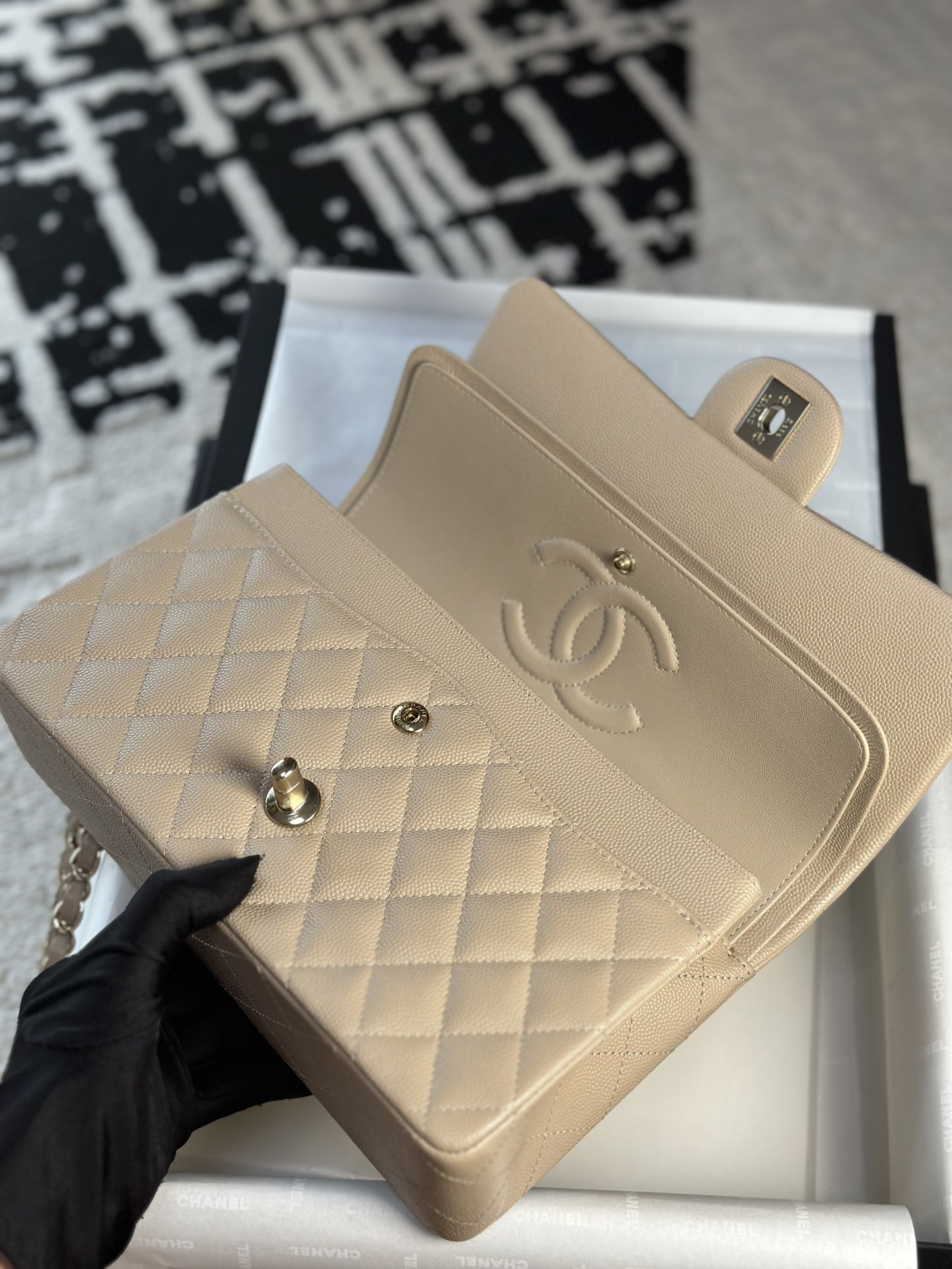这款包包是AAAAA 1:1 质量 (非常棒). 使用了和原版一模一样的材料. 商标部分也保持了和香奈儿/Chanel一样. 图片拍摄是实物包包拍摄, 您所收到的实物保证和我们图片一模一样.