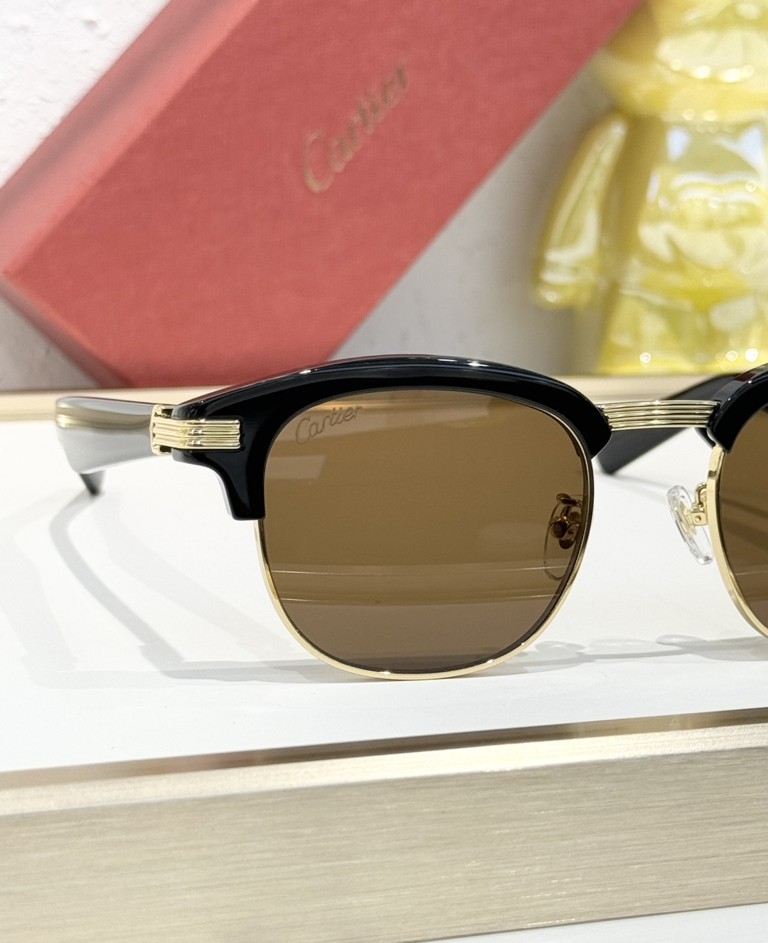 这款太阳眼镜是AAAAA 1:1 质量 (非常棒). 使用了和原版一模一样的材料. 商标部分也保持了和卡地亚/Cartier一样. 图片拍摄是实物太阳眼镜拍摄, 您所收到的实物保证和我们图片一模一样.