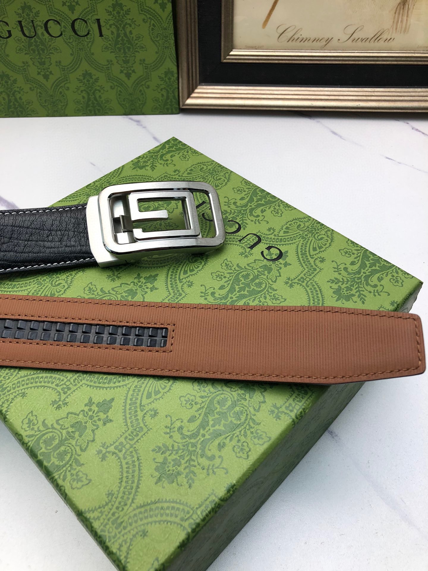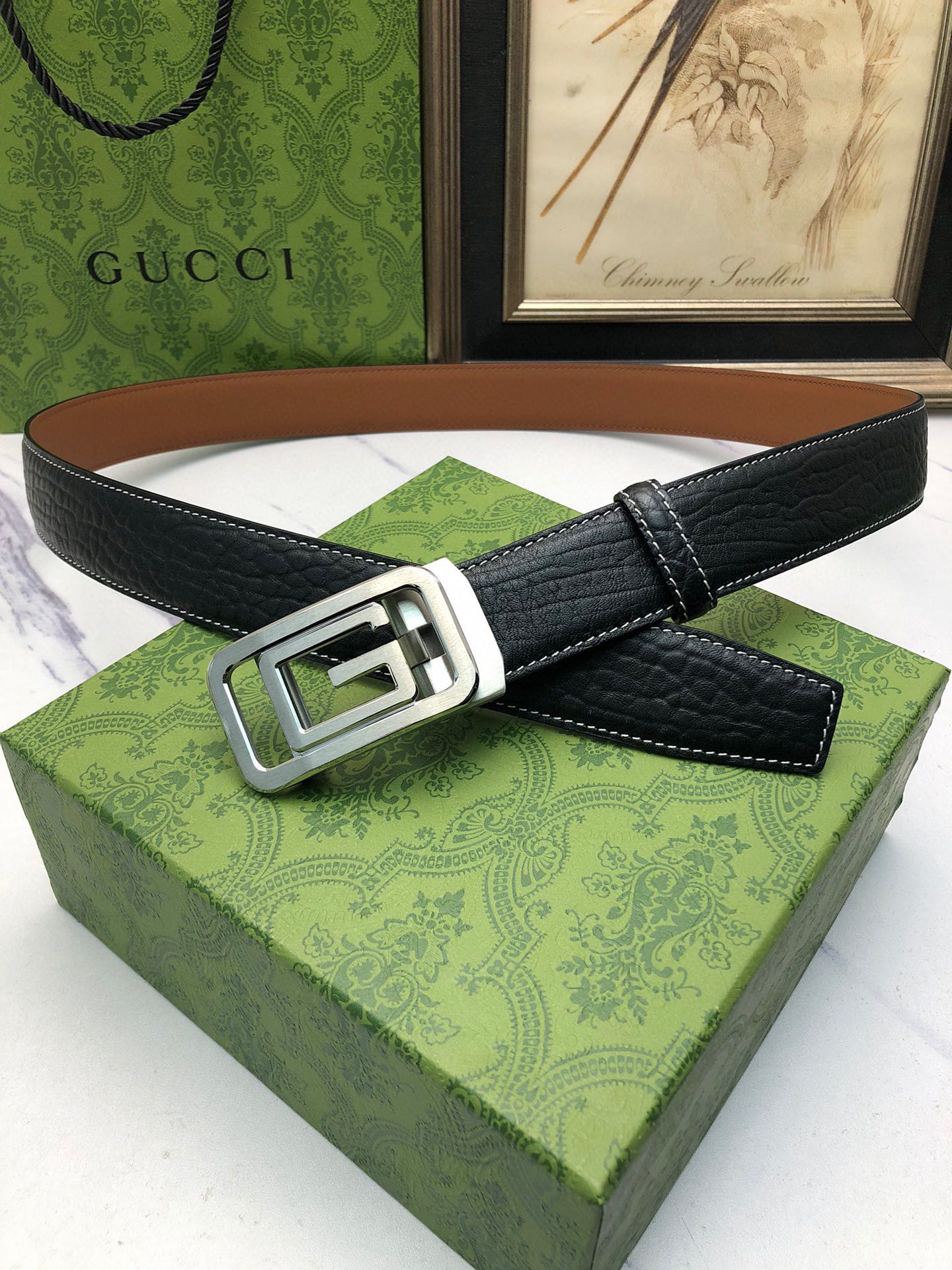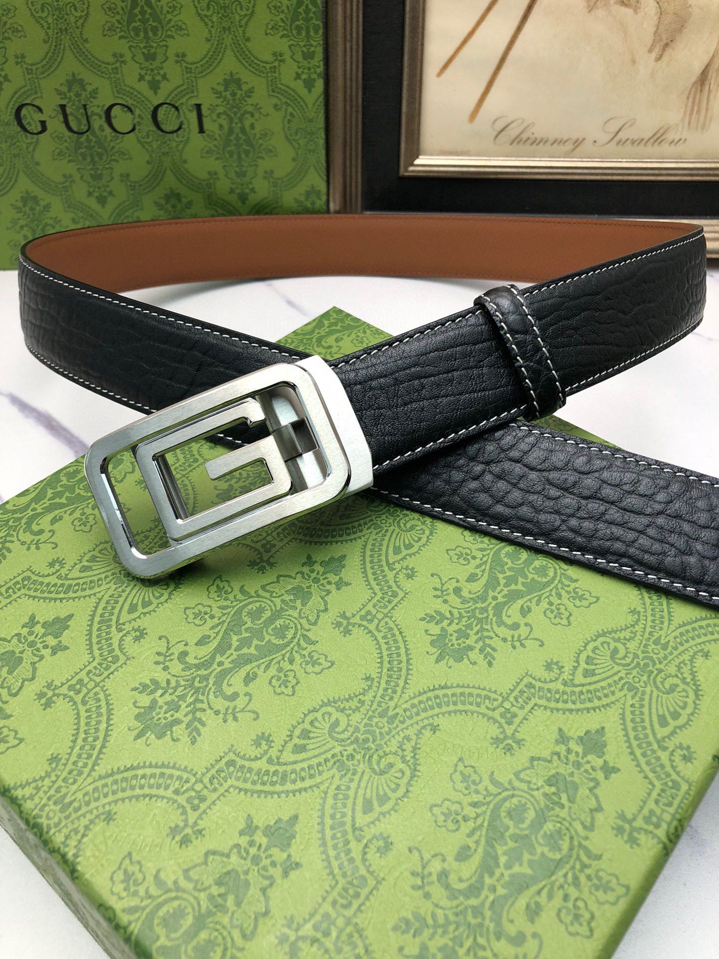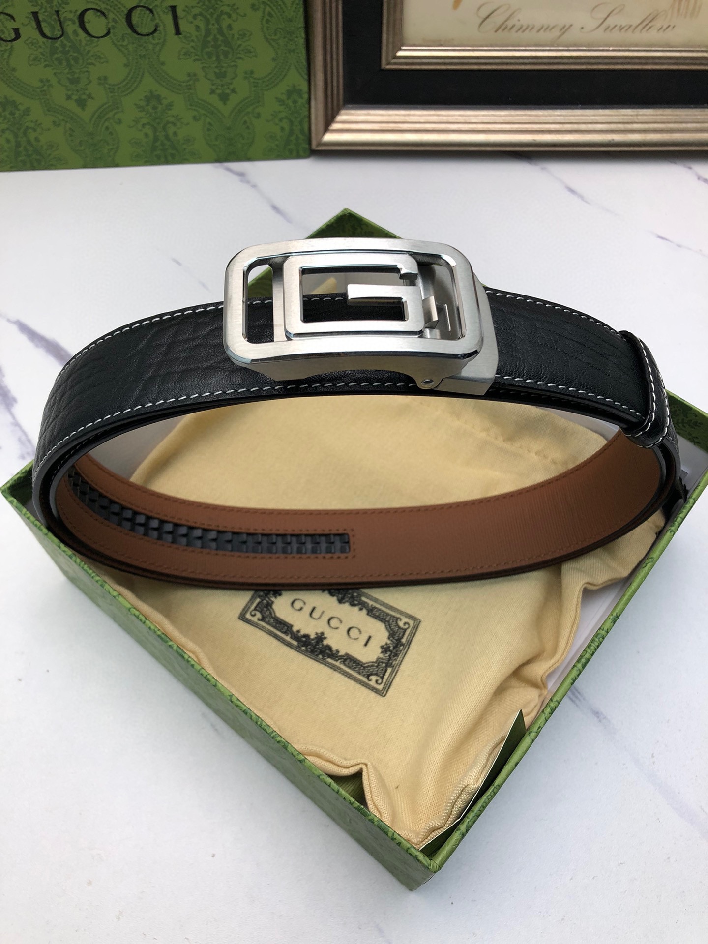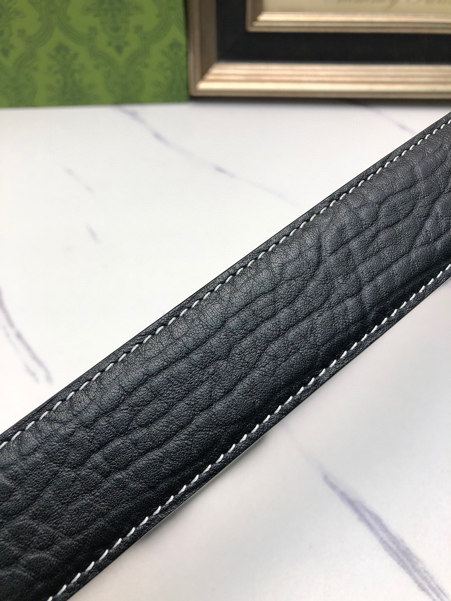 这款皮带是AAAAA 1:1 质量 (非常棒). 使用了和原版一模一样的材料. 商标部分也保持了和古奇/Gucci一样. 图片拍摄是实物皮带拍摄, 您所收到的实物保证和我们图片一模一样.