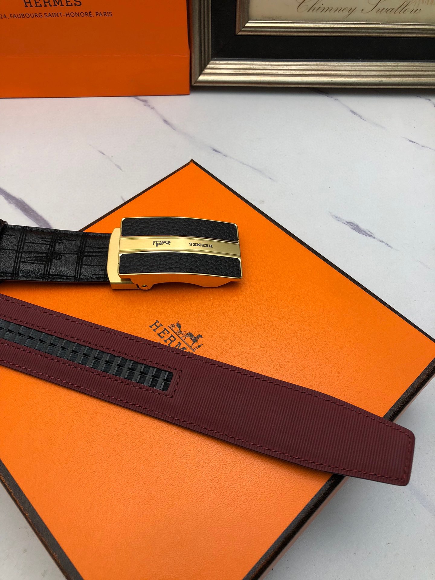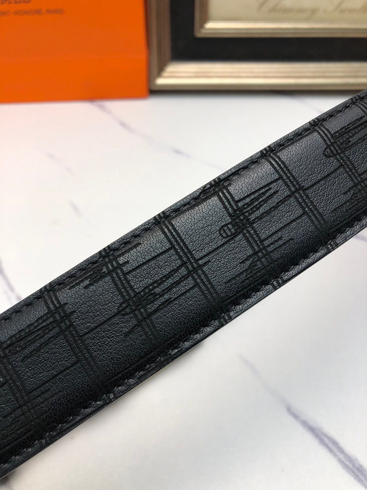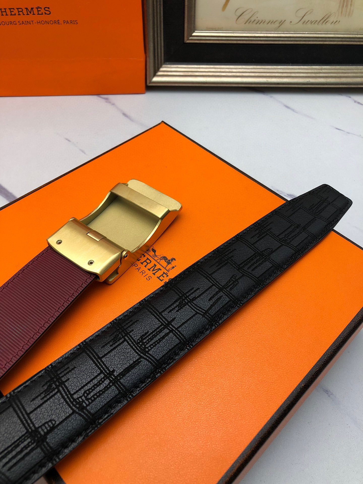 这款皮带是AAAAA 1:1 质量 (非常棒). 使用了和原版一模一样的材料. 商标部分也保持了和爱马仕/Hermes一样. 图片拍摄是实物皮带拍摄, 您所收到的实物保证和我们图片一模一样.
