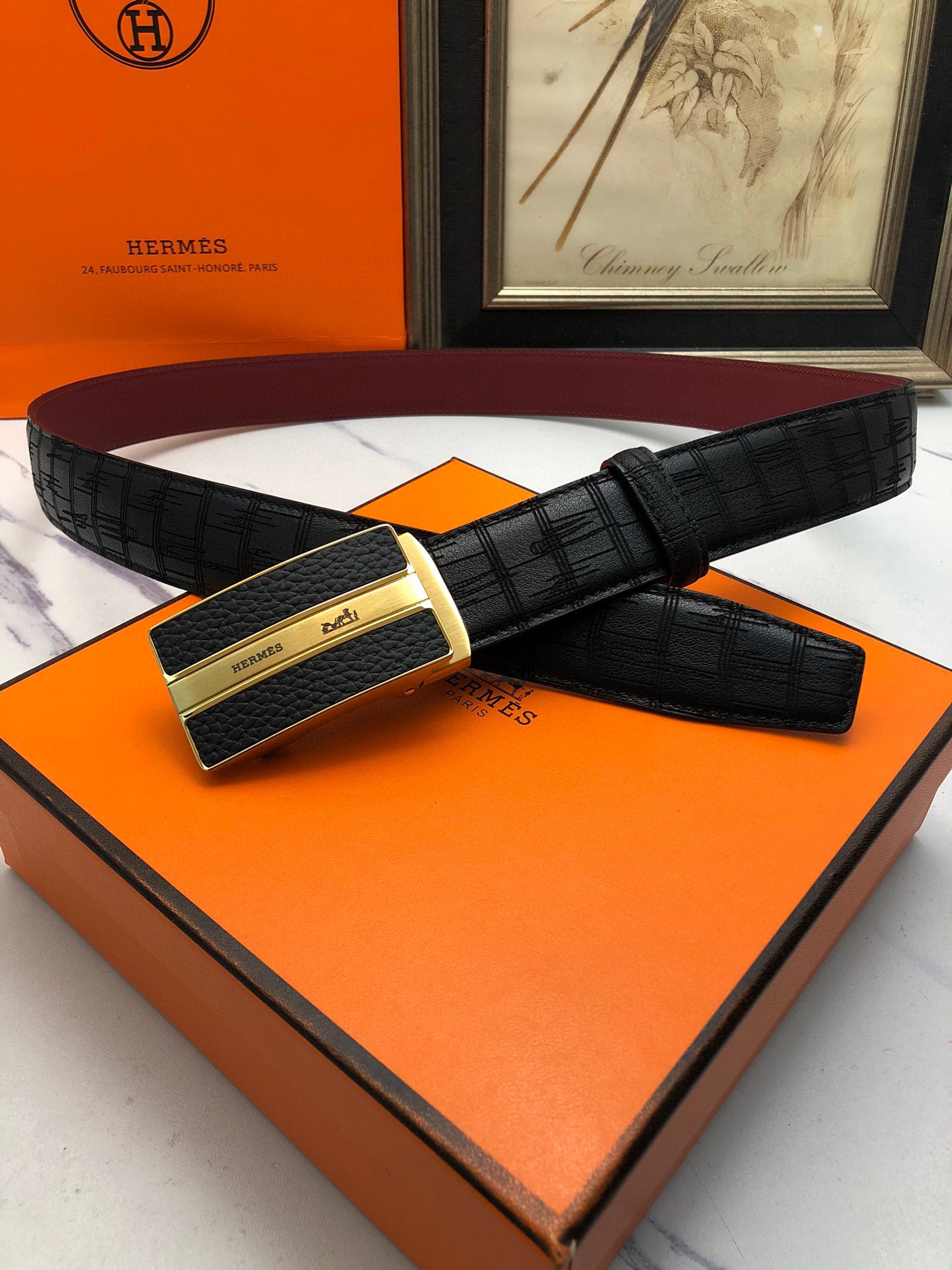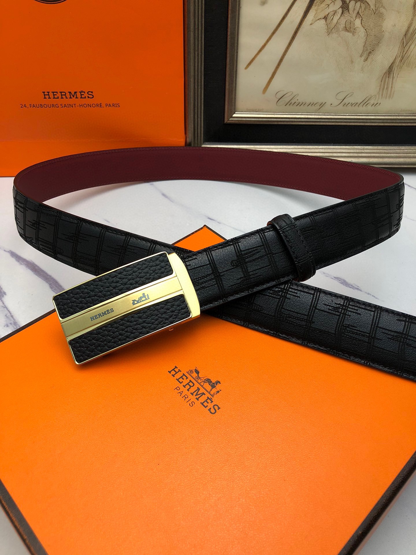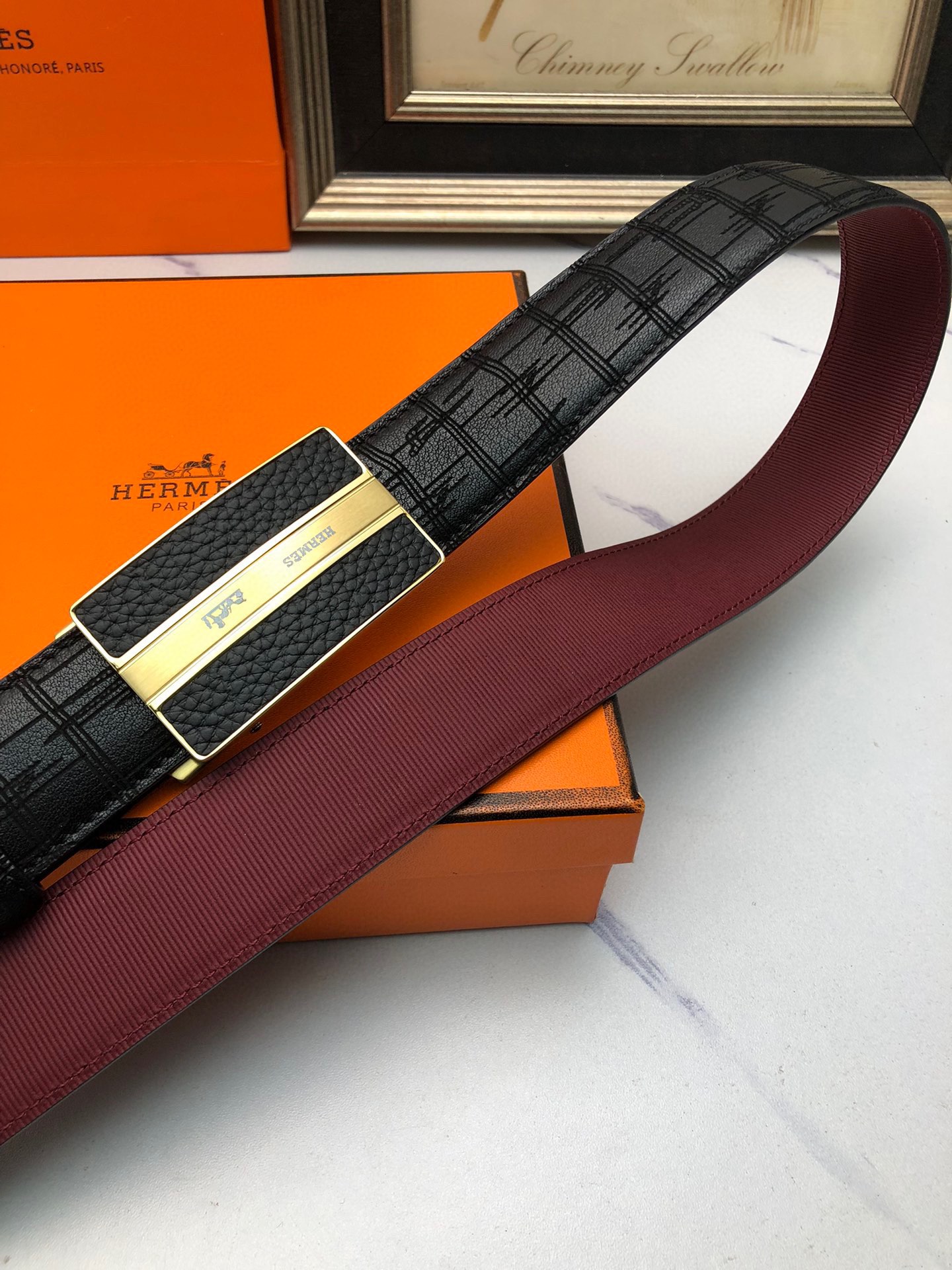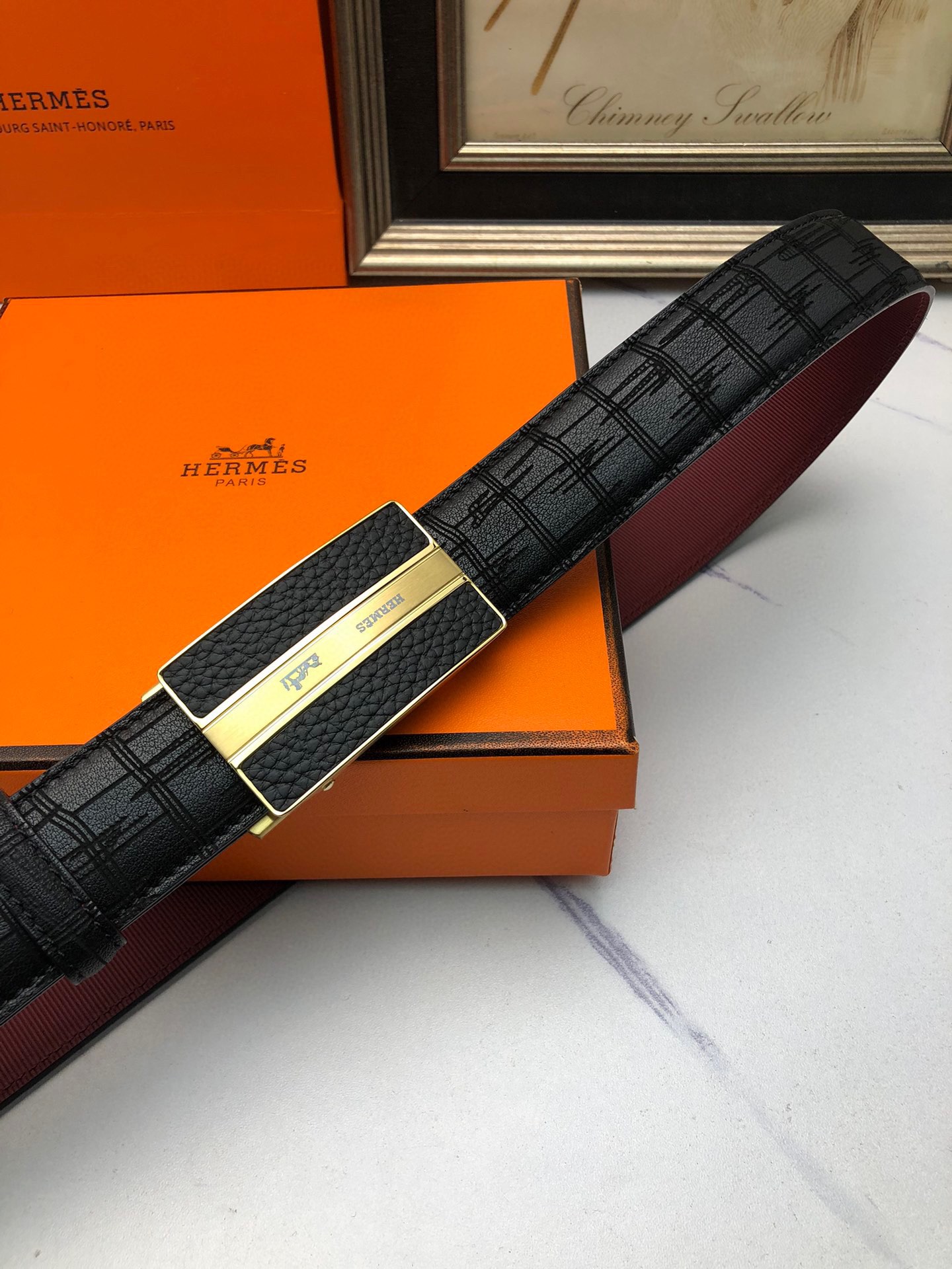 这款皮带是AAAAA 1:1 质量 (非常棒). 使用了和原版一模一样的材料. 商标部分也保持了和爱马仕/Hermes一样. 图片拍摄是实物皮带拍摄, 您所收到的实物保证和我们图片一模一样.