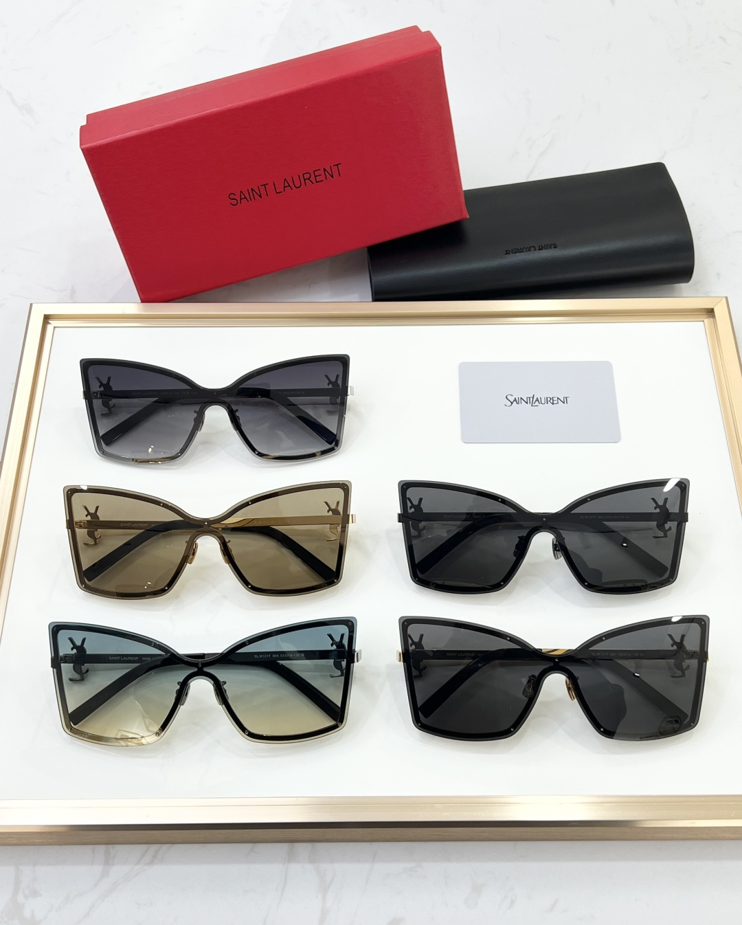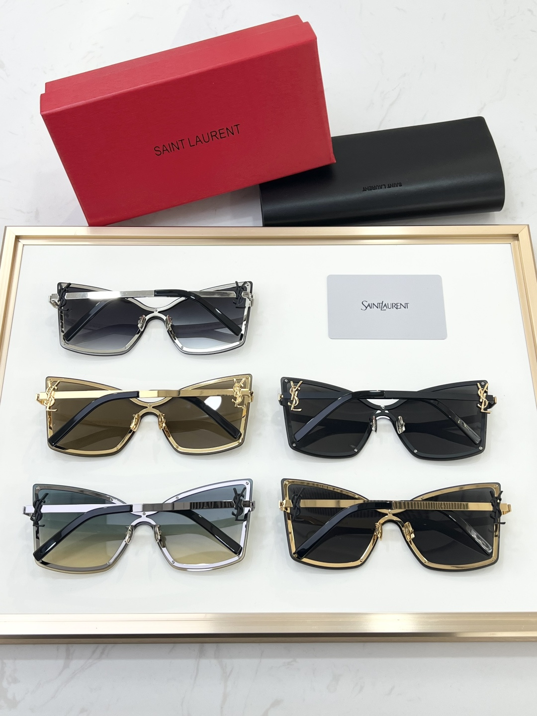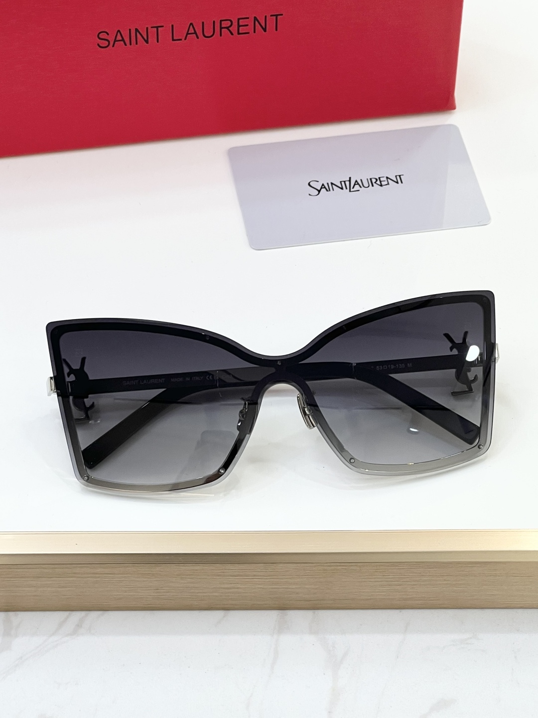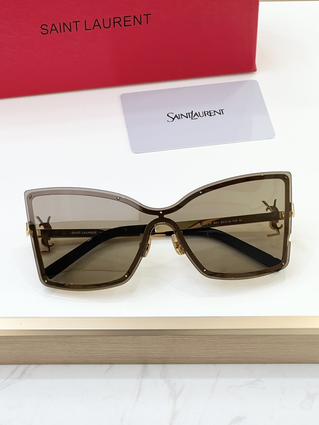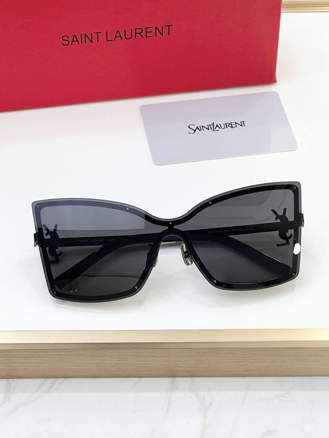 这款太阳眼镜是AAAAA 1:1 质量 (非常棒). 使用了和原版一模一样的材料. 商标部分也保持了和圣罗兰/Saint Laurent一样. 图片拍摄是实物太阳眼镜拍摄, 您所收到的实物保证和我们图片一模一样.