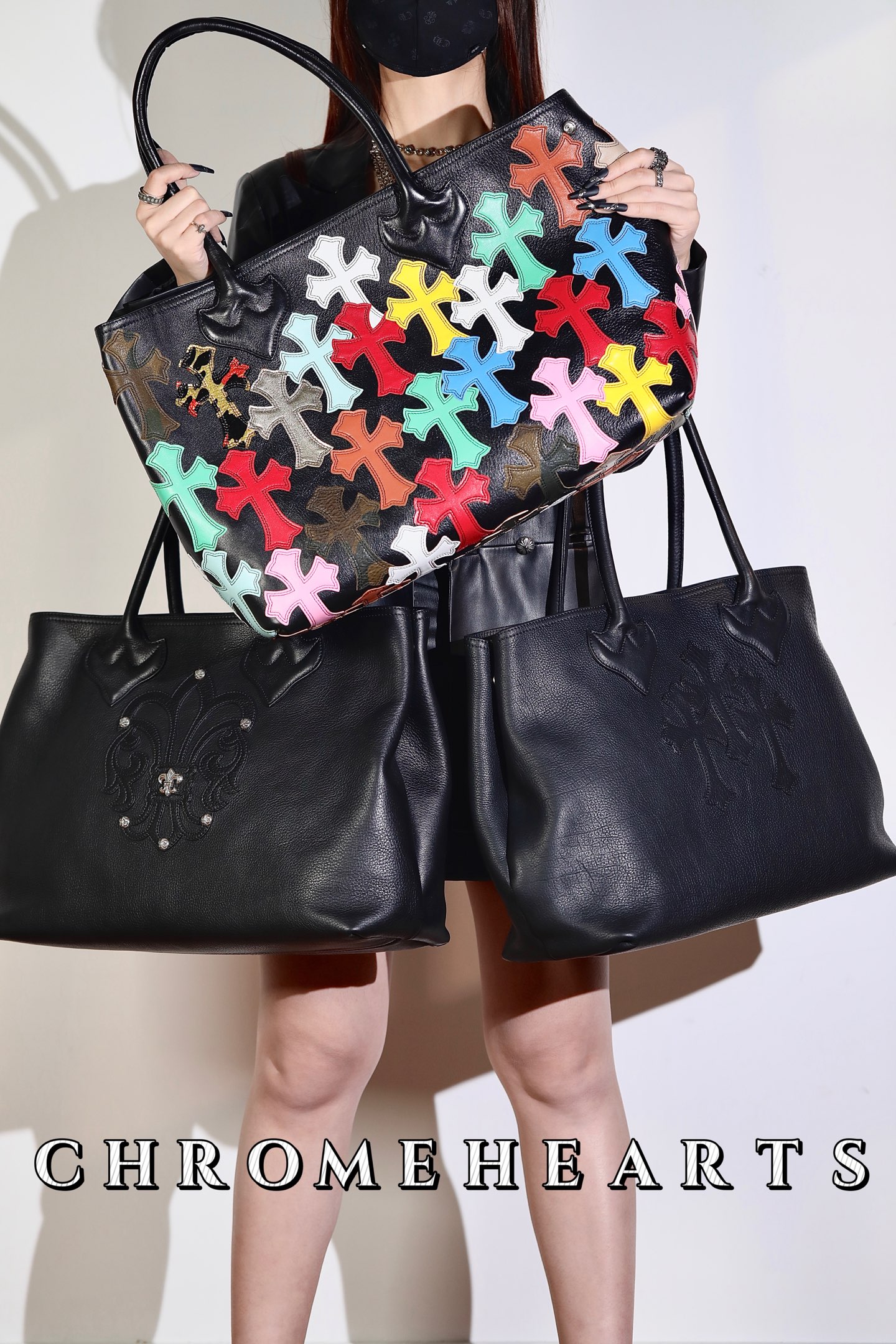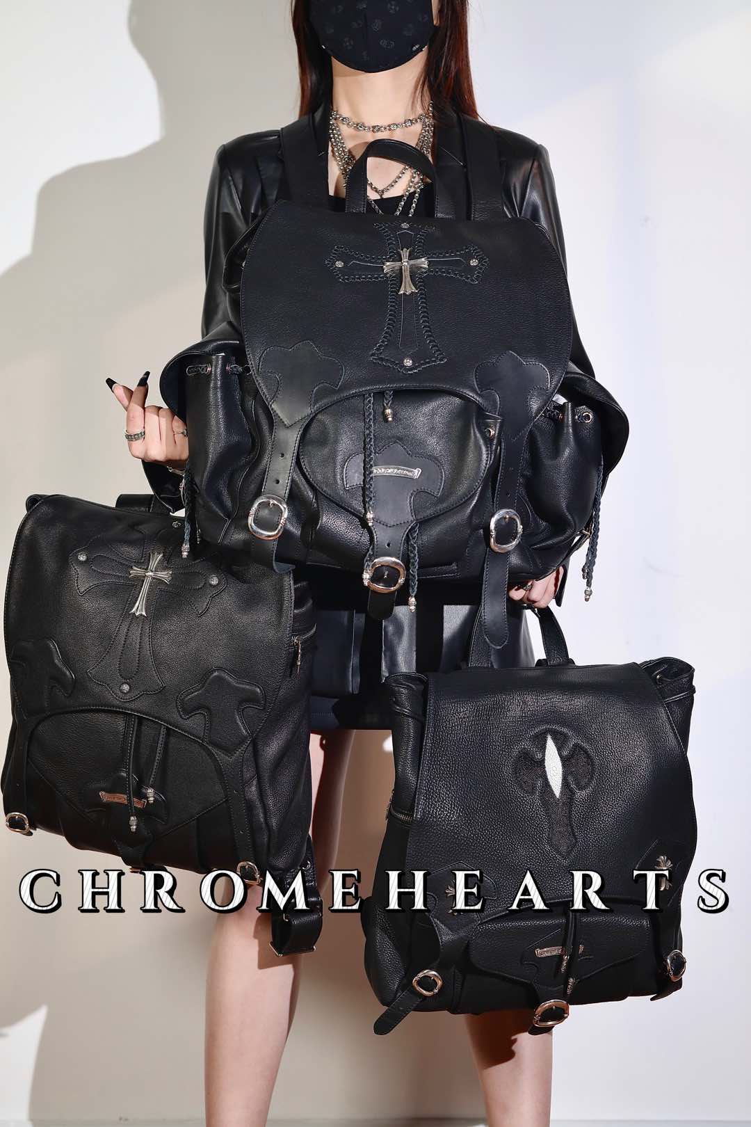 这款包包是AAAAA 1:1 质量 (非常棒). 使用了和原版一模一样的材料. 商标部分也保持了和克罗心/Chrome Hearts一样. 图片拍摄是实物包包拍摄, 您所收到的实物保证和我们图片一模一样.