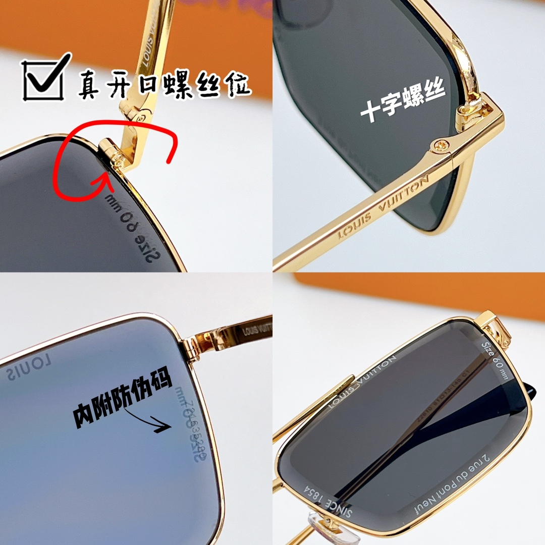 这款太阳眼镜是AAAAA 1:1 质量 (非常棒). 使用了和原版一模一样的材料. 商标部分也保持了和路易威登/Louis Vuitton一样. 图片拍摄是实物太阳眼镜拍摄, 您所收到的实物保证和我们图片一模一样.