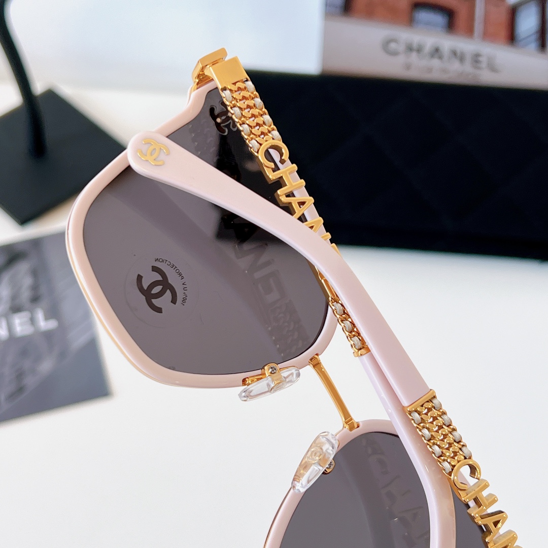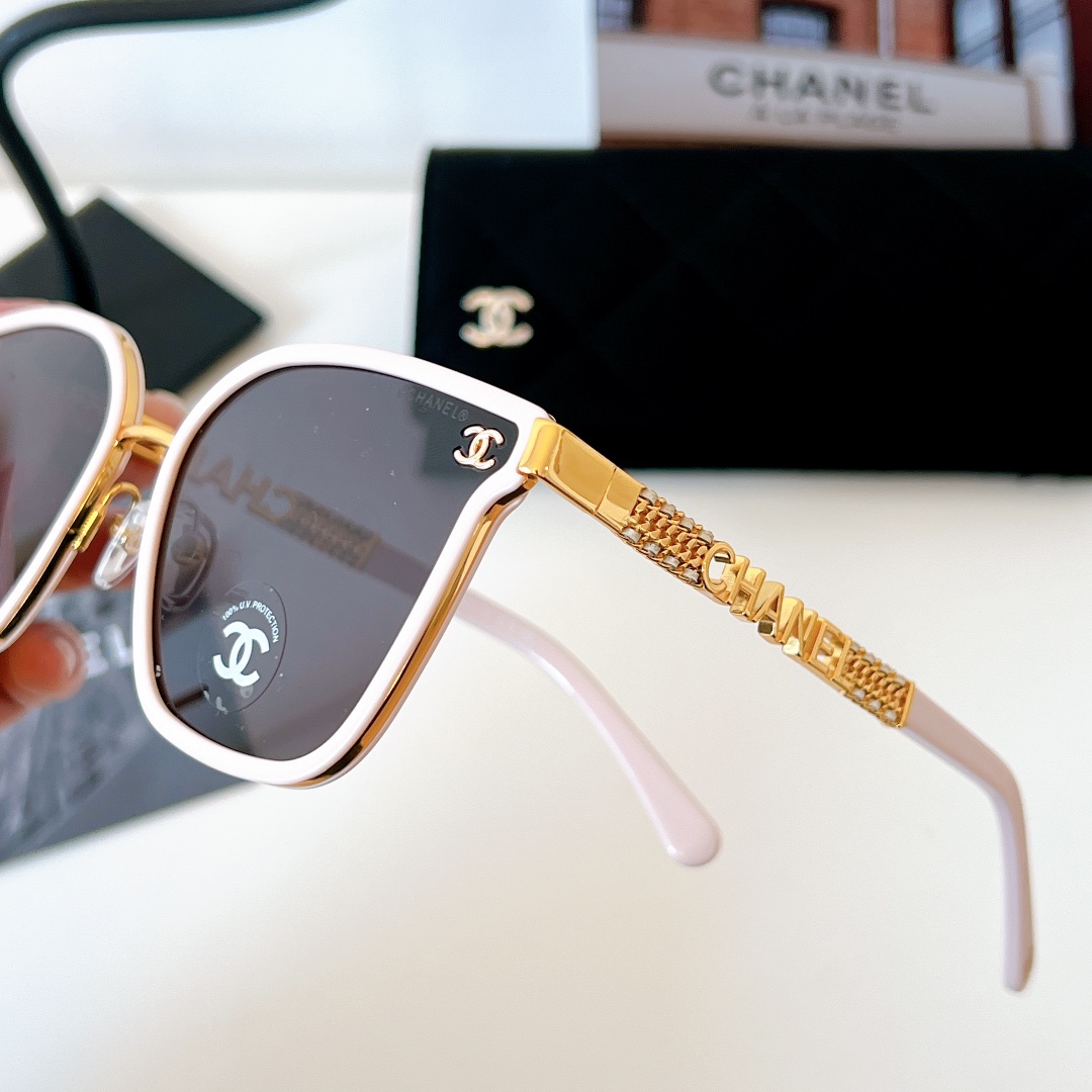 这款太阳眼镜是AAAAA 1:1 质量 (非常棒). 使用了和原版一模一样的材料. 商标部分也保持了和香奈儿/Chanel一样. 图片拍摄是实物太阳眼镜拍摄, 您所收到的实物保证和我们图片一模一样.