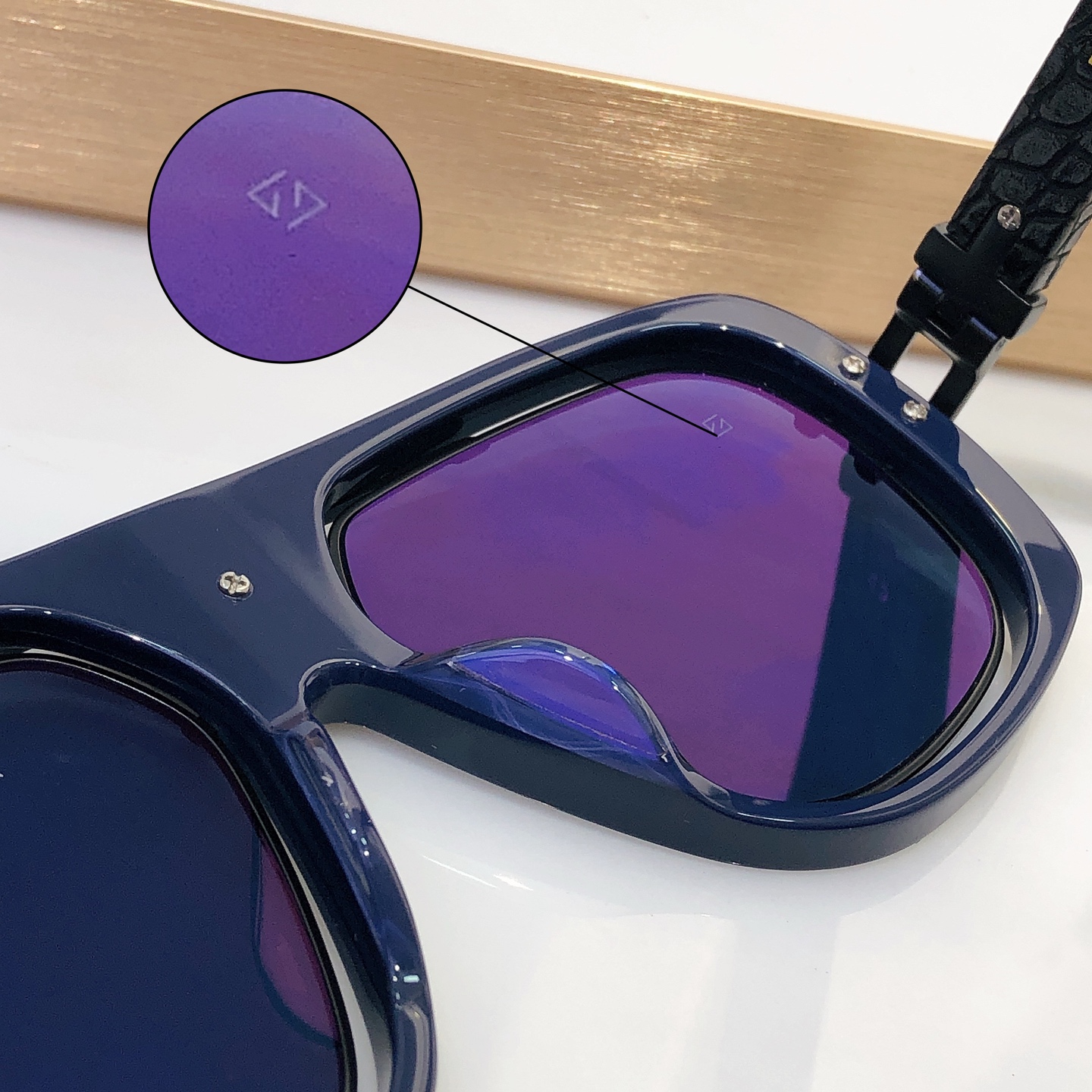 这款太阳眼镜是AAAAA 1:1 质量 (非常棒). 使用了和原版一模一样的材料. 商标部分也保持了和一样. 图片拍摄是实物太阳眼镜拍摄, 您所收到的实物保证和我们图片一模一样.