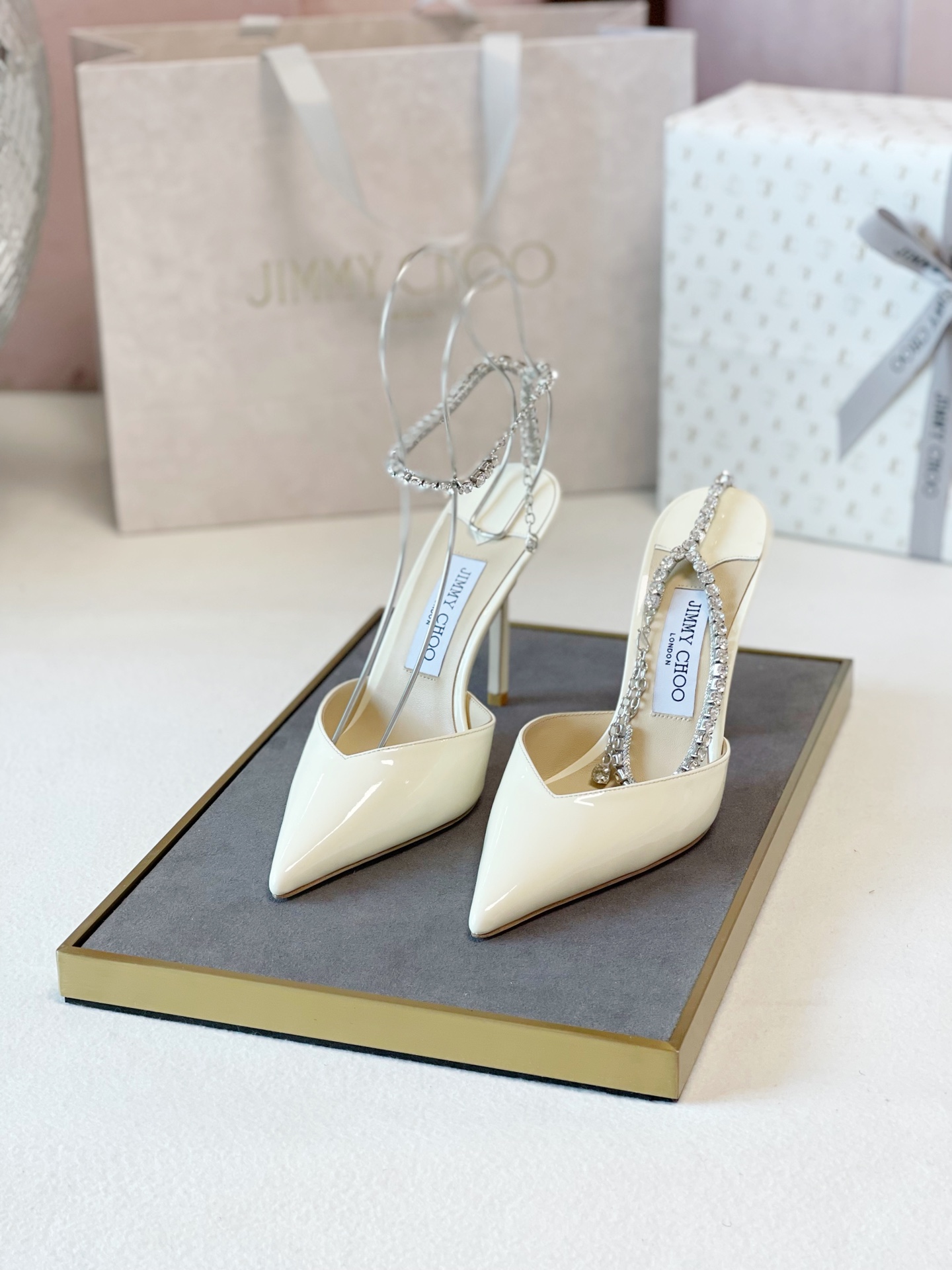 这款鞋子是AAAAA 1:1 质量 (非常棒). 使用了和原版一模一样的材料. 商标部分也保持了和吉米乔/JIMMY CHOO一样. 图片拍摄是实物鞋子拍摄, 您所收到的实物保证和我们图片一模一样.