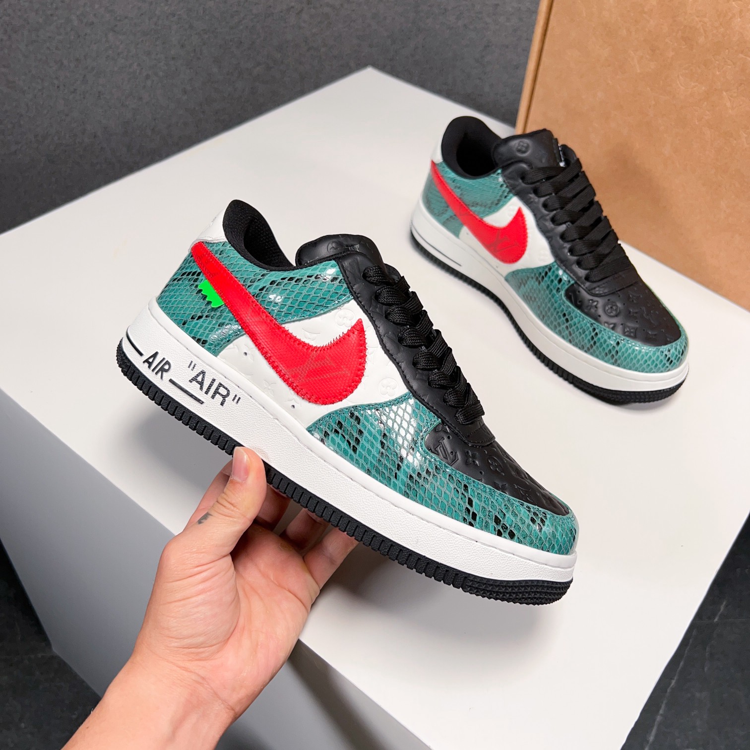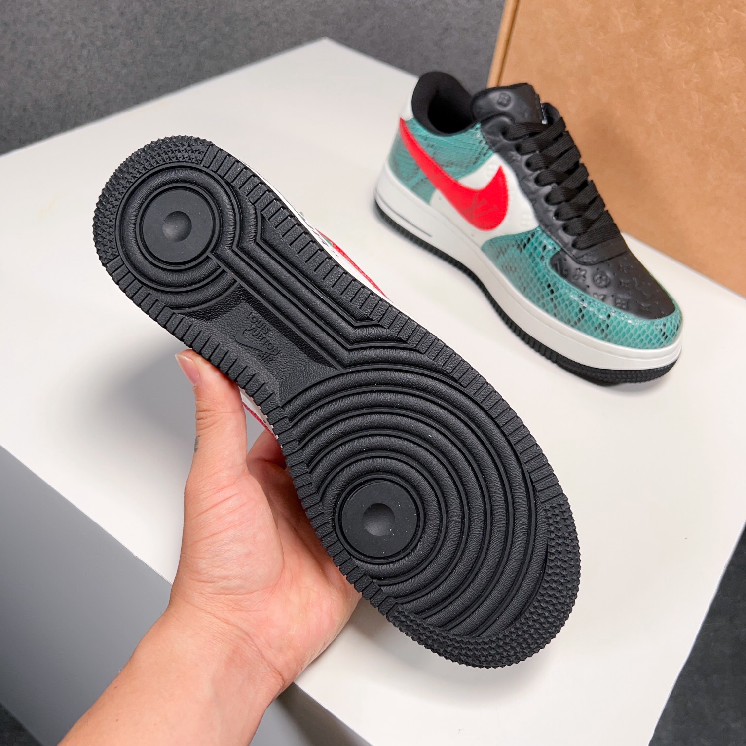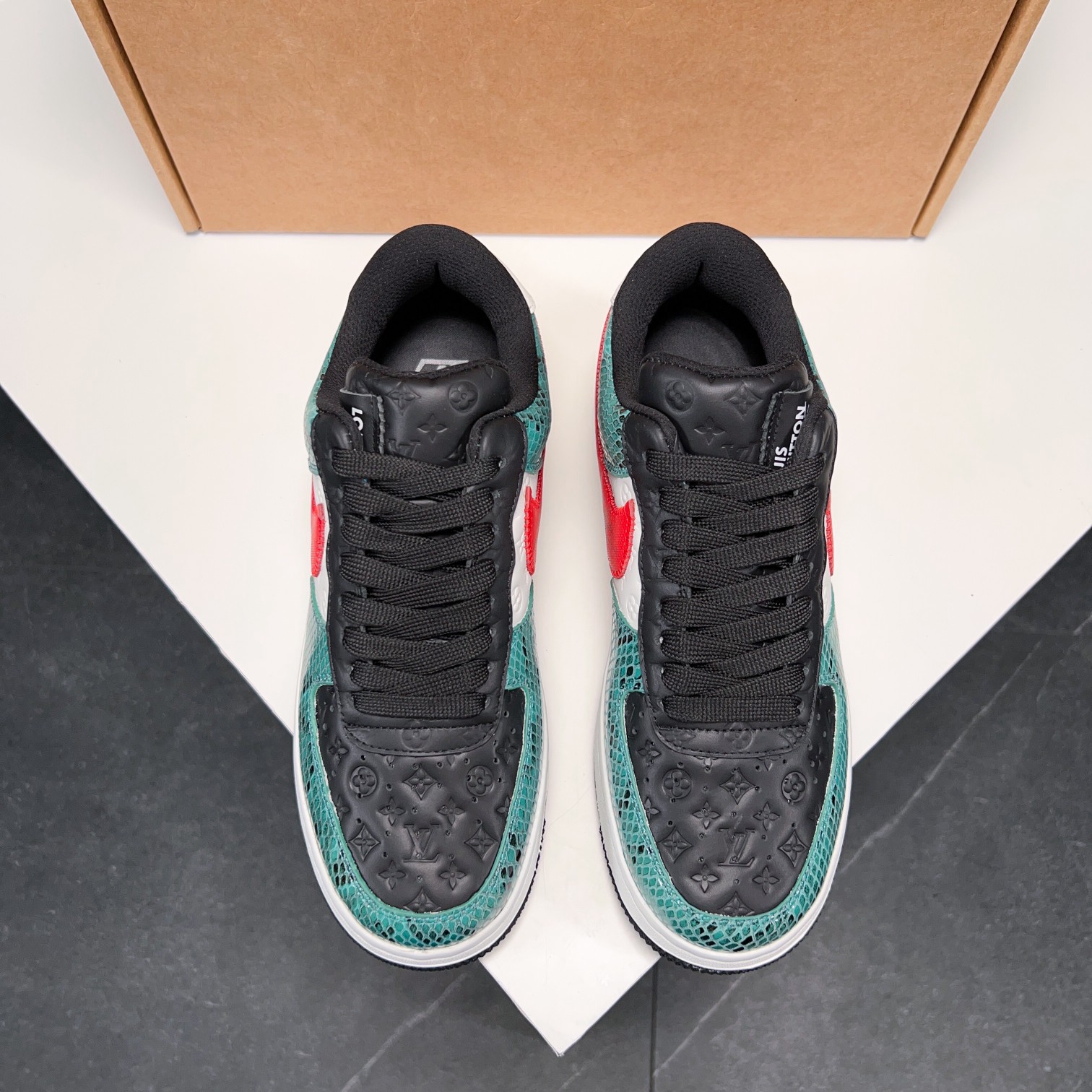 这款鞋子是AAAAA 1:1 质量 (非常棒). 使用了和原版一模一样的材料. 商标部分也保持了和路易威登/Louis Vuitton一样. 图片拍摄是实物鞋子拍摄, 您所收到的实物保证和我们图片一模一样.