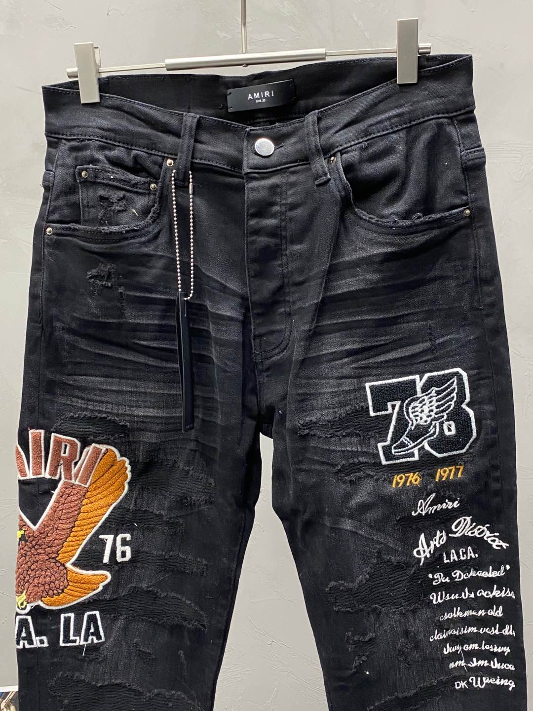这款衣服是AAAAA 1:1 质量 (非常棒). 使用了和原版一模一样的材料. 商标部分也保持了和AMIRI一样. 图片拍摄是实物衣服拍摄, 您所收到的实物保证和我们图片一模一样.