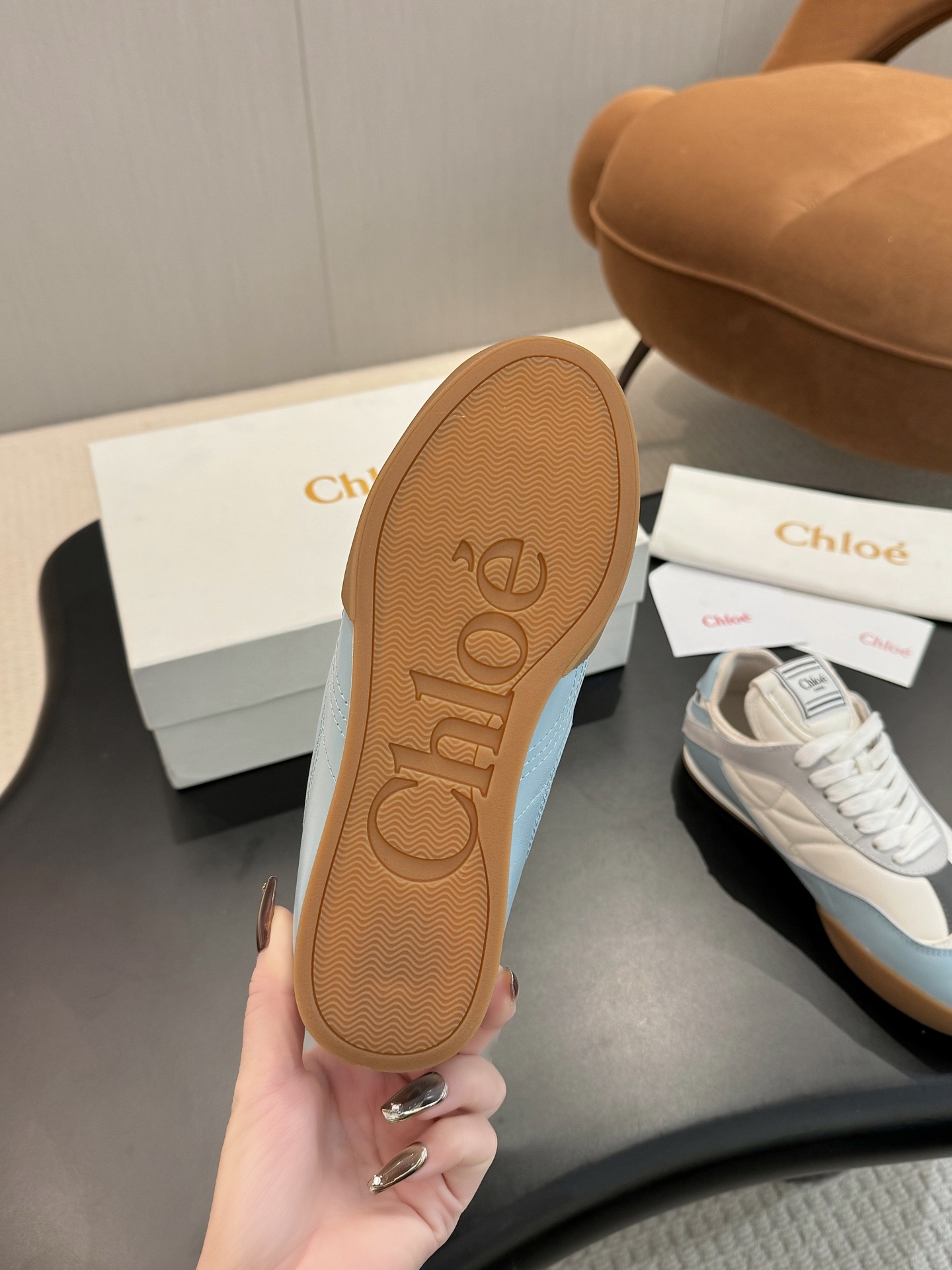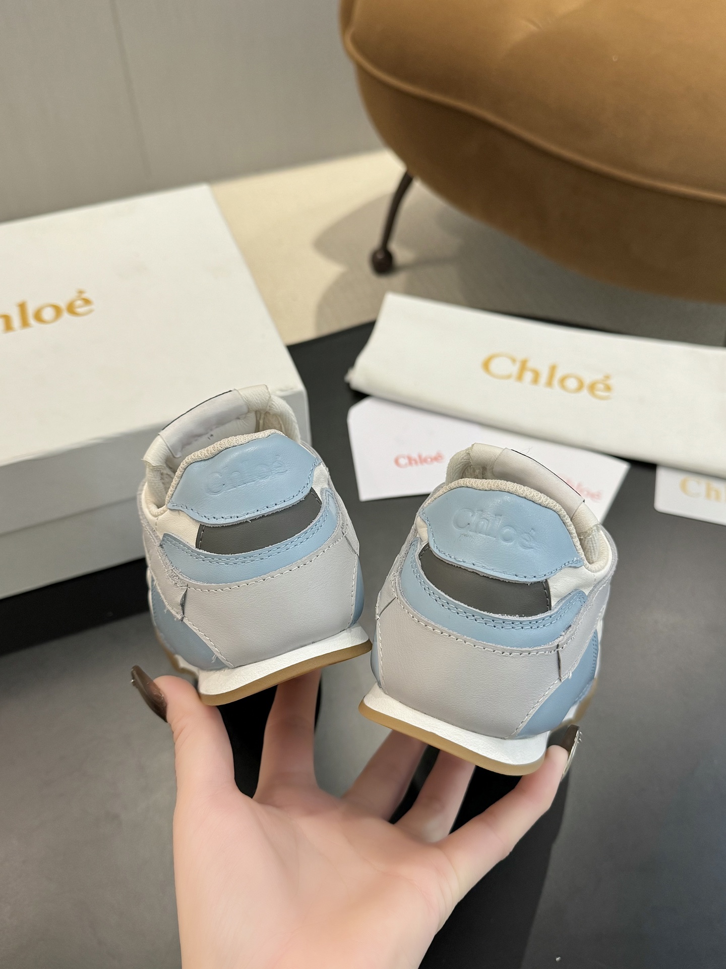 这款鞋子是AAAAA 1:1 质量 (非常棒). 使用了和原版一模一样的材料. 商标部分也保持了和克洛伊/Chloe一样. 图片拍摄是实物鞋子拍摄, 您所收到的实物保证和我们图片一模一样.