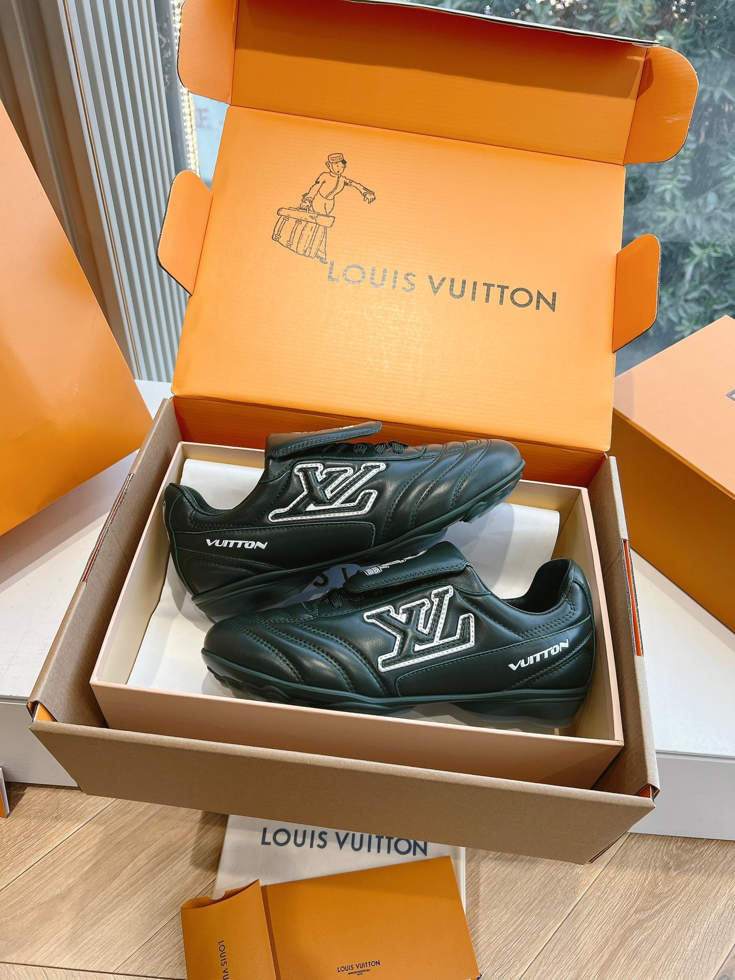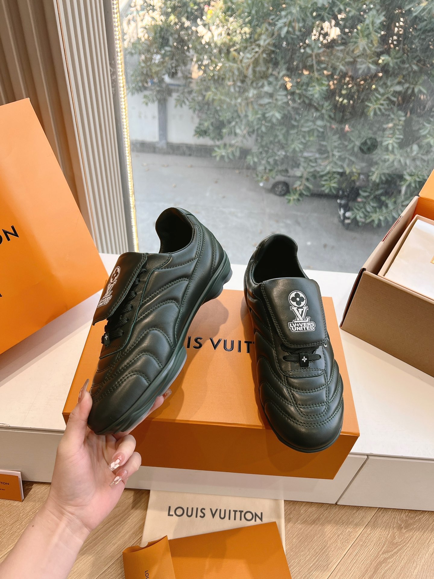 这款鞋子是AAAAA 1:1 质量 (非常棒). 使用了和原版一模一样的材料. 商标部分也保持了和路易威登/Louis Vuitton一样. 图片拍摄是实物鞋子拍摄, 您所收到的实物保证和我们图片一模一样.