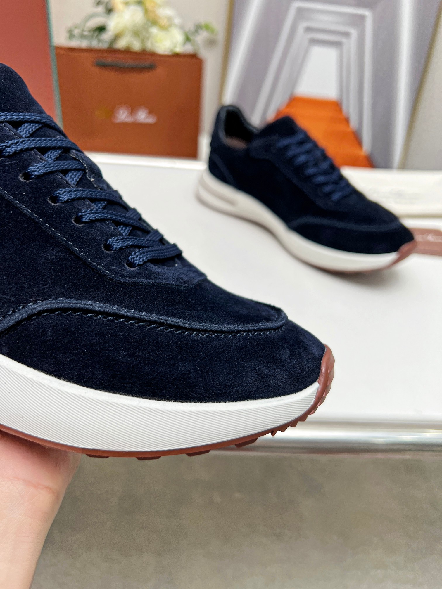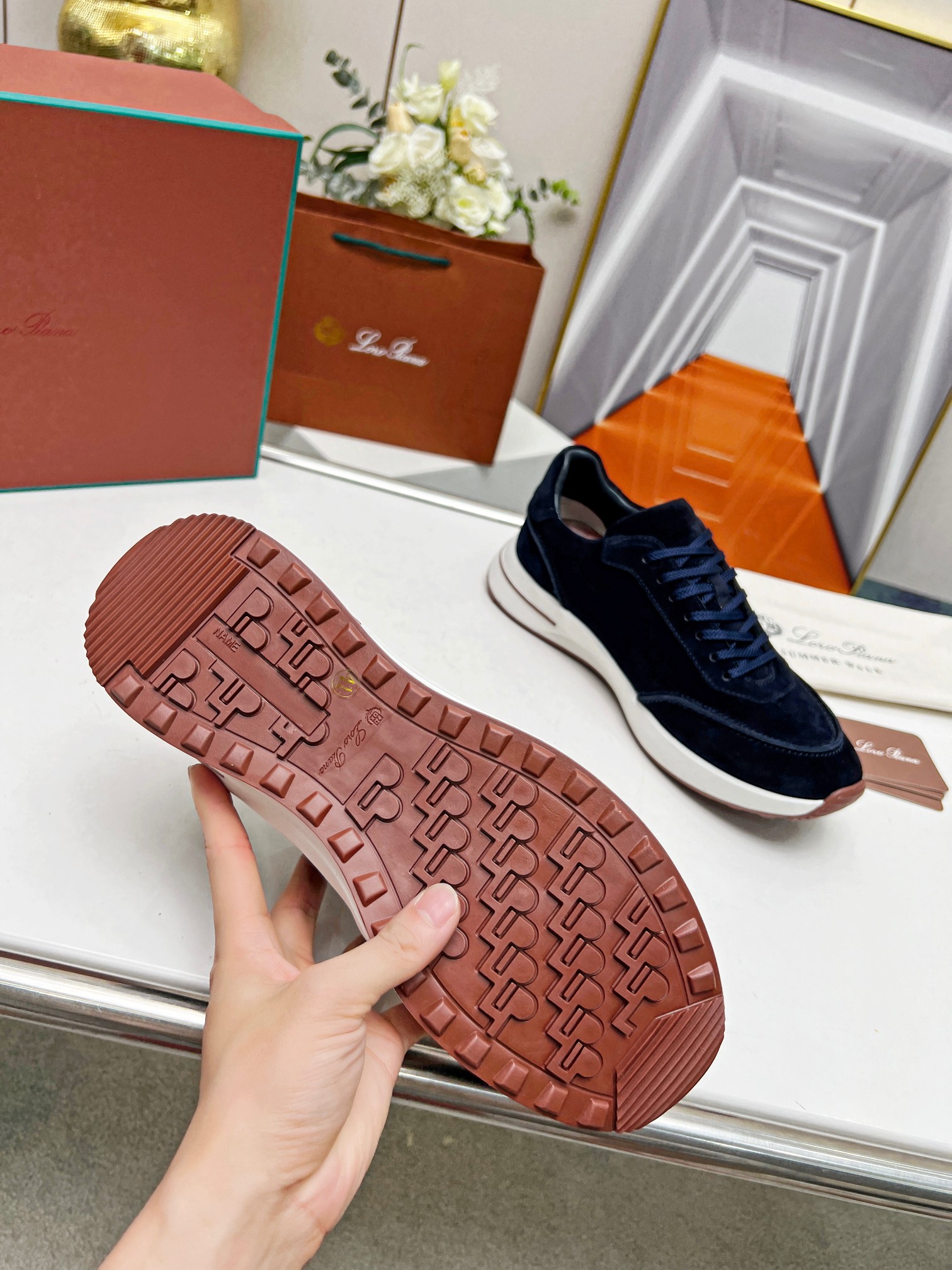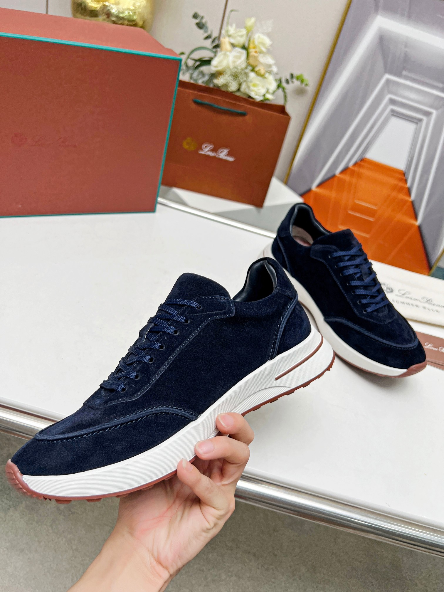 这款鞋子是AAAAA 1:1 质量 (非常棒). 使用了和原版一模一样的材料. 商标部分也保持了和洛罗皮亚纳/Loro Piana一样. 图片拍摄是实物鞋子拍摄, 您所收到的实物保证和我们图片一模一样.