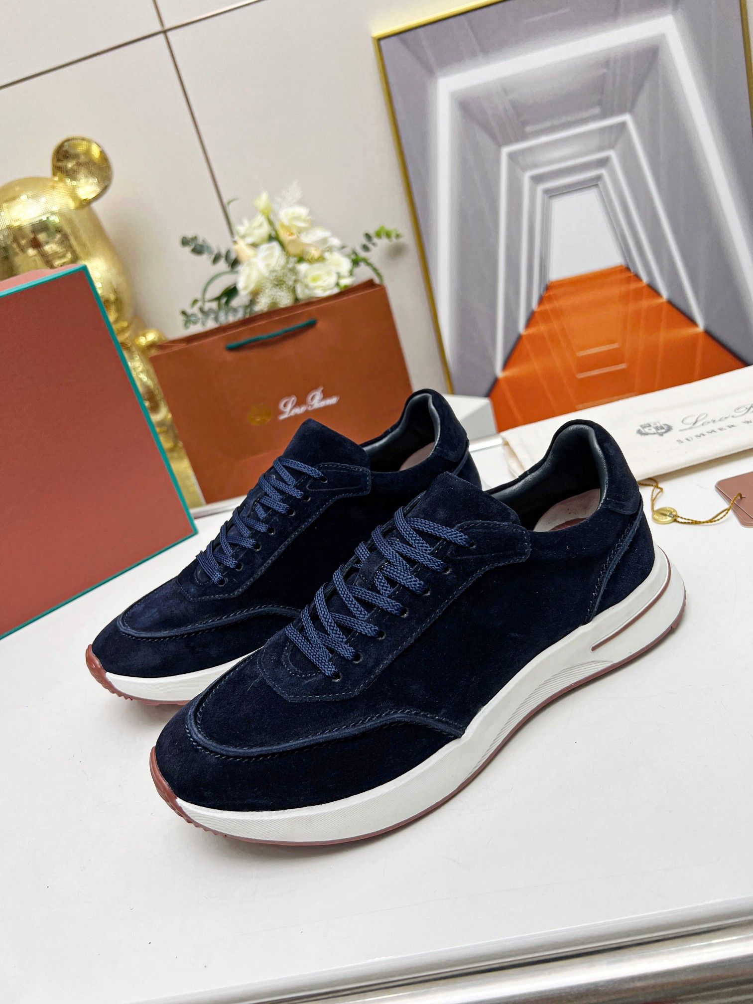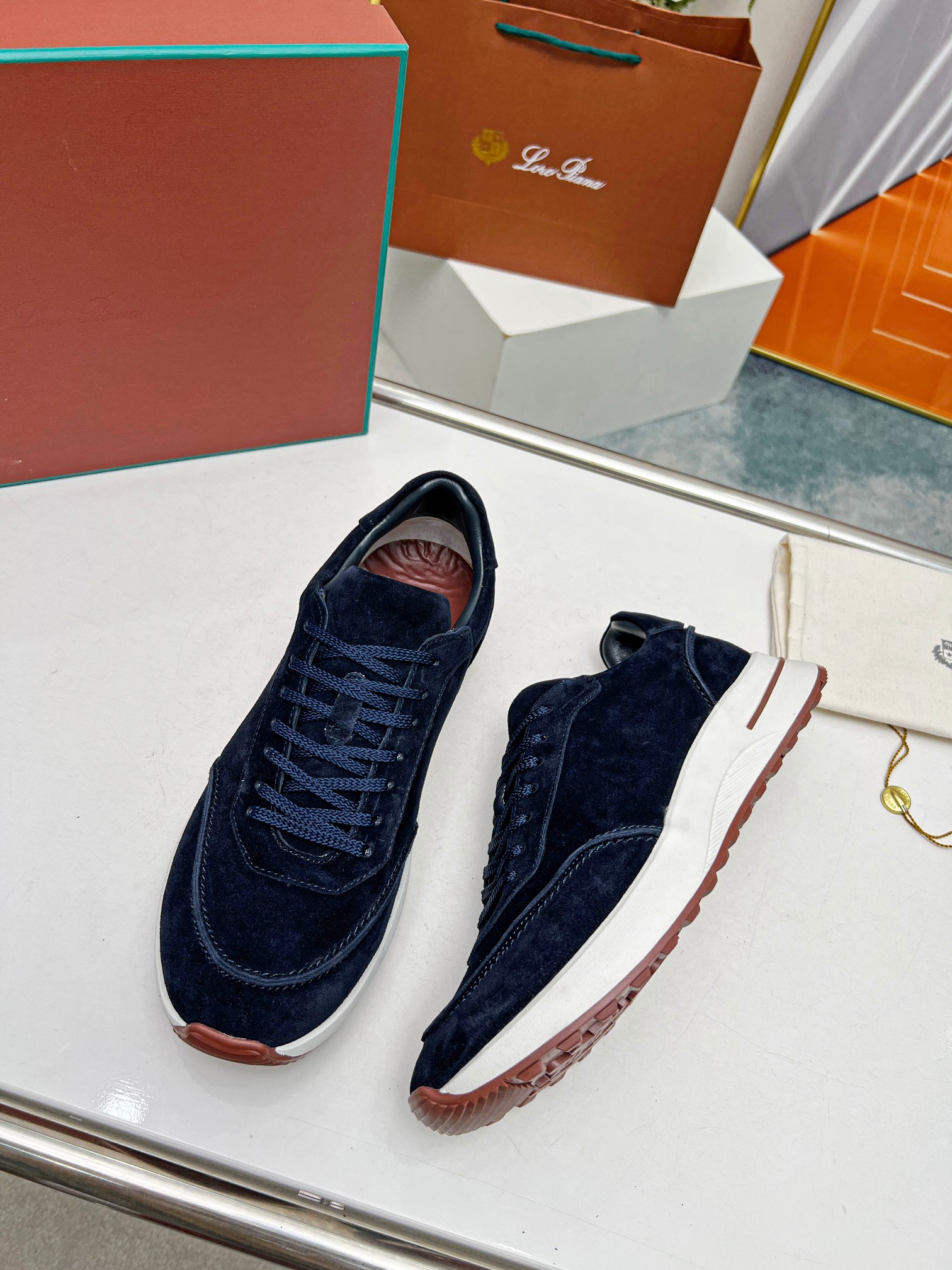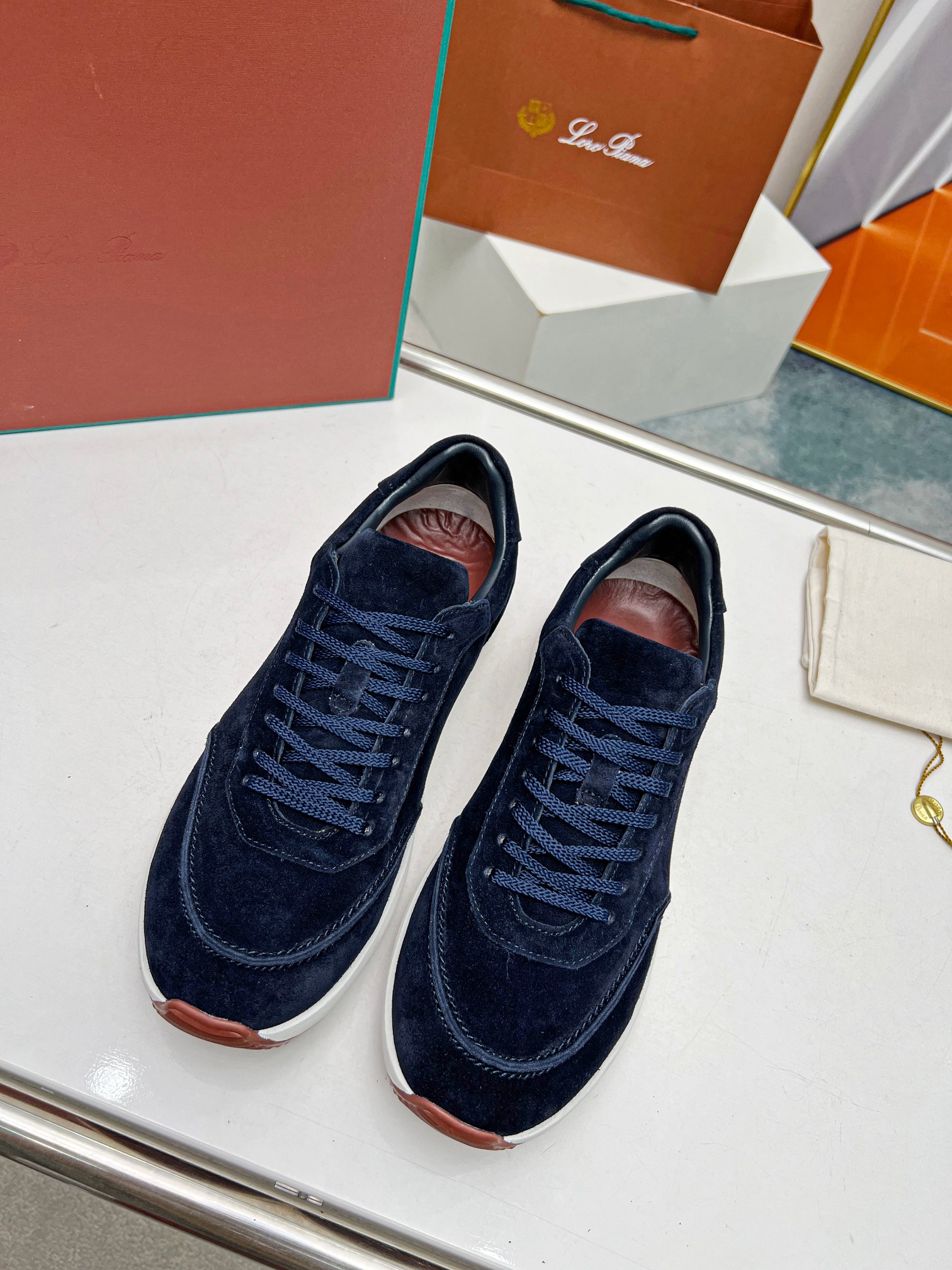 这款鞋子是AAAAA 1:1 质量 (非常棒). 使用了和原版一模一样的材料. 商标部分也保持了和洛罗皮亚纳/Loro Piana一样. 图片拍摄是实物鞋子拍摄, 您所收到的实物保证和我们图片一模一样.