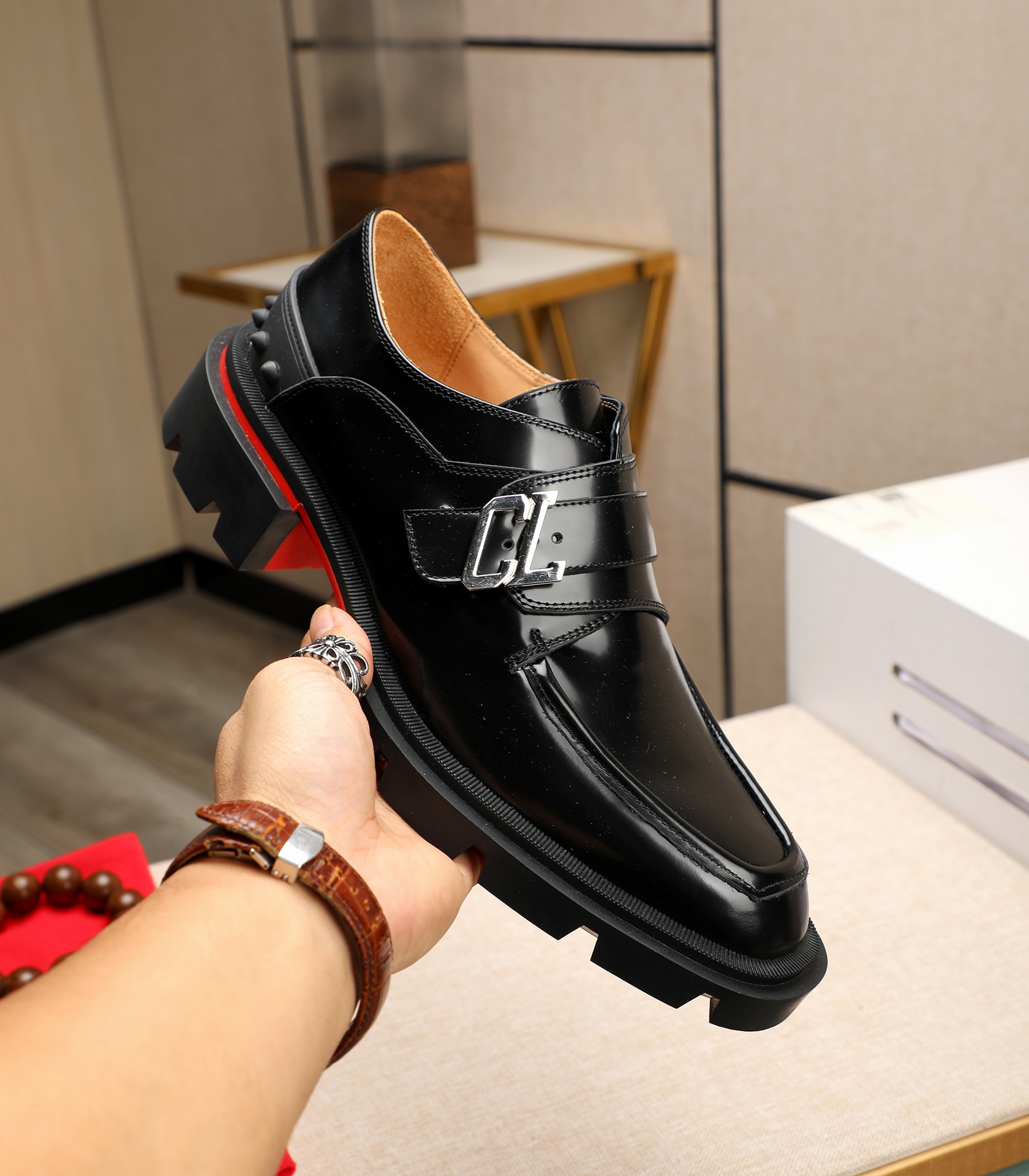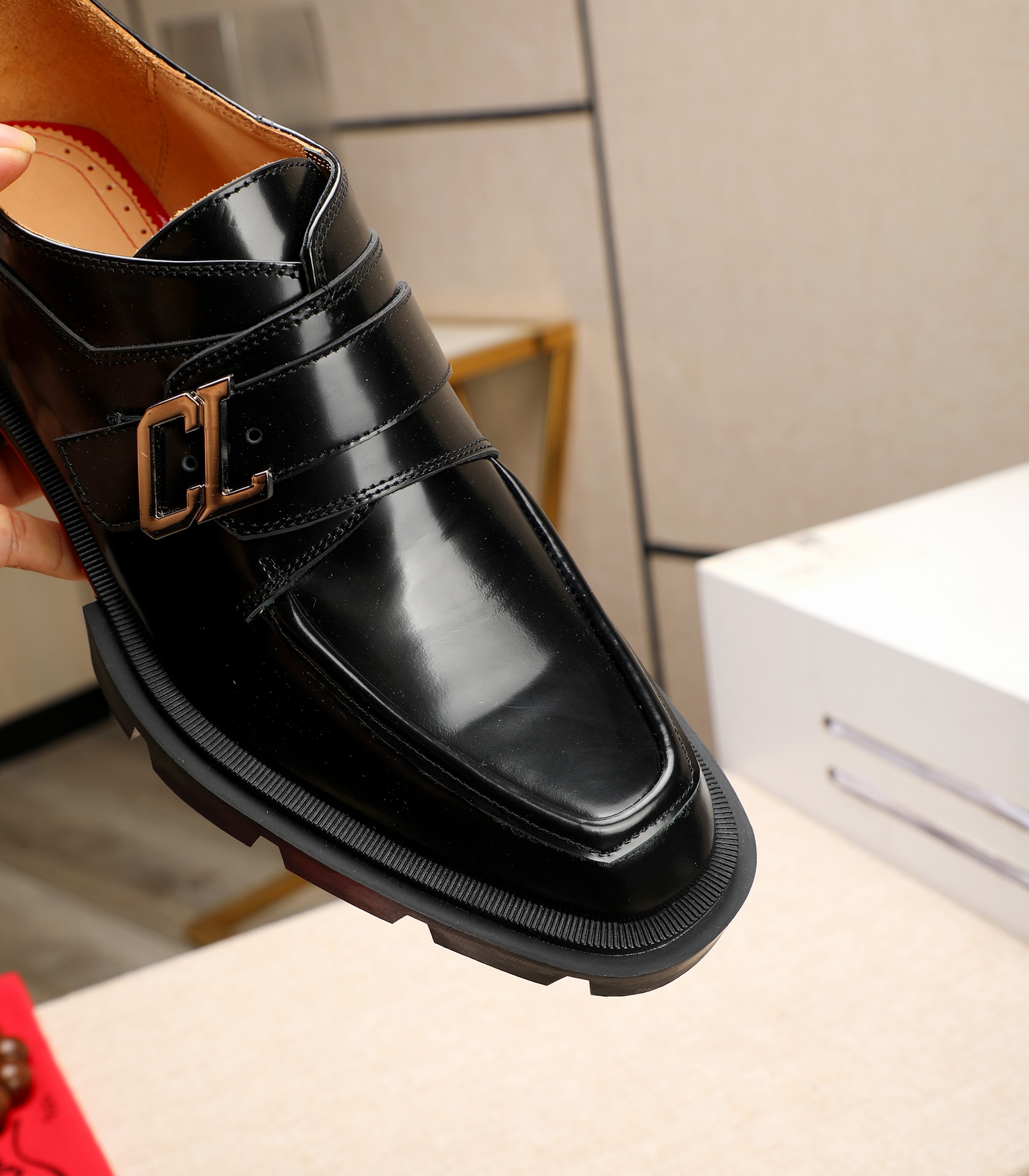 这款鞋子是AAAAA 1:1 质量 (非常棒). 使用了和原版一模一样的材料. 商标部分也保持了和克里斯提·鲁布托/Christian Louboutin一样. 图片拍摄是实物鞋子拍摄, 您所收到的实物保证和我们图片一模一样.