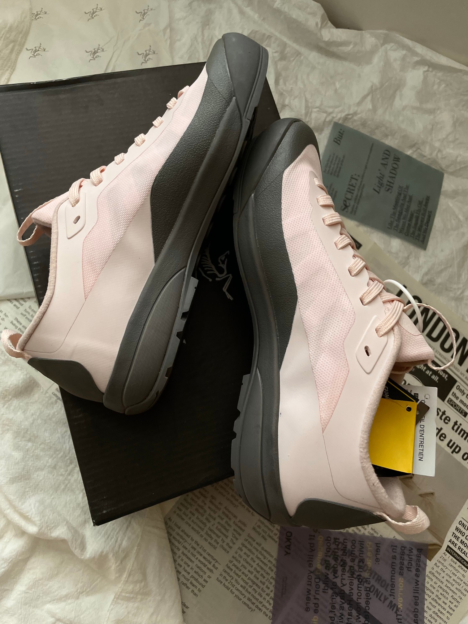 这款鞋子是AAAAA 1:1 质量 (非常棒). 使用了和原版一模一样的材料. 商标部分也保持了和ARC'TERYX一样. 图片拍摄是实物鞋子拍摄, 您所收到的实物保证和我们图片一模一样.