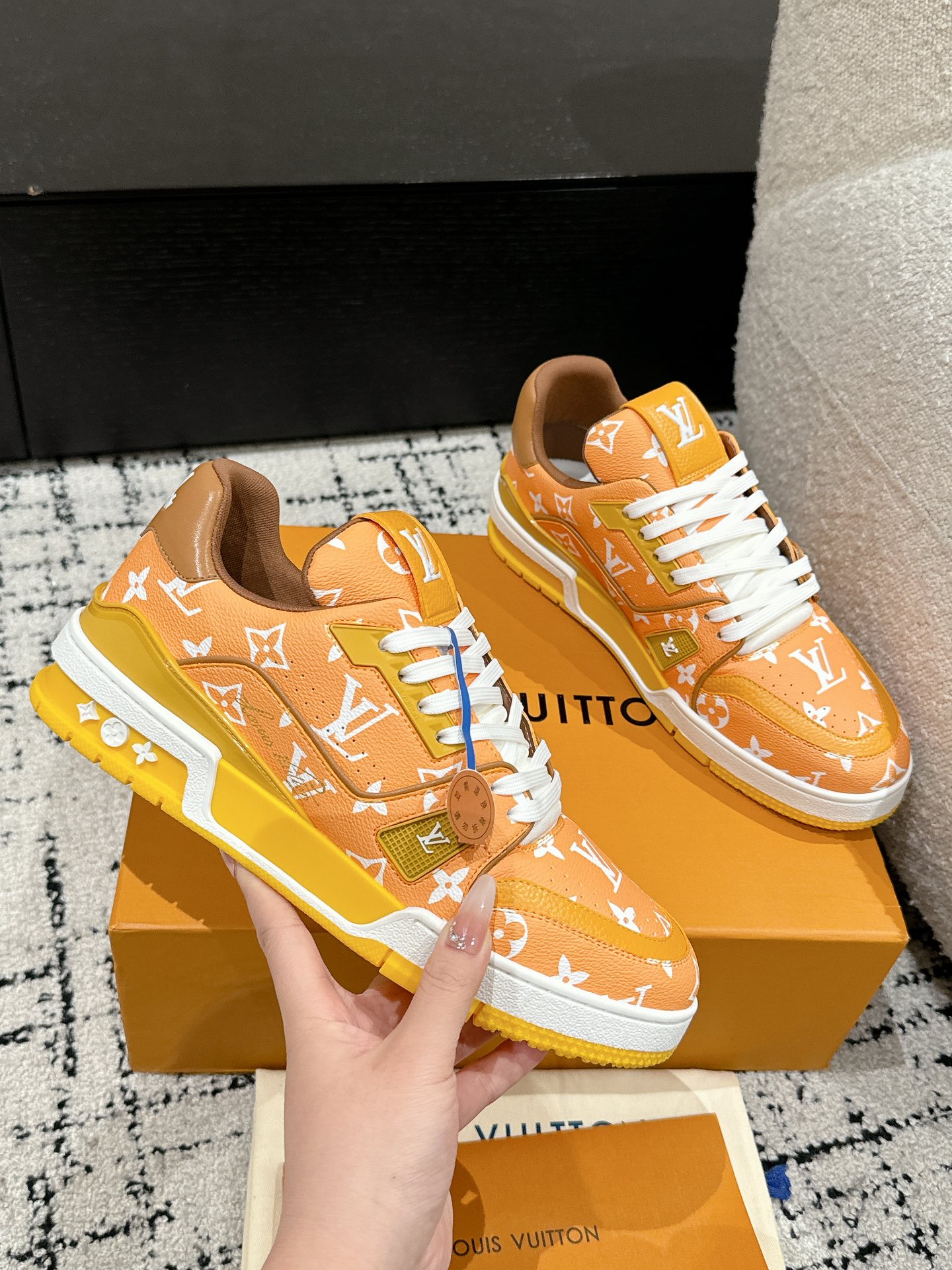 这款鞋子是AAAAA 1:1 质量 (非常棒). 使用了和原版一模一样的材料. 商标部分也保持了和路易威登/Louis Vuitton一样. 图片拍摄是实物鞋子拍摄, 您所收到的实物保证和我们图片一模一样.