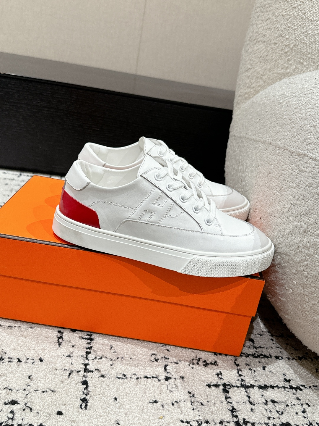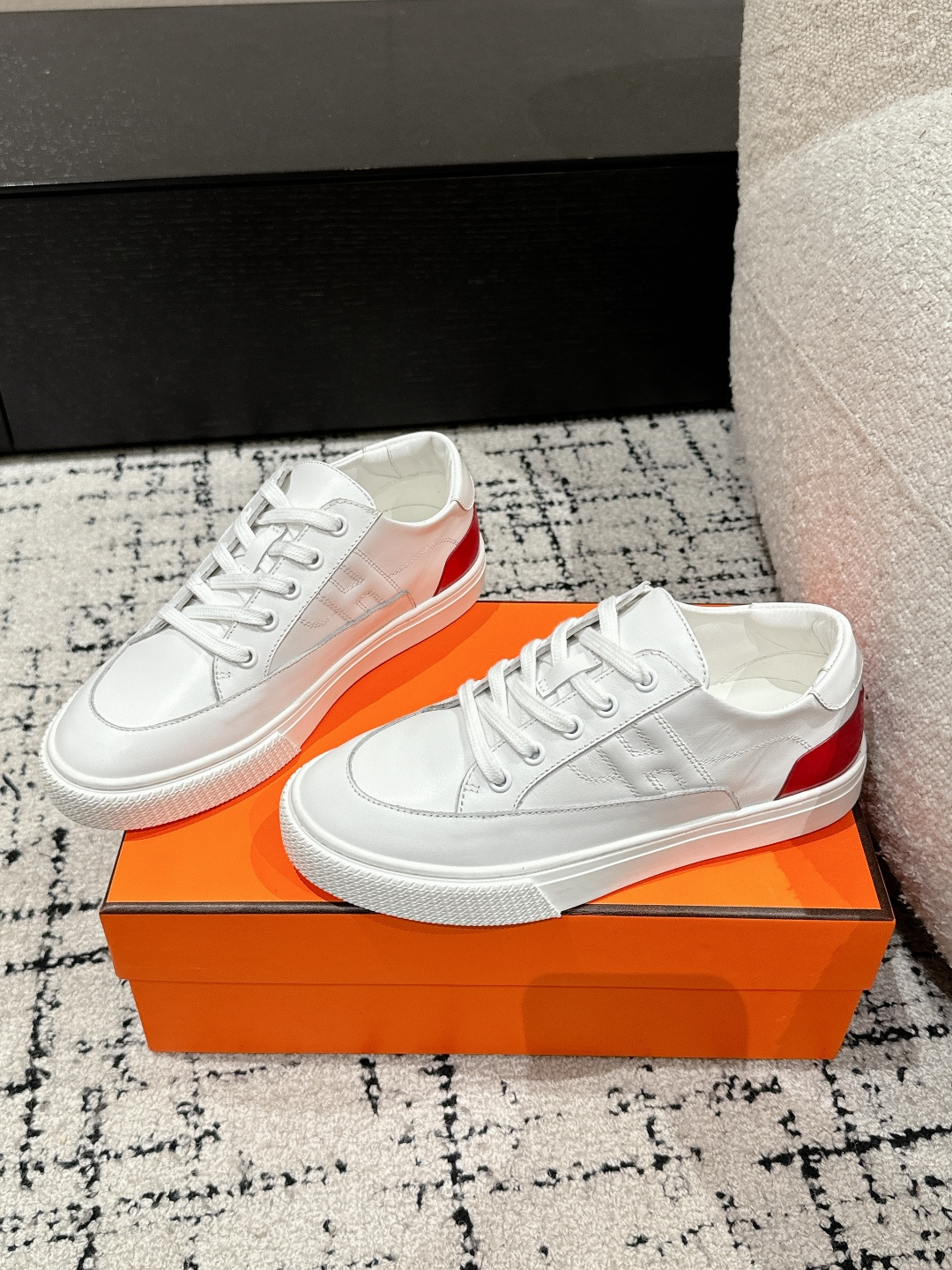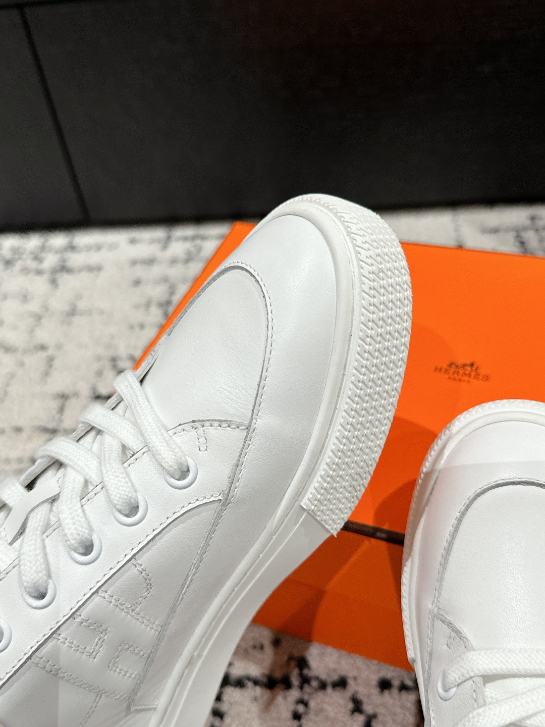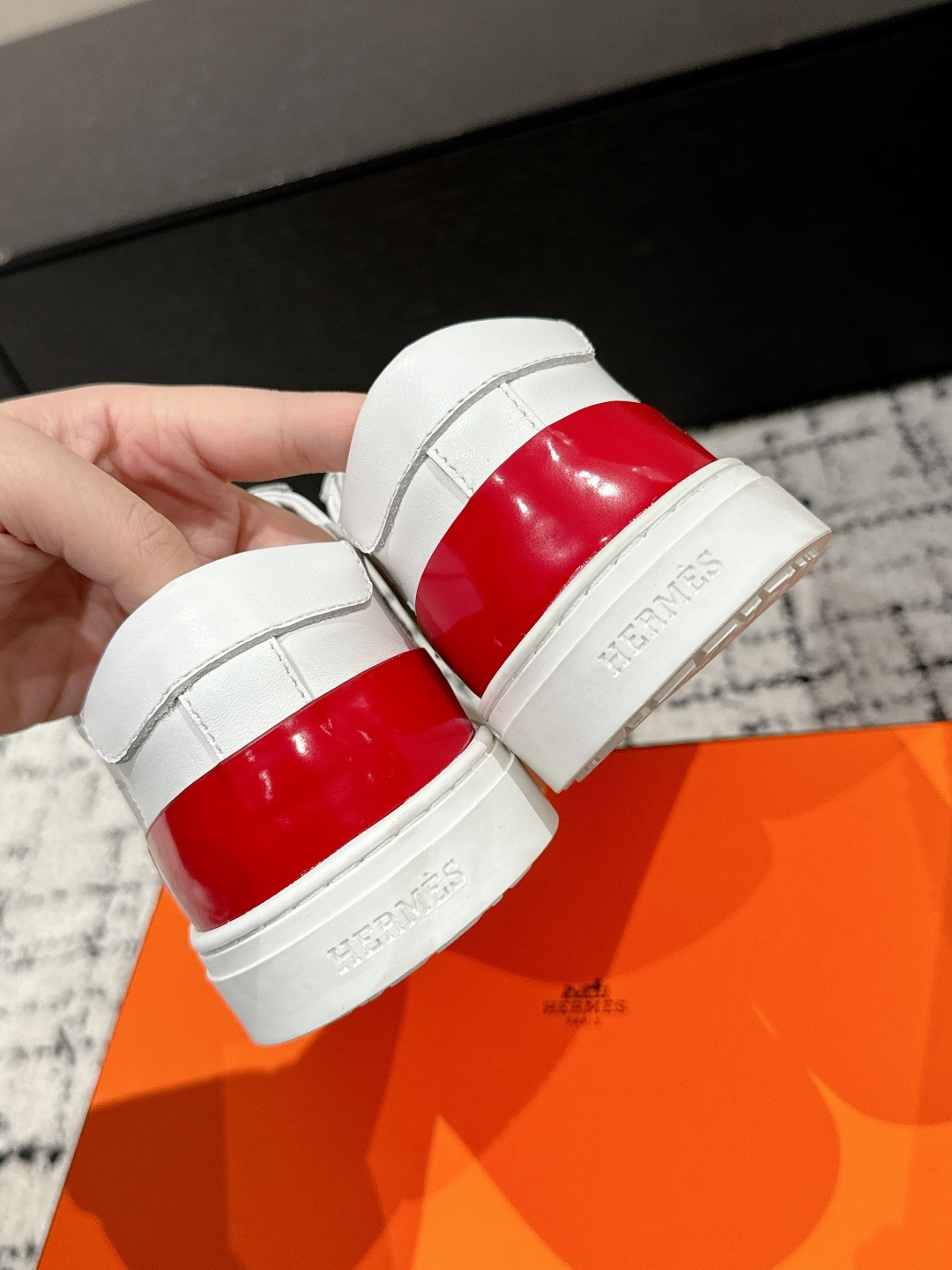 这款鞋子是AAAAA 1:1 质量 (非常棒). 使用了和原版一模一样的材料. 商标部分也保持了和爱马仕/Hermes一样. 图片拍摄是实物鞋子拍摄, 您所收到的实物保证和我们图片一模一样.