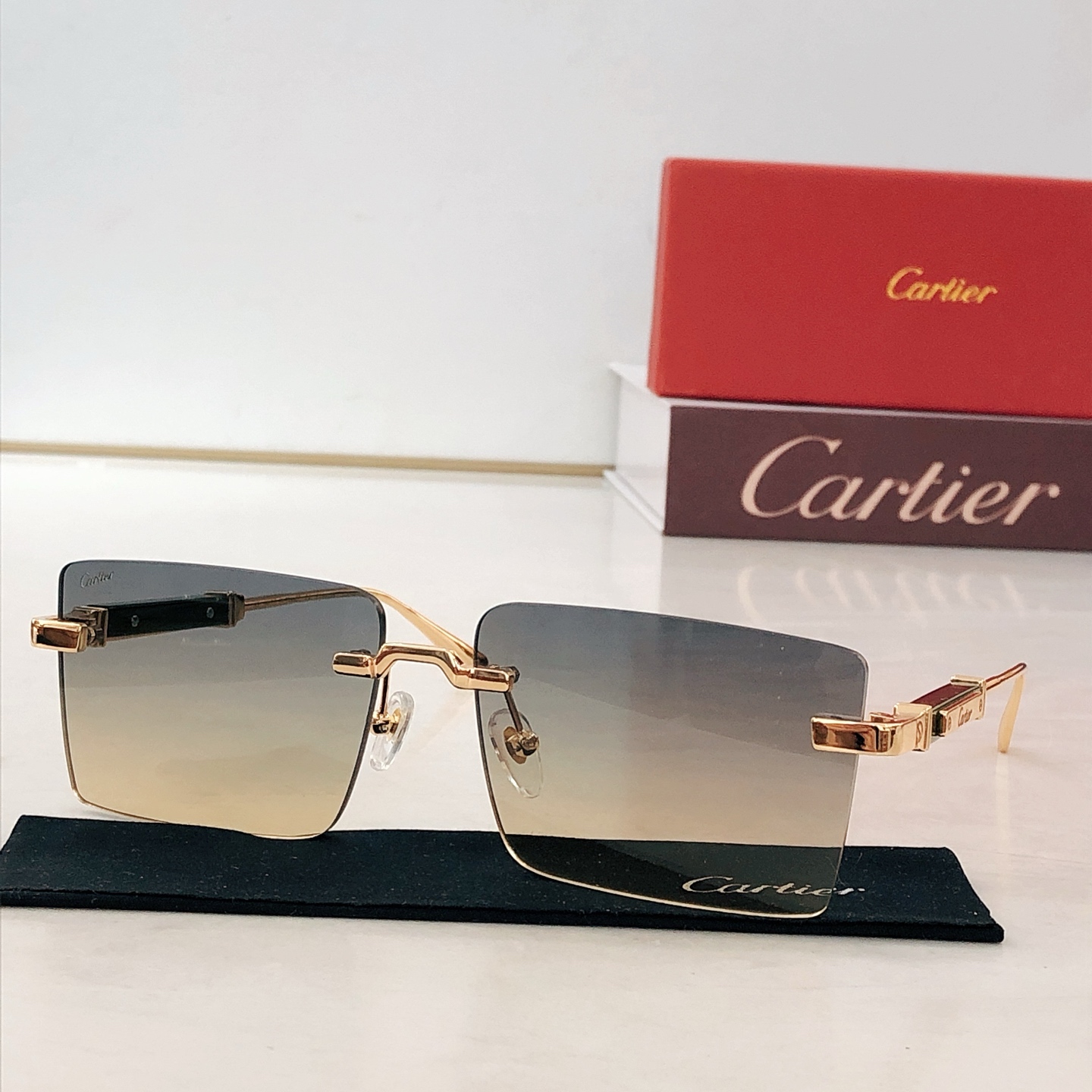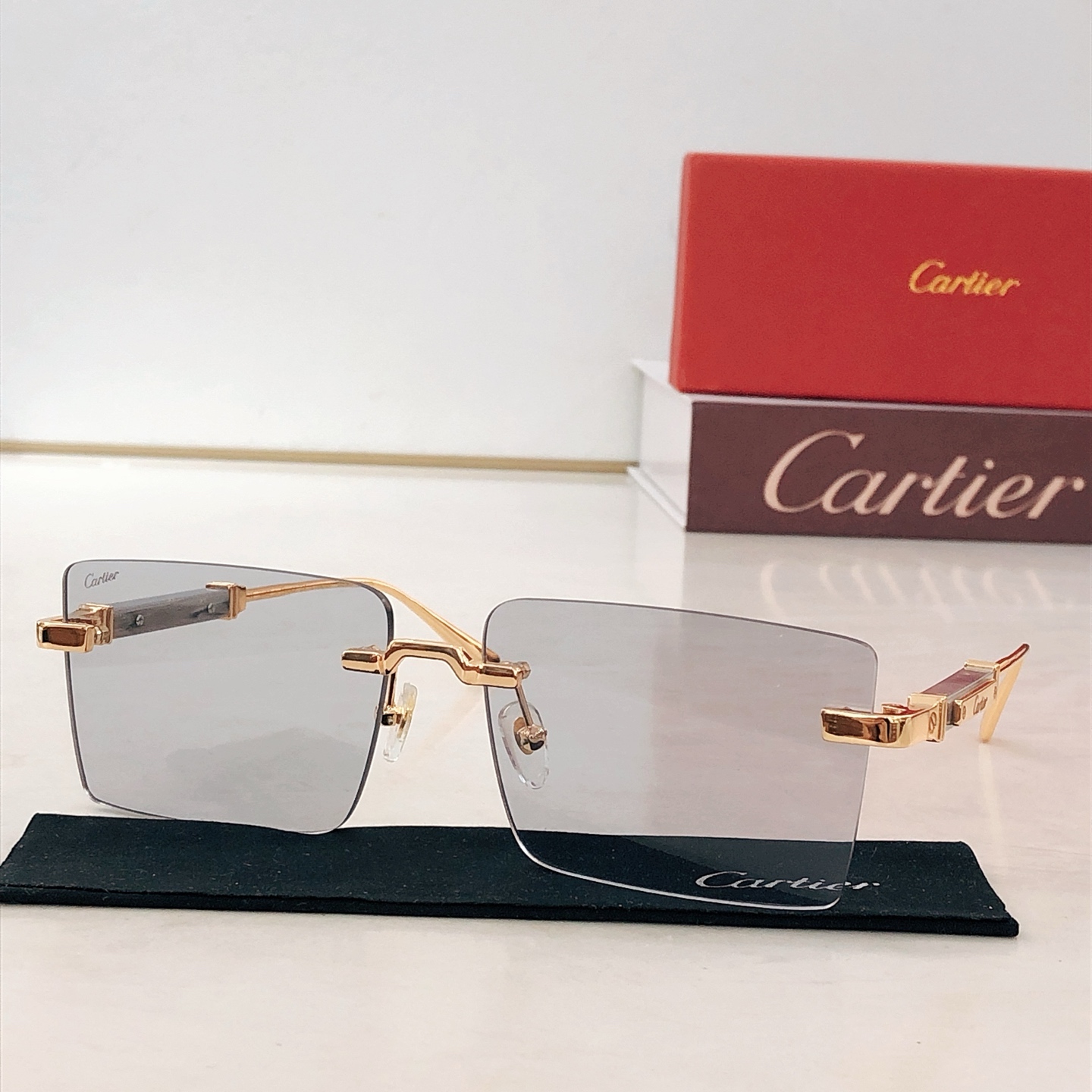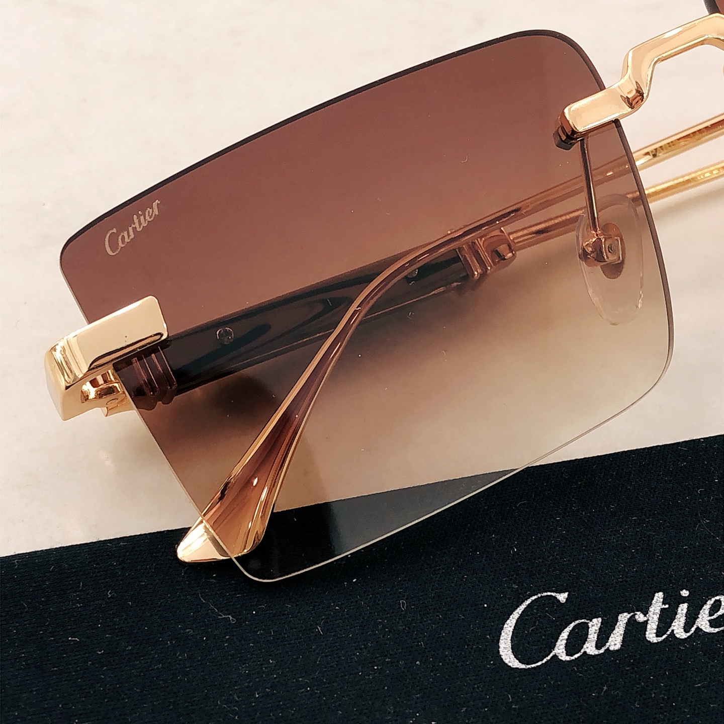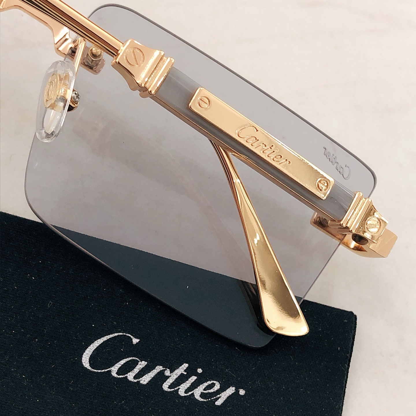 这款太阳眼镜是AAAAA 1:1 质量 (非常棒). 使用了和原版一模一样的材料. 商标部分也保持了和卡地亚/Cartier一样. 图片拍摄是实物太阳眼镜拍摄, 您所收到的实物保证和我们图片一模一样.