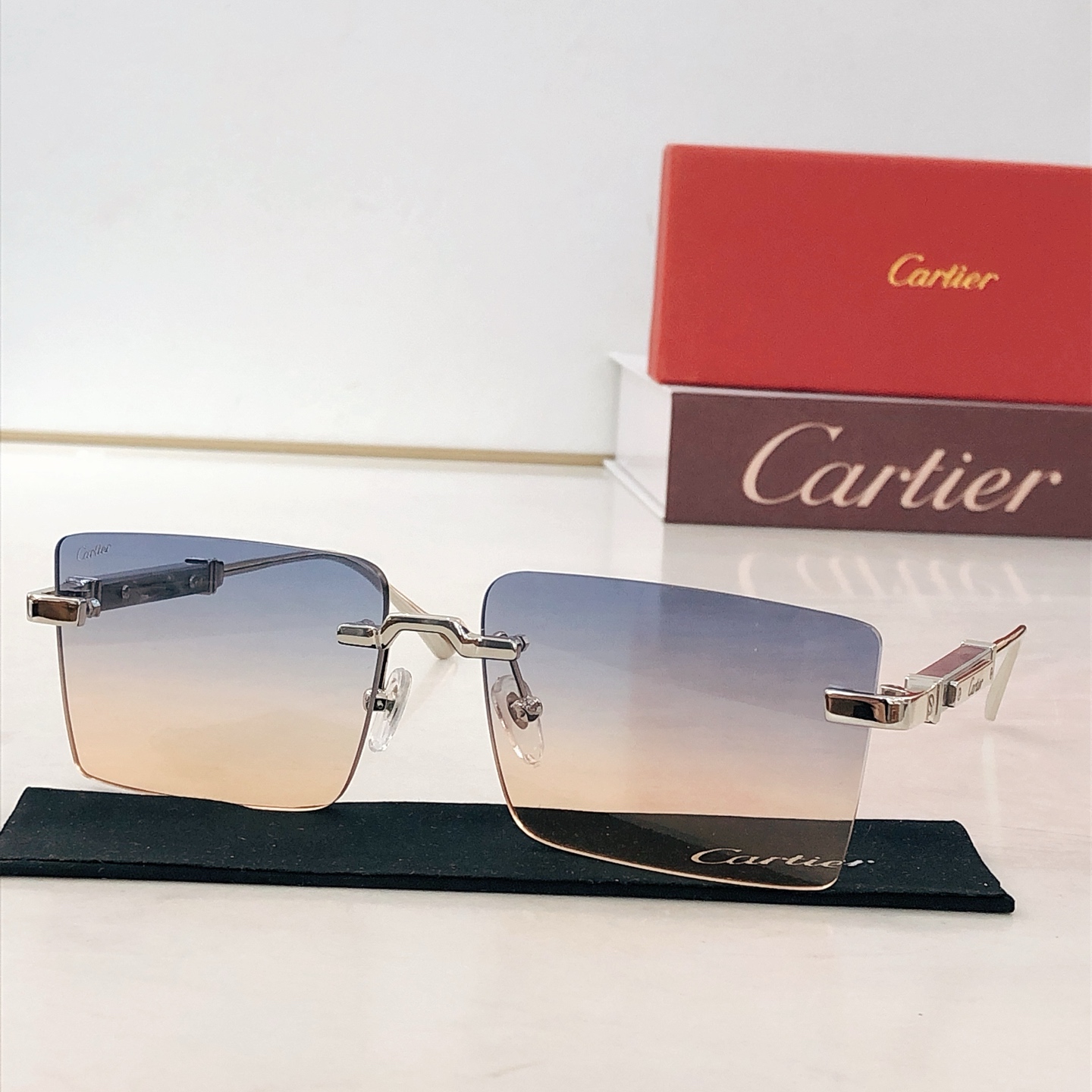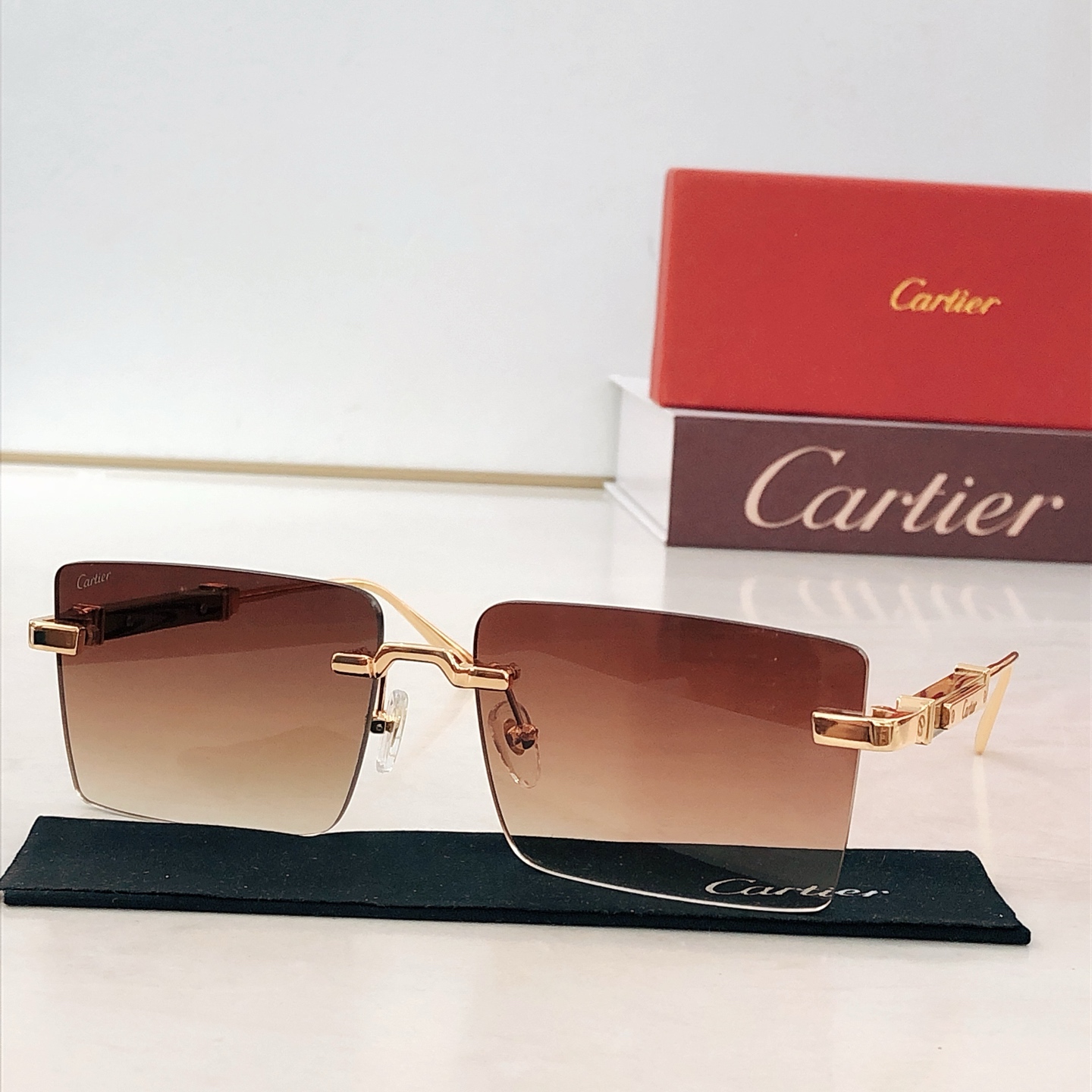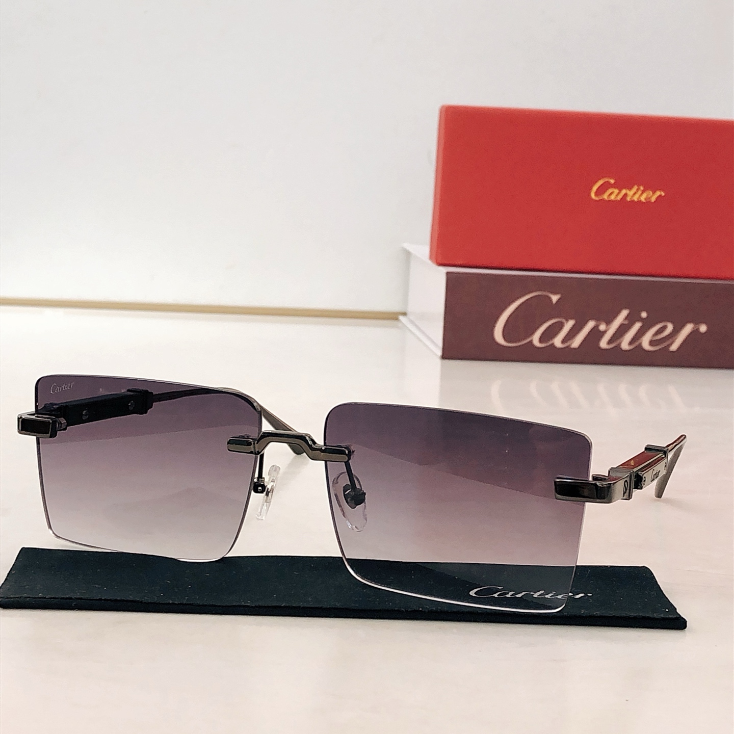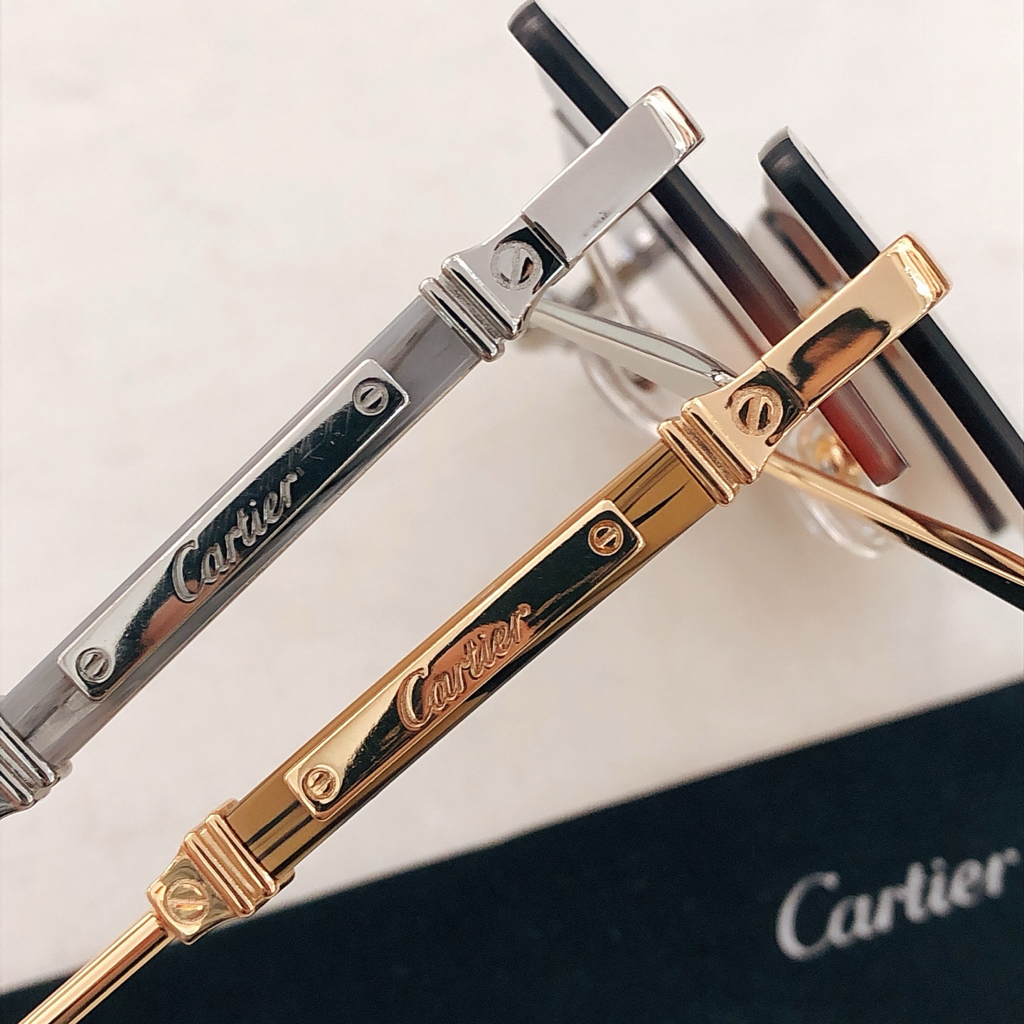 这款太阳眼镜是AAAAA 1:1 质量 (非常棒). 使用了和原版一模一样的材料. 商标部分也保持了和卡地亚/Cartier一样. 图片拍摄是实物太阳眼镜拍摄, 您所收到的实物保证和我们图片一模一样.
