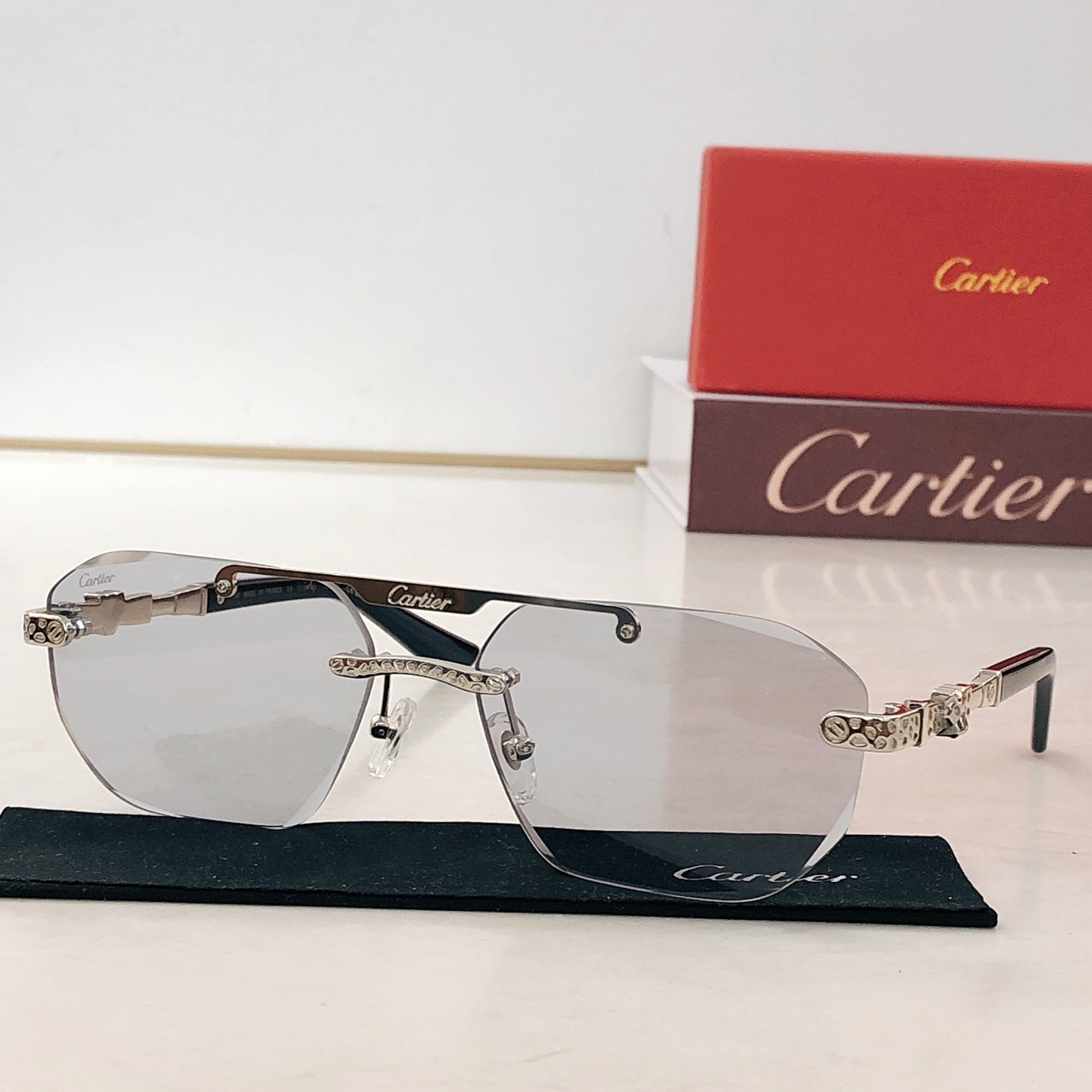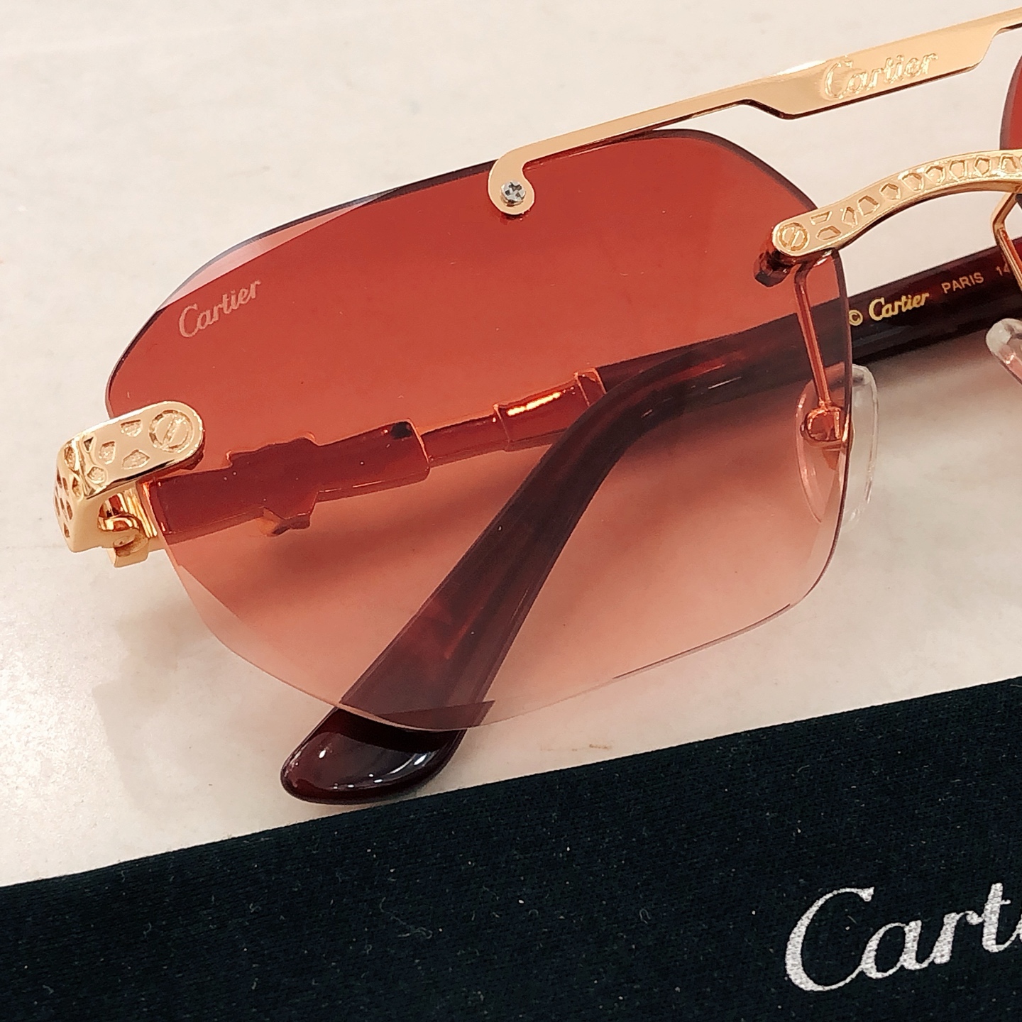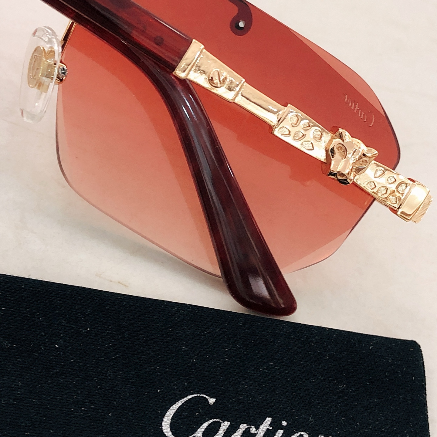 这款太阳眼镜是AAAAA 1:1 质量 (非常棒). 使用了和原版一模一样的材料. 商标部分也保持了和卡地亚/Cartier一样. 图片拍摄是实物太阳眼镜拍摄, 您所收到的实物保证和我们图片一模一样.