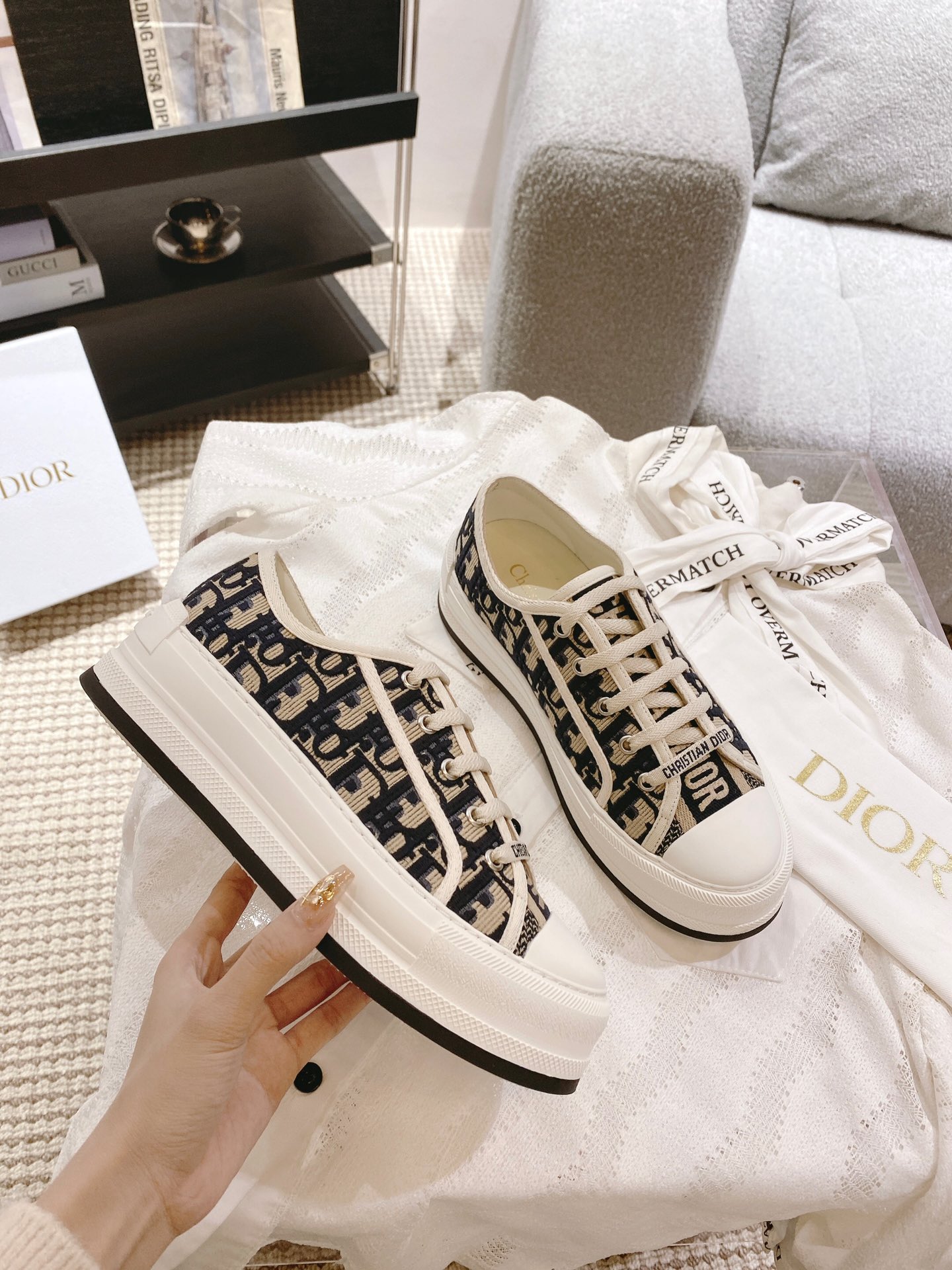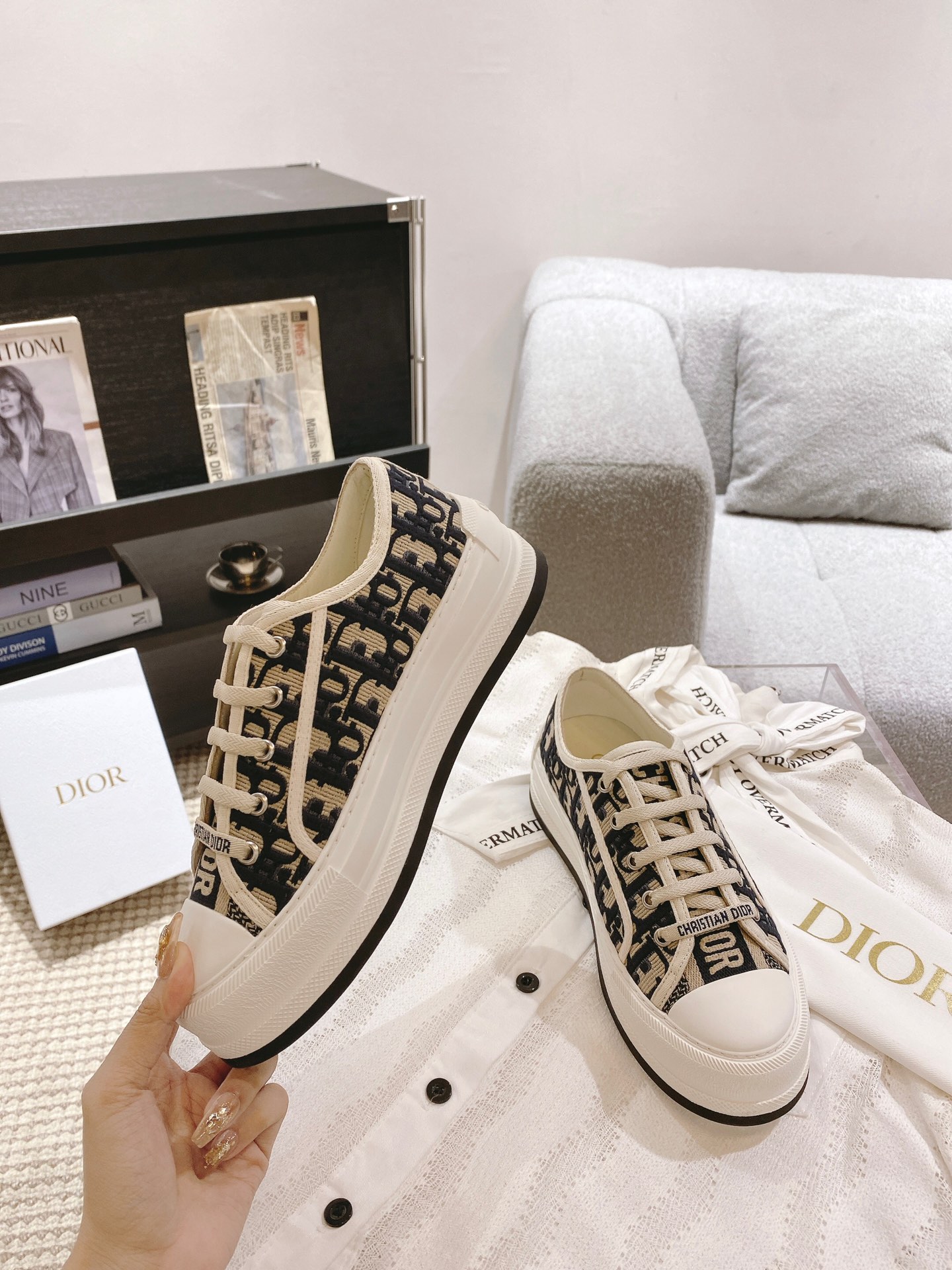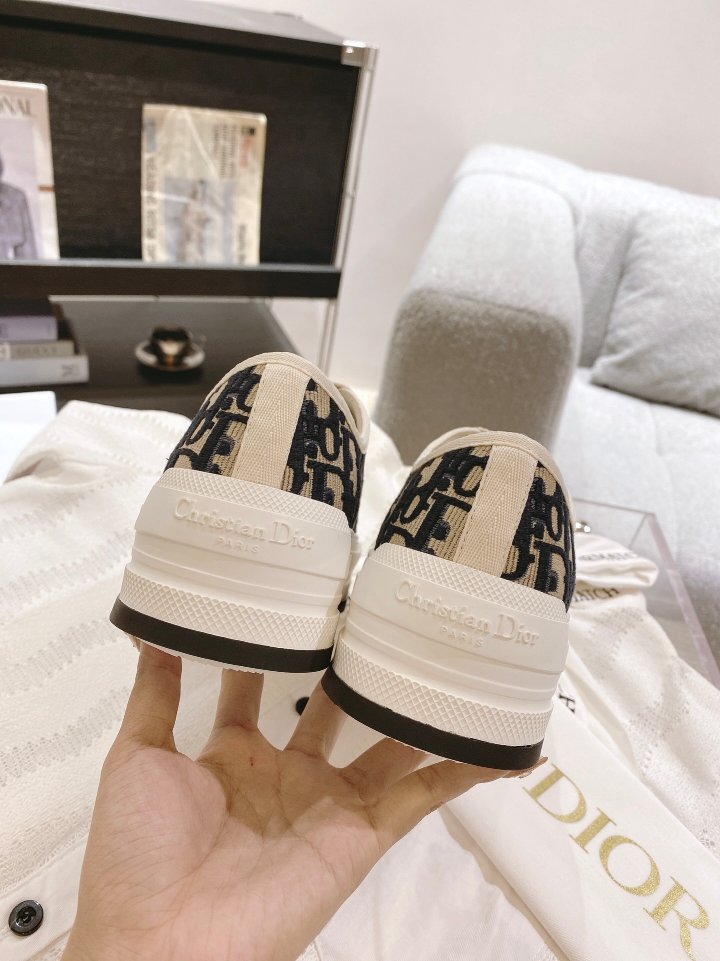 这款鞋子是AAAAA 1:1 质量 (非常棒). 使用了和原版一模一样的材料. 商标部分也保持了和迪奥/Dior一样. 图片拍摄是实物鞋子拍摄, 您所收到的实物保证和我们图片一模一样.