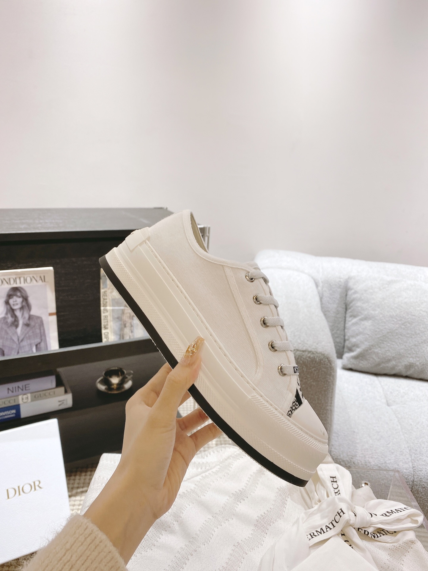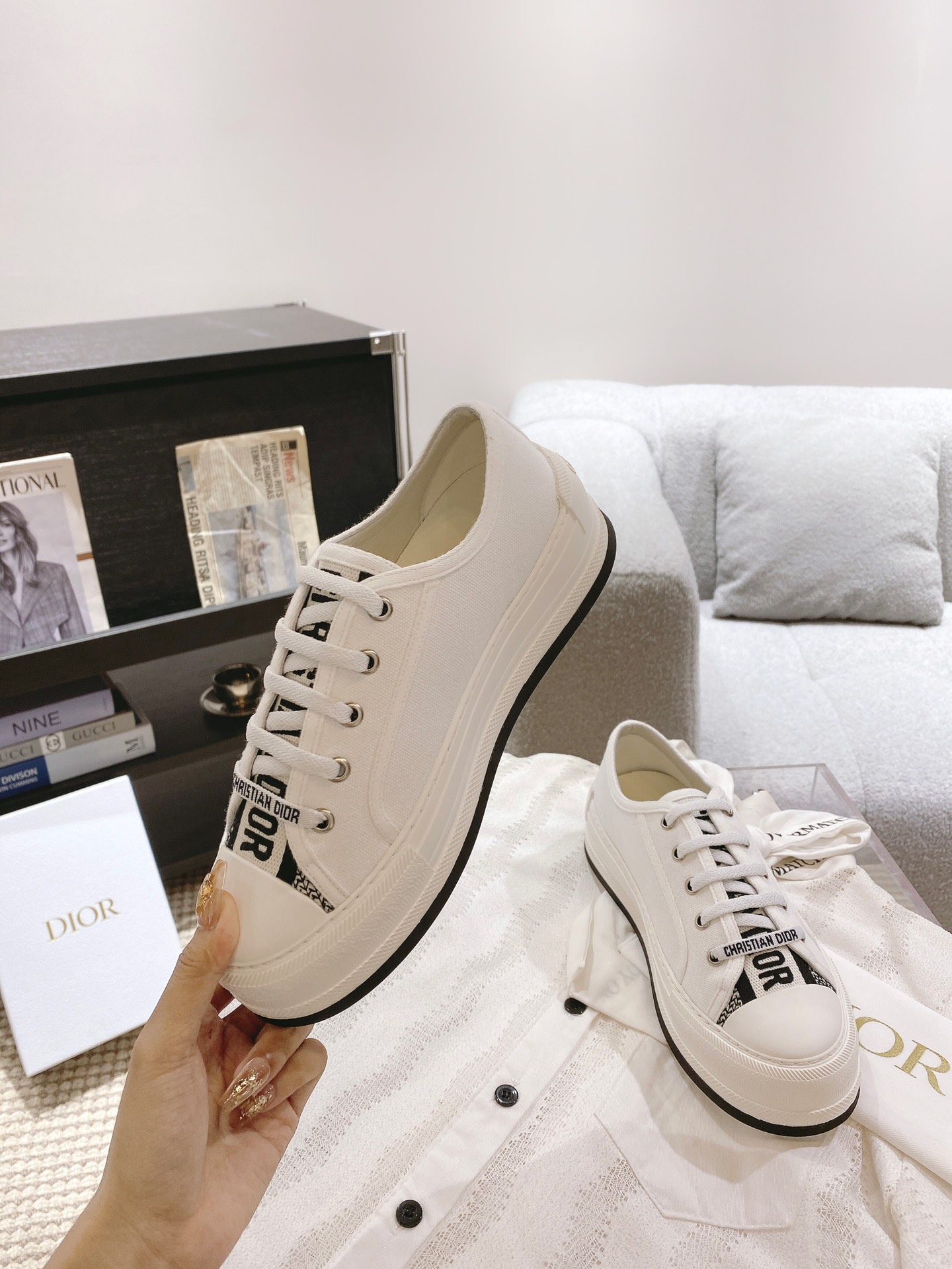 这款鞋子是AAAAA 1:1 质量 (非常棒). 使用了和原版一模一样的材料. 商标部分也保持了和迪奥/Dior一样. 图片拍摄是实物鞋子拍摄, 您所收到的实物保证和我们图片一模一样.