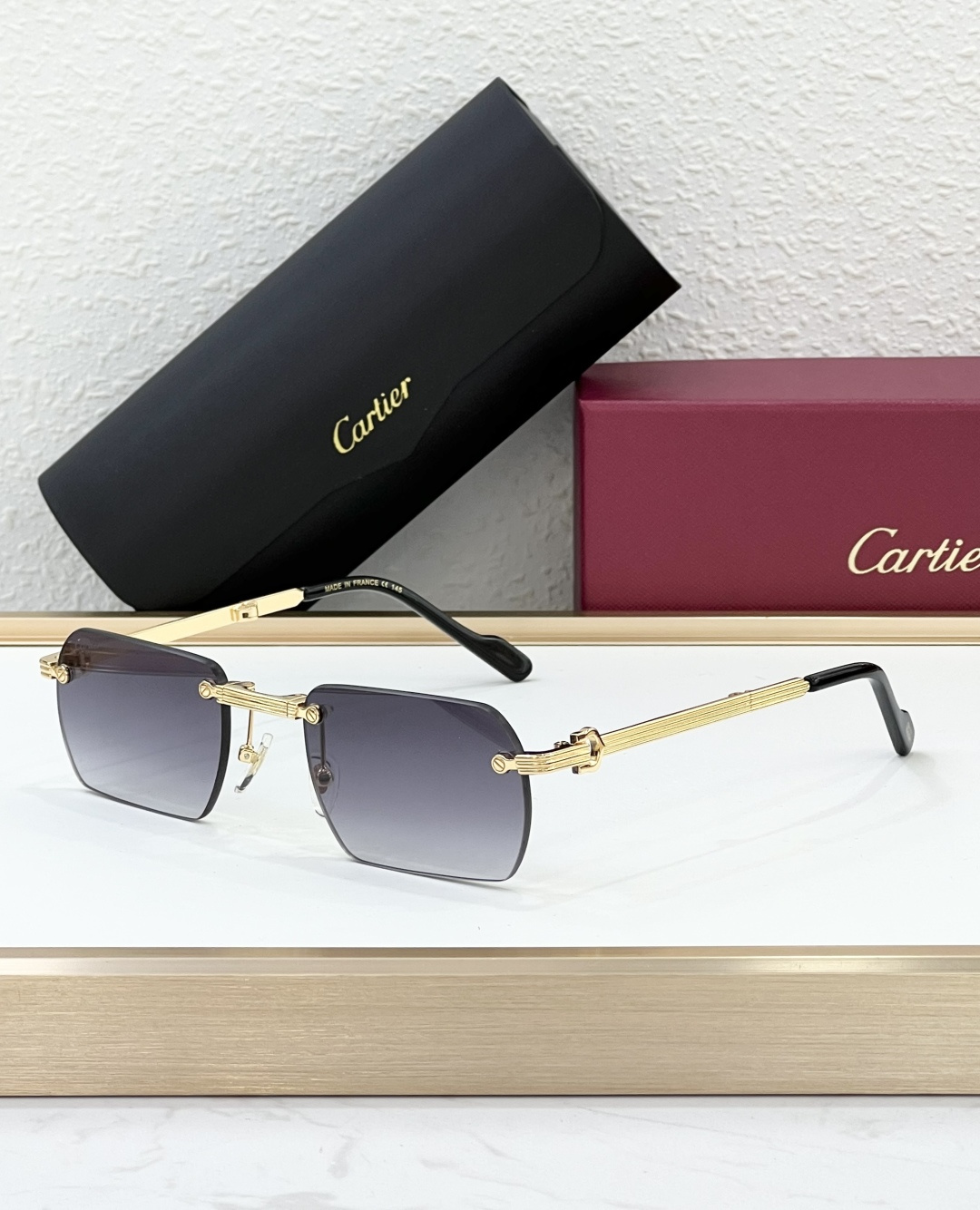 这款太阳眼镜是AAAAA 1:1 质量 (非常棒). 使用了和原版一模一样的材料. 商标部分也保持了和卡地亚/Cartier一样. 图片拍摄是实物太阳眼镜拍摄, 您所收到的实物保证和我们图片一模一样.